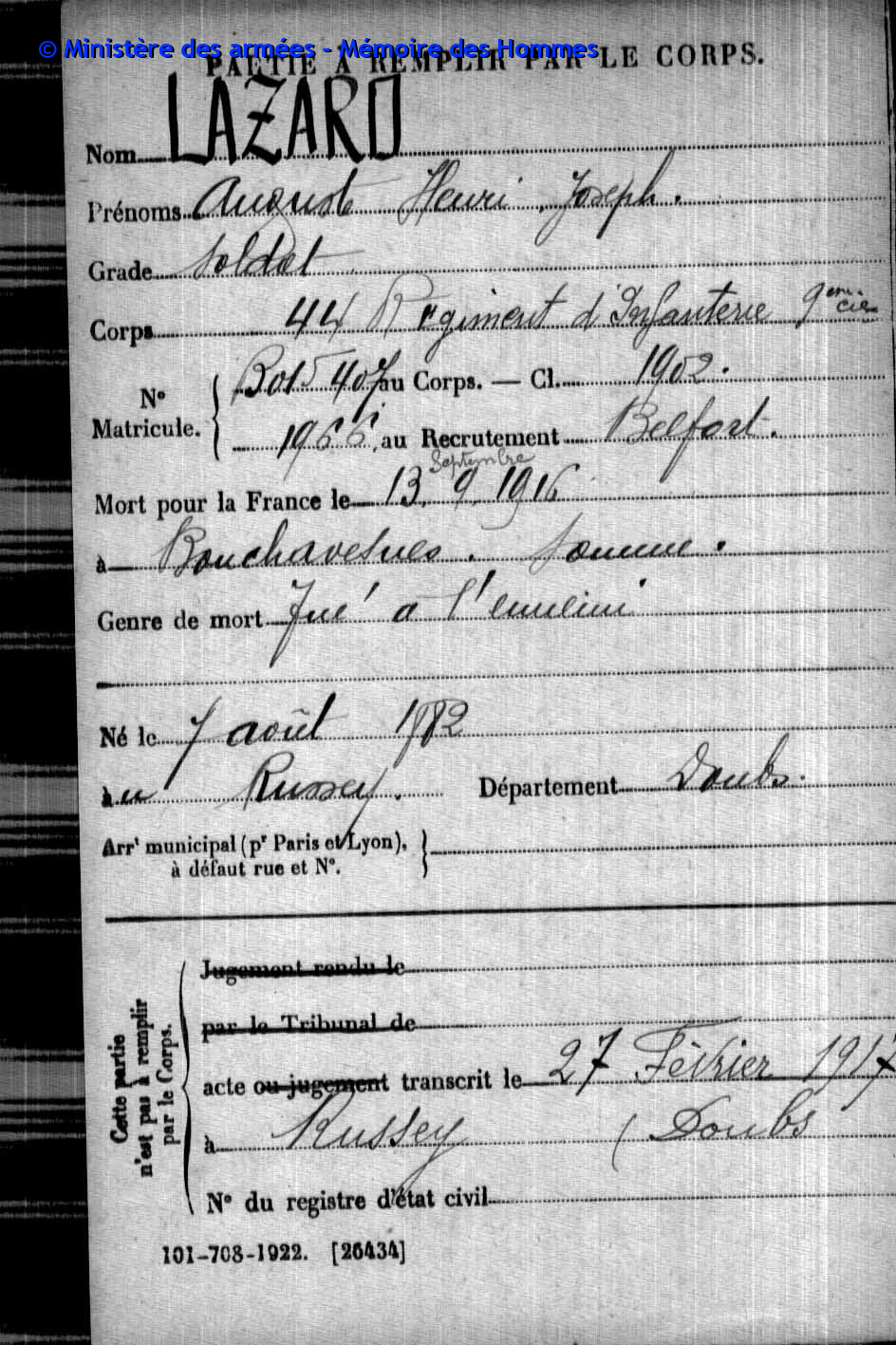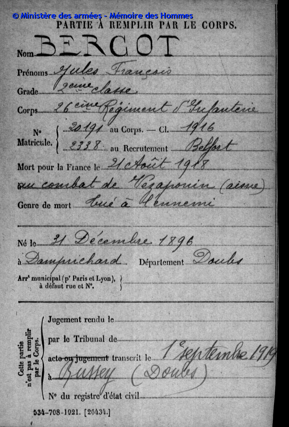 Fabian Coulot [Sein Name steht auch auf dem Kriegerdenkmal in La Bosse] |