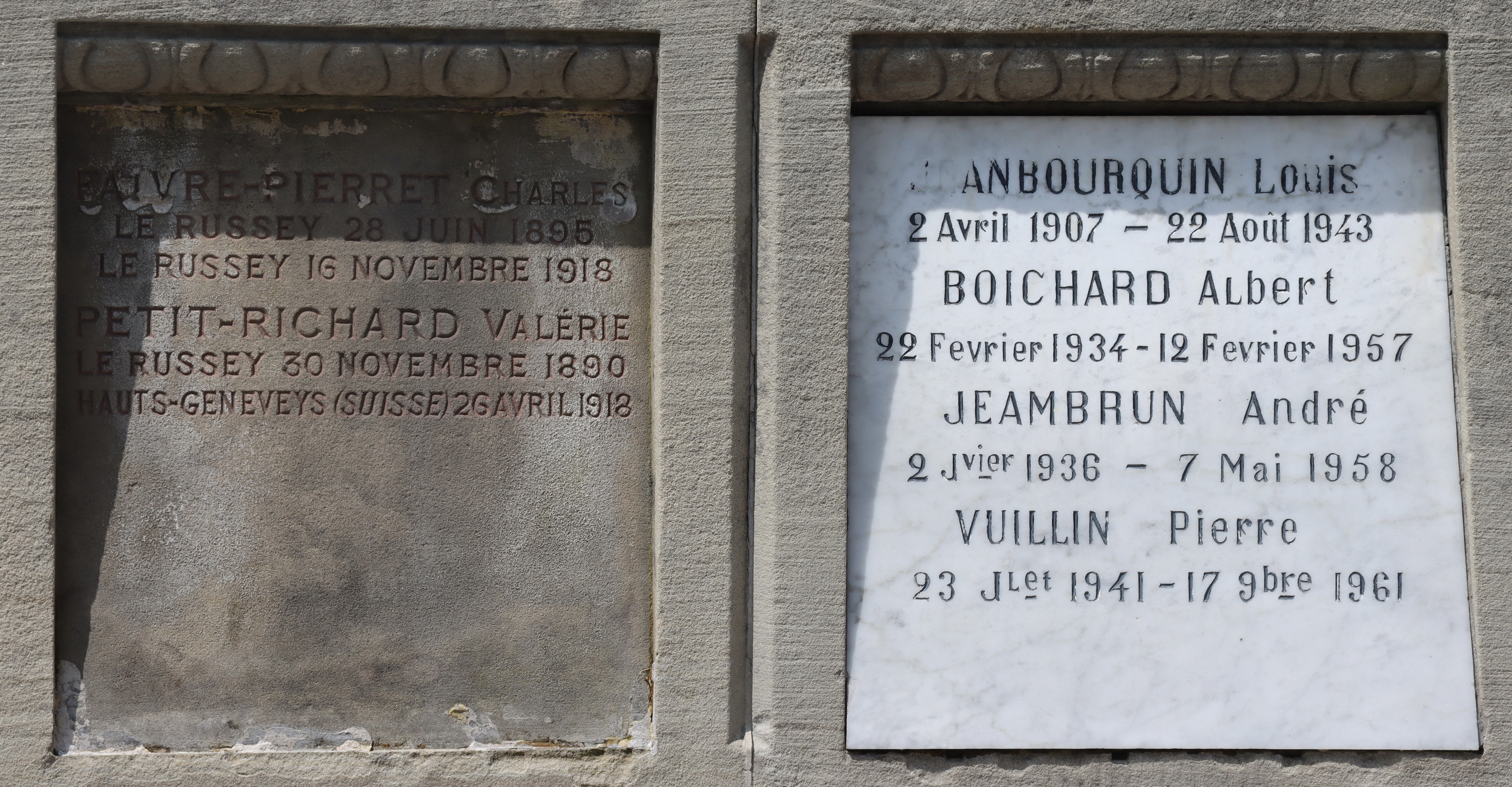| Soldat BOICHARD Albert Marie Seraphin 22.02.1934 - 12.02.1957 Verstarb im Spital in Paris nach schwerer Verwundung eines LKW Unfalls im Algerien Feldzug. |