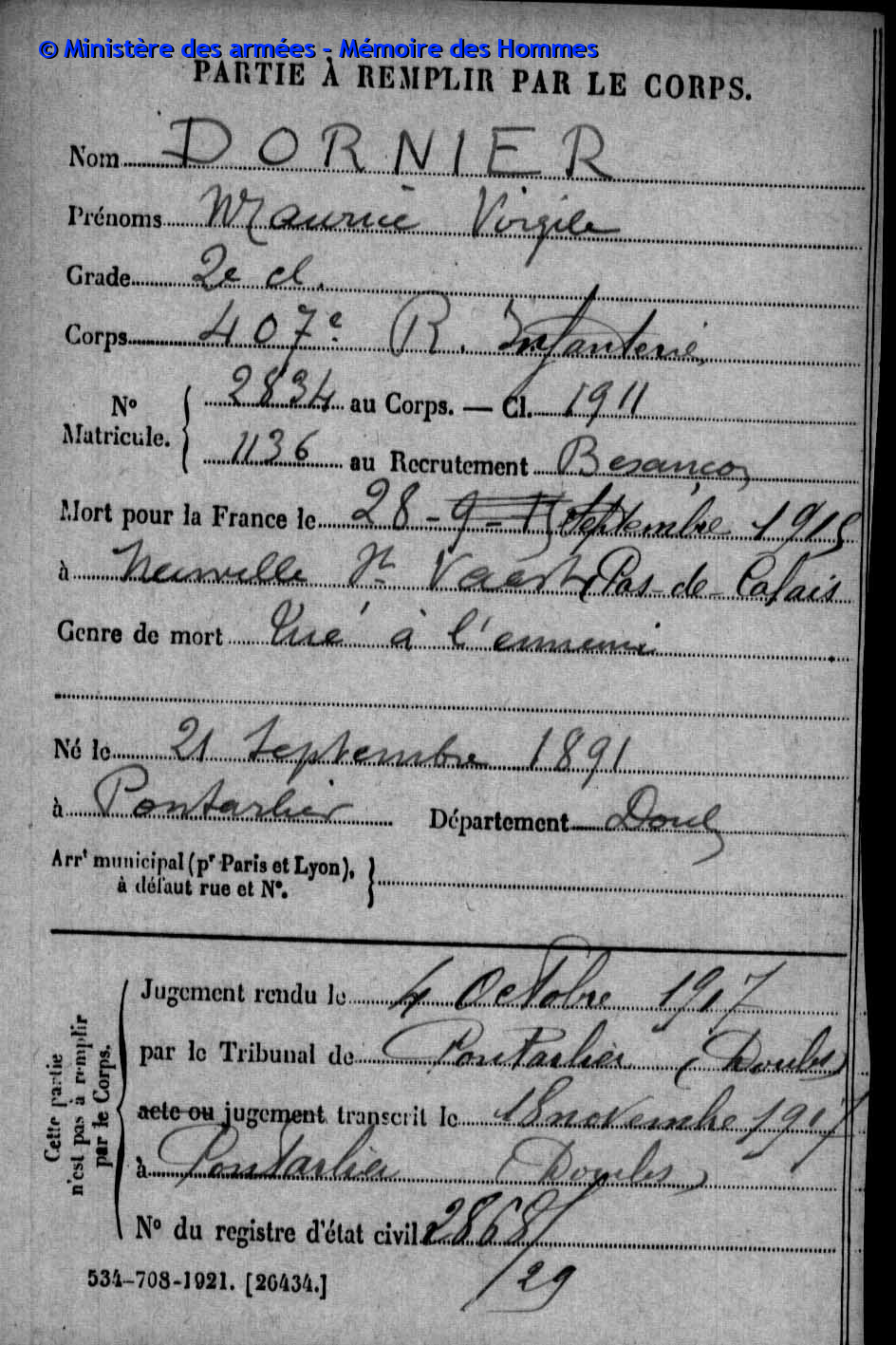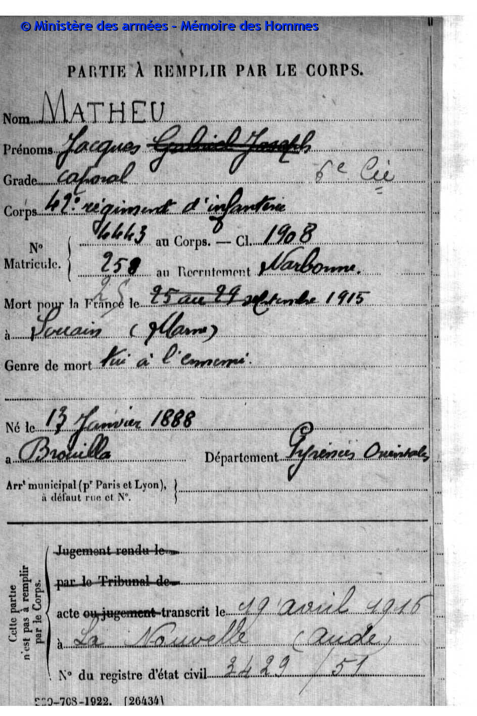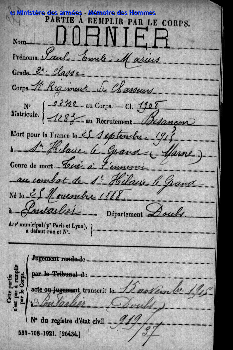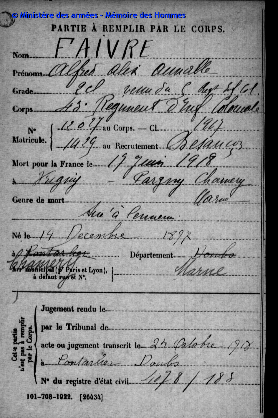 Von den 14 Namen auf dem Kriegerdenkmal des Dorfes sind 10 gefallene Soldaten mit Fabian Coulot verwandt.