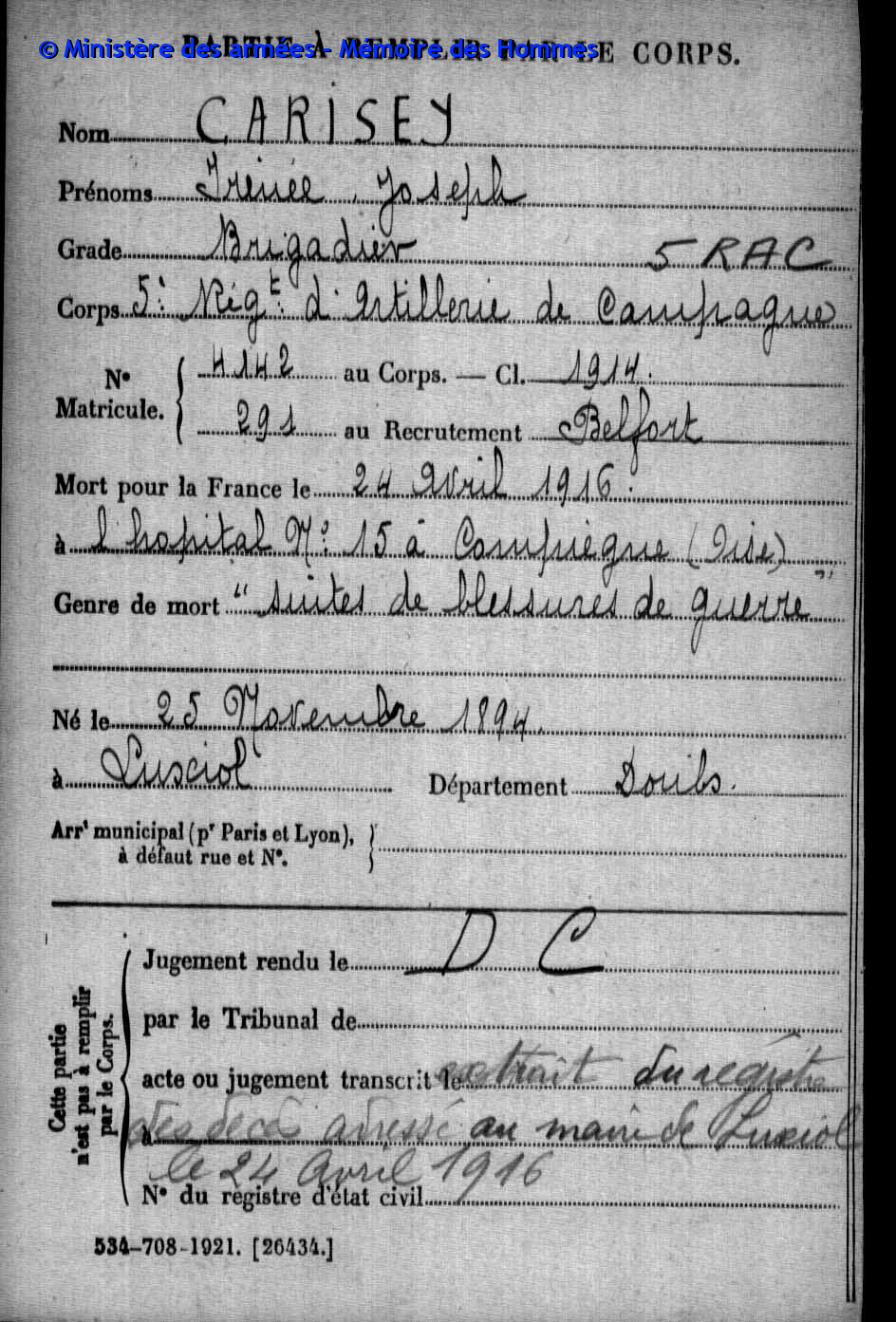CARISEY Irenée Joseph
