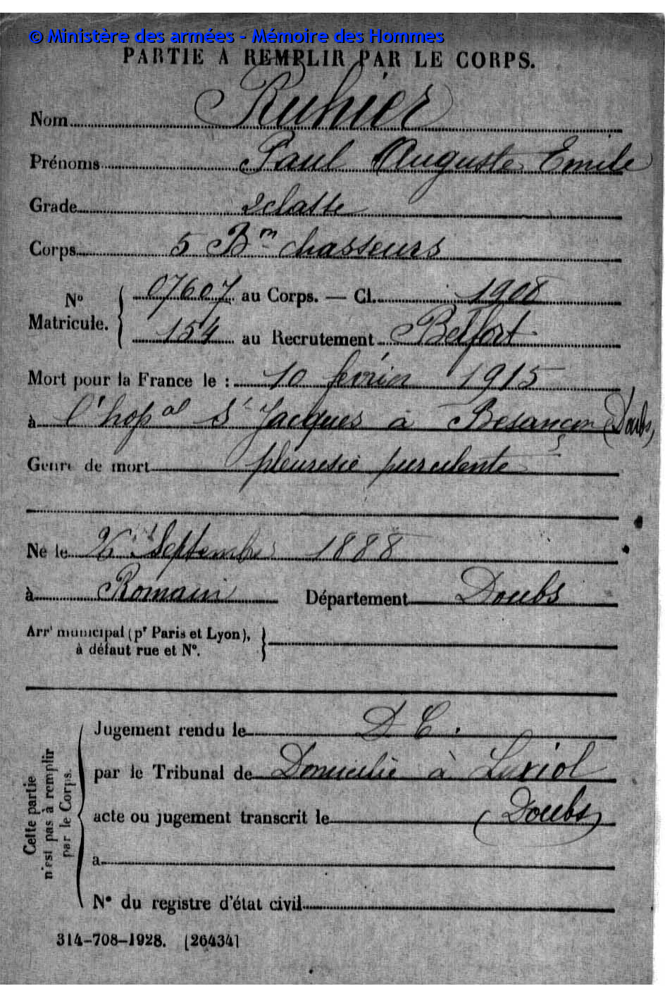 RUHIER Paul Auguste Emile