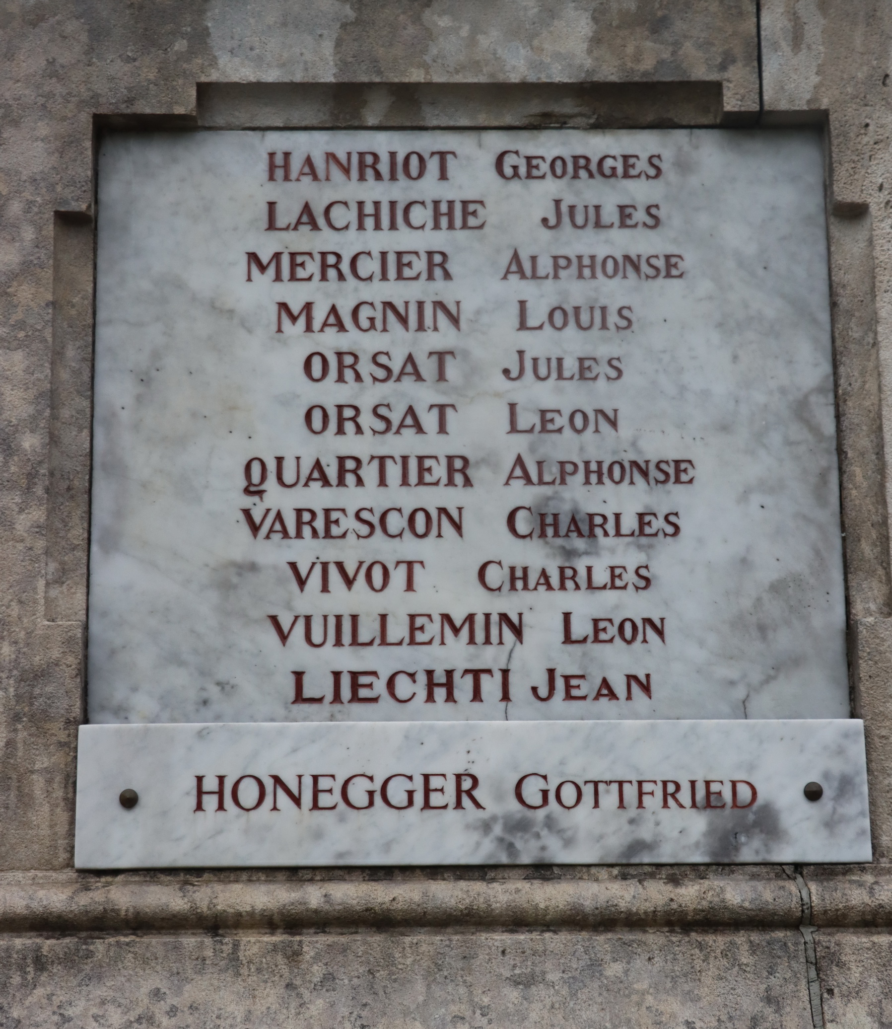 Von den 34 Namen auf dem Kriegsdenkmal bei der Kirche in Nods sind 21 davon mit Fabian Coulot verwandt