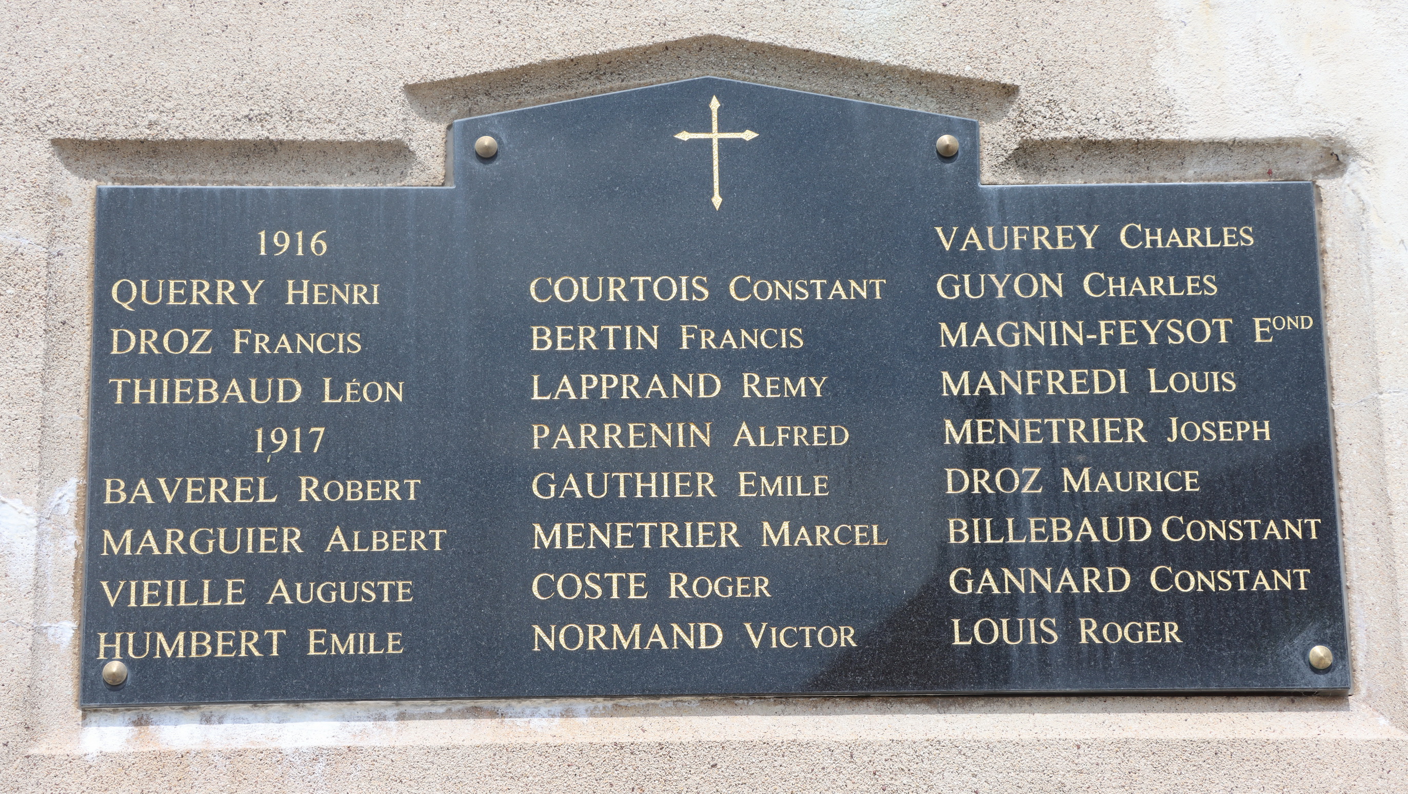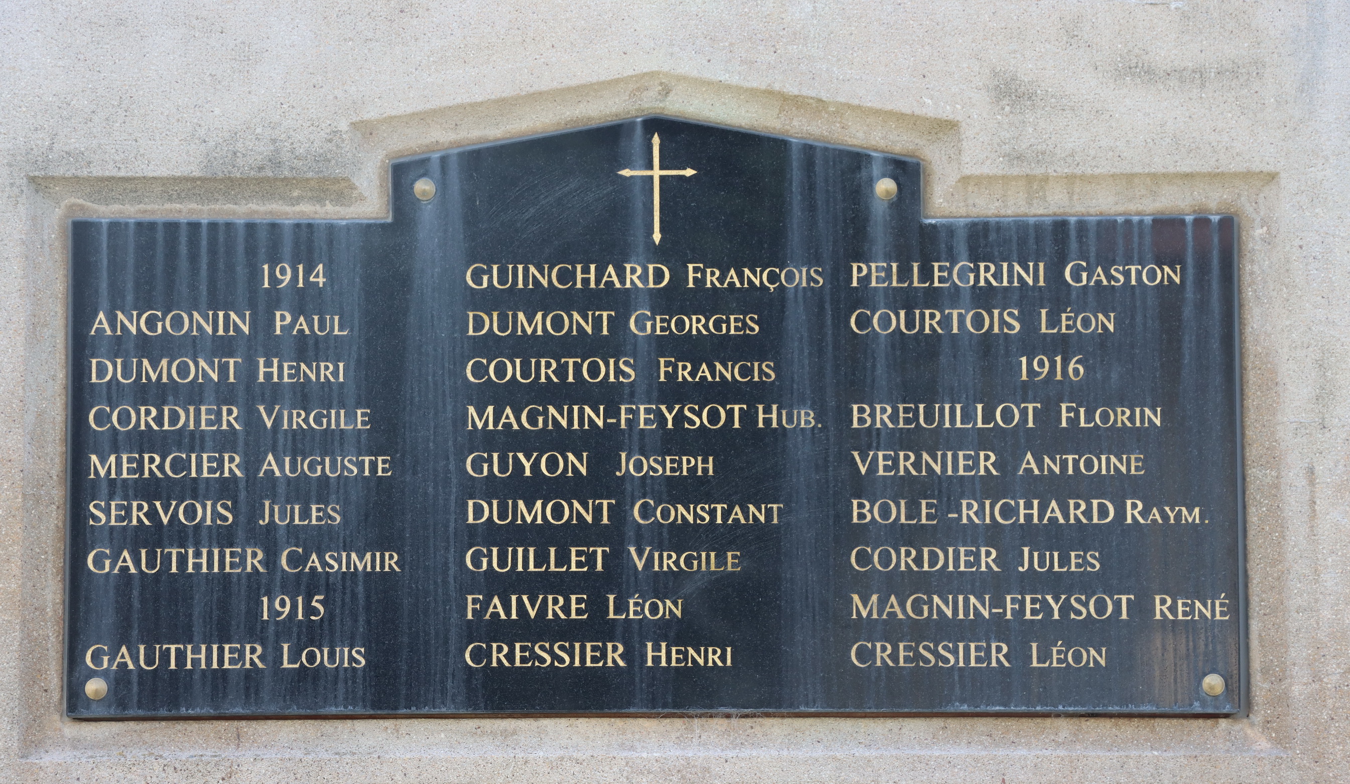 Von den 54 Namen der Soldaten welche in den Kriegen gefallen sind, sind 33 davon mit Fabian Coulot verwandt.