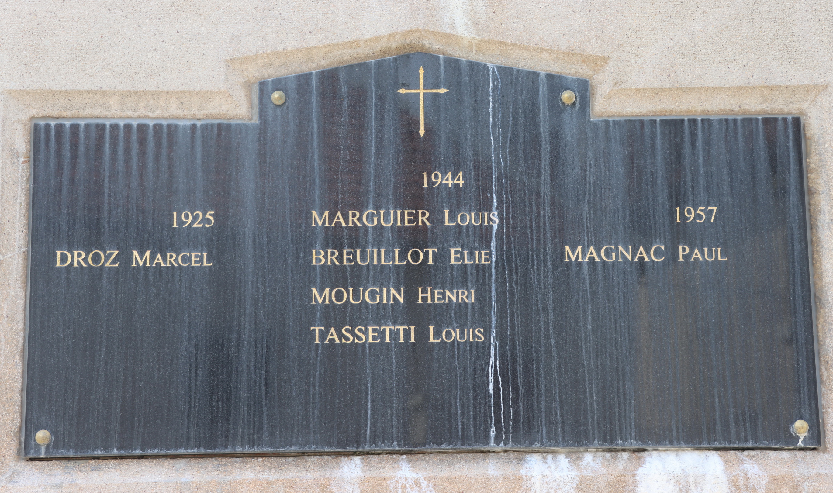 Widerstandskämpfer BREUILLOT Paul Elie 13.02.1900 - 13.10.1944 Angehöriger der "Maquis du Doubs" (Widerstandsgruppe) der Forces Françaises de l'Intérieur (F.F.I.) Wurde zusammen mit BADEL Jean von der Wehrmacht in Bethoncourt (F) standrechtlich erschossen. |