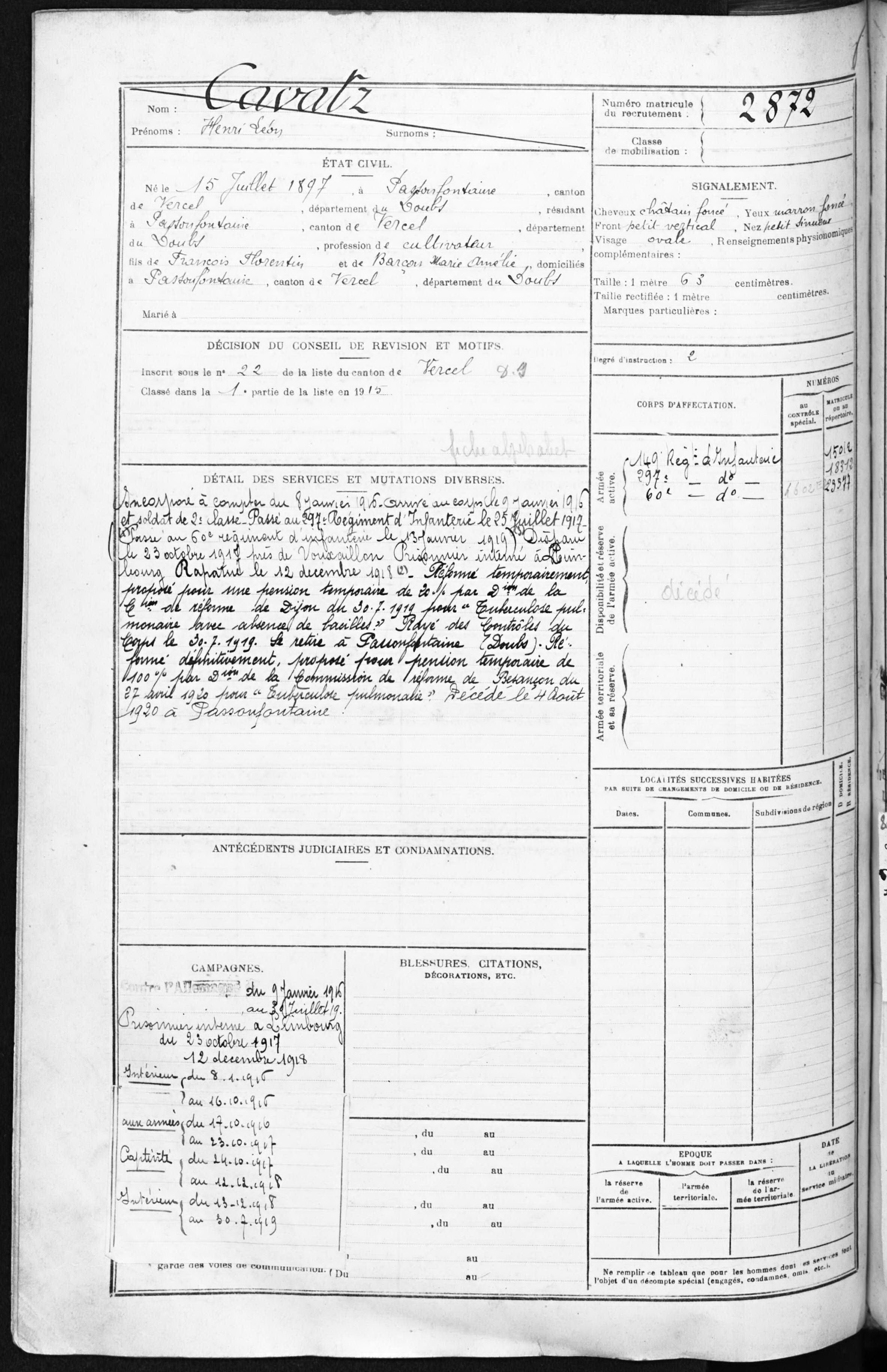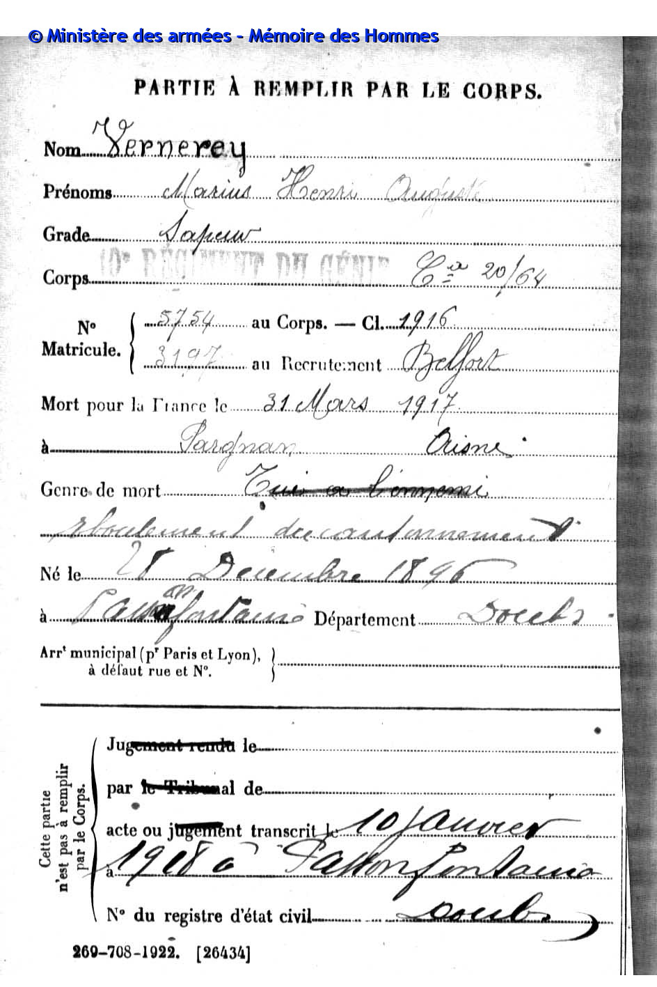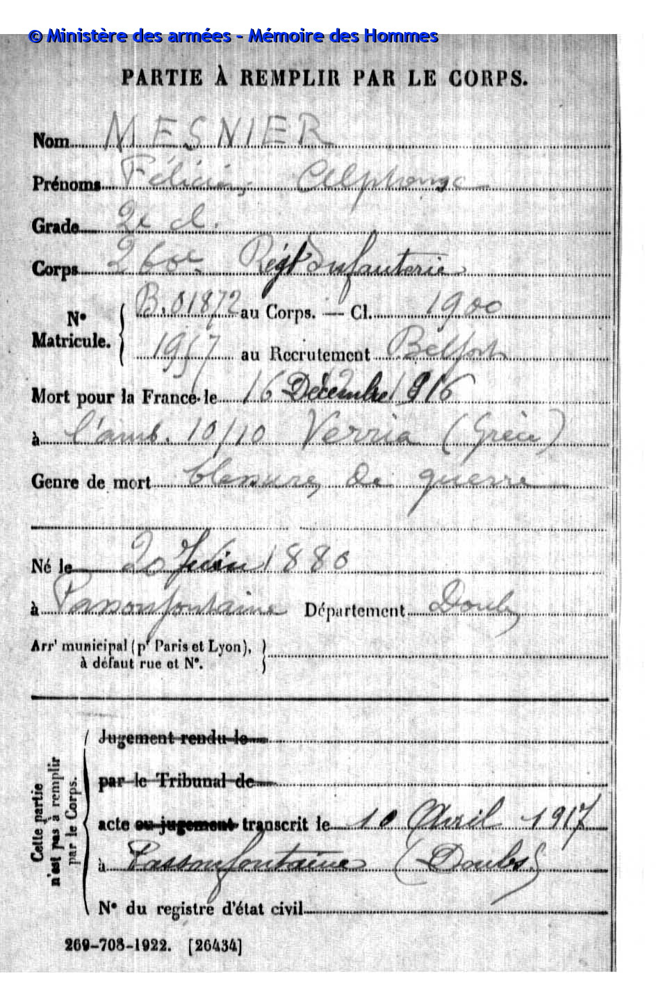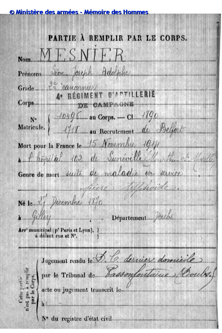 Die mit nur 328 Einwohner kleine Gemeinde im Departement Doubs (F) auf einer Fläche von 19,49 Km2 weist ein Kriegerdenkmal mit 23 Namen von gefallen Soldaten auf, 14 davon sind mit Fabian Coulot verwandt