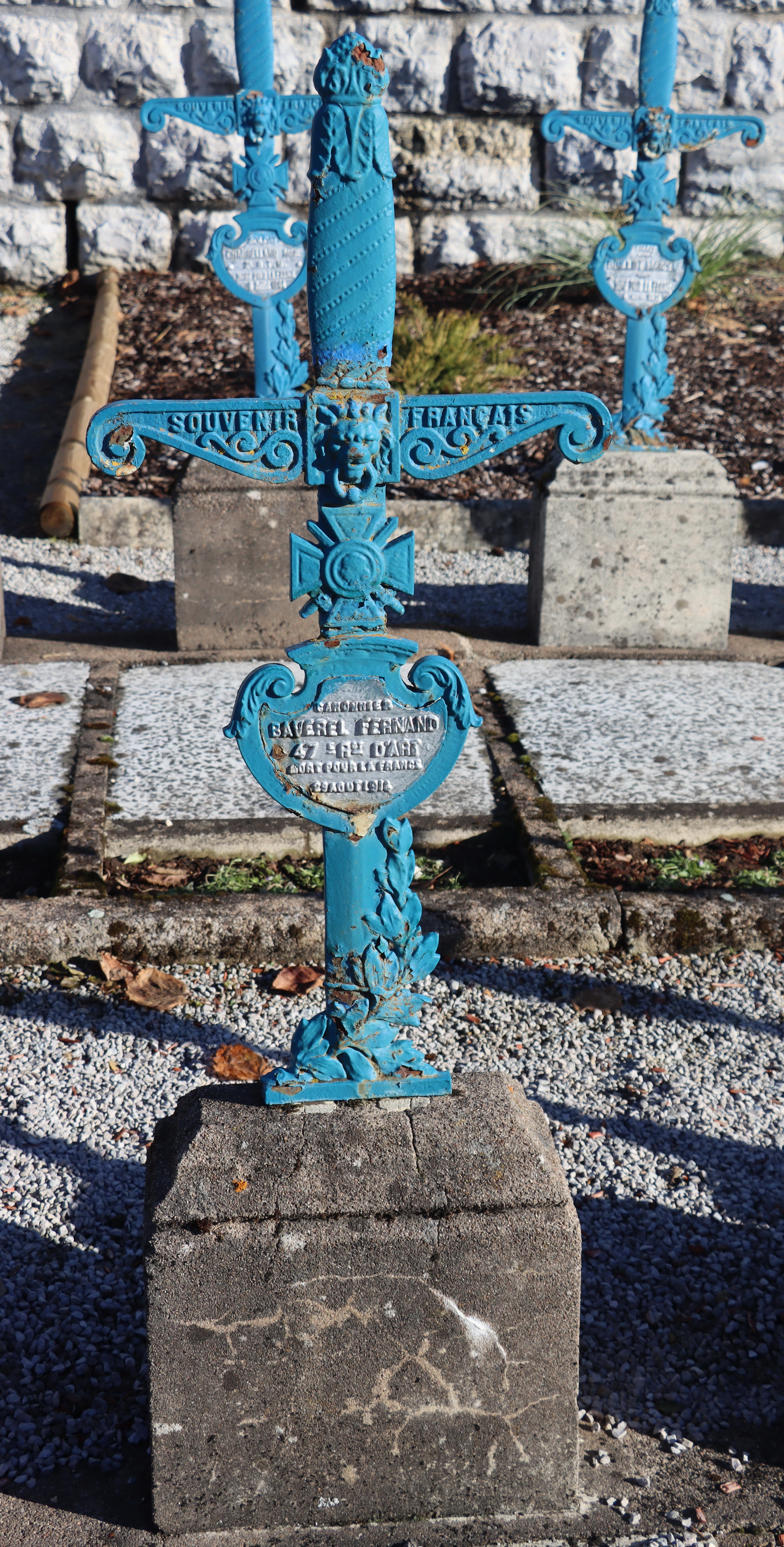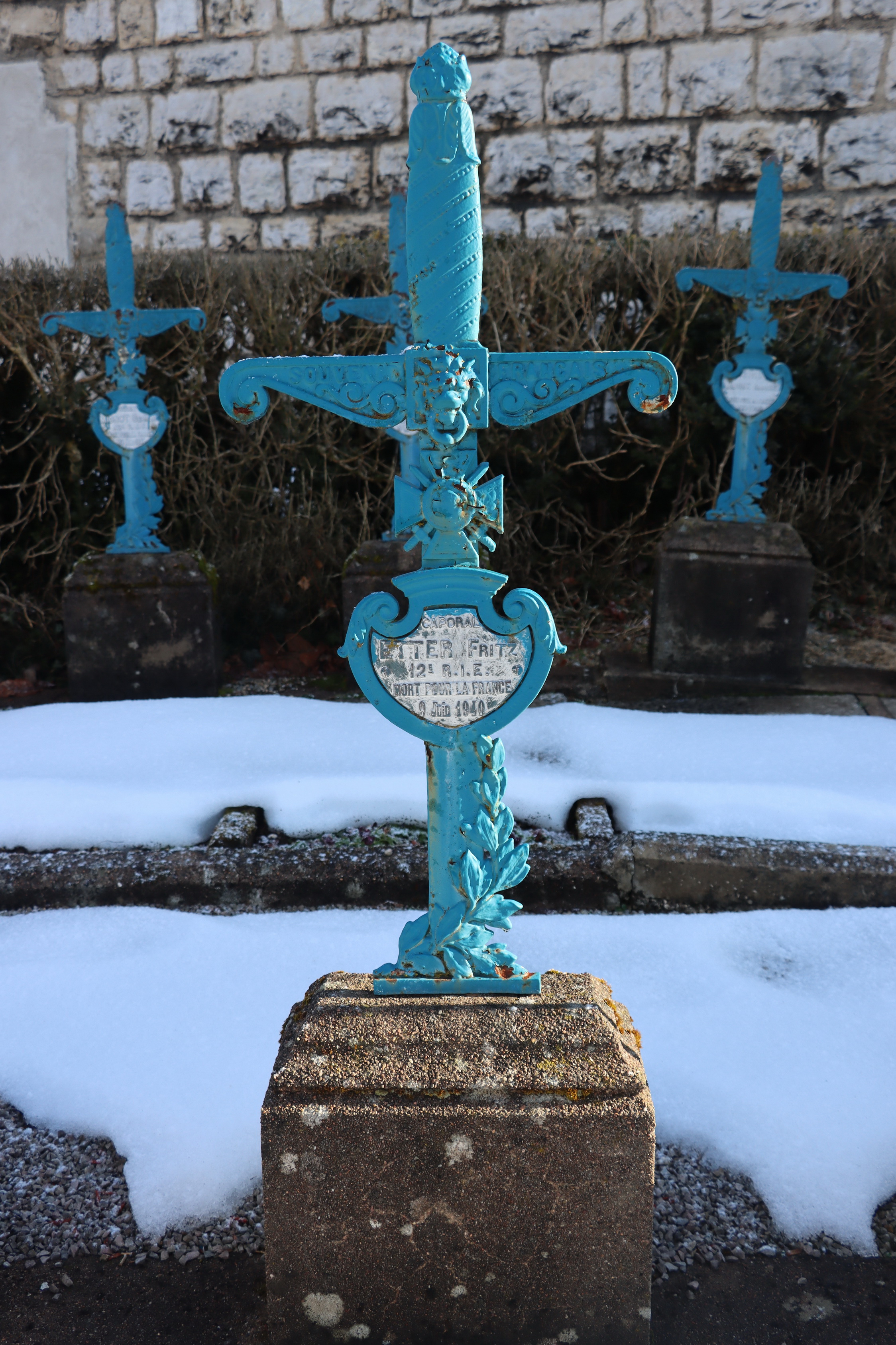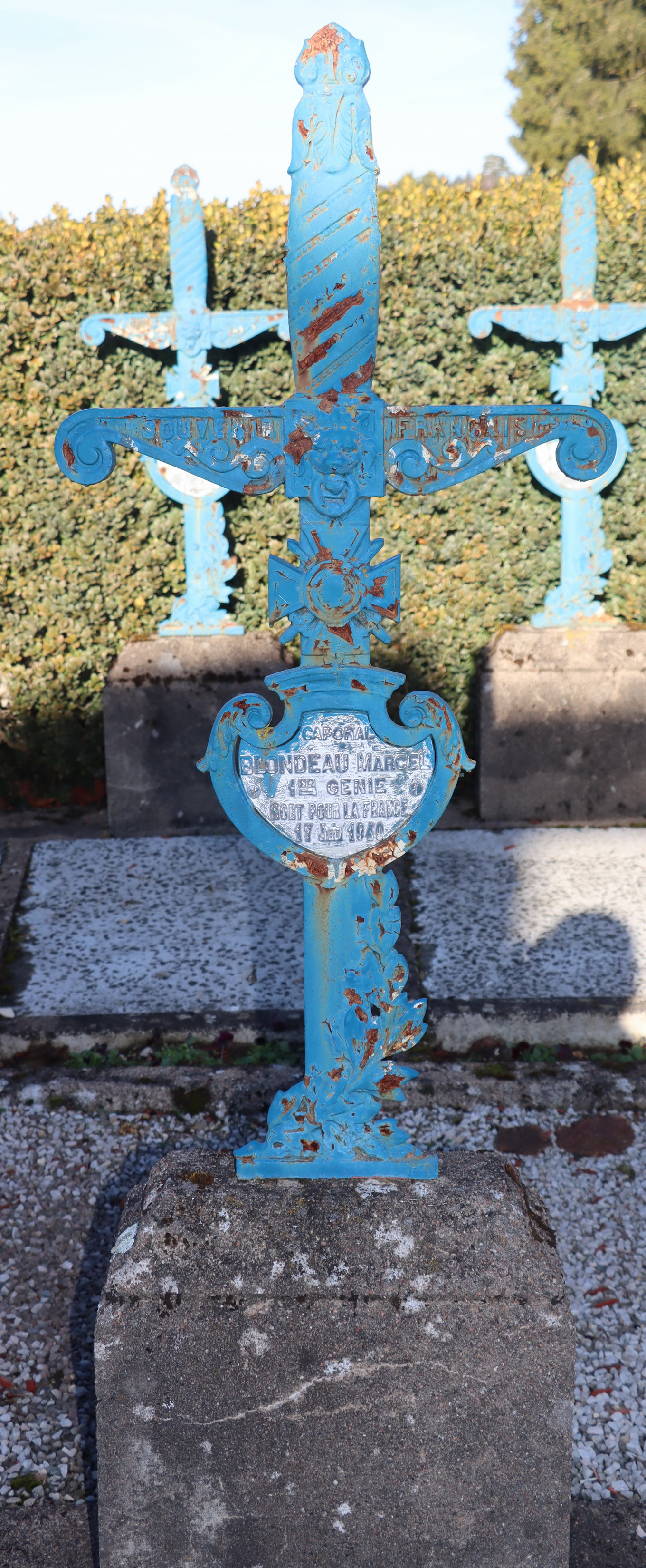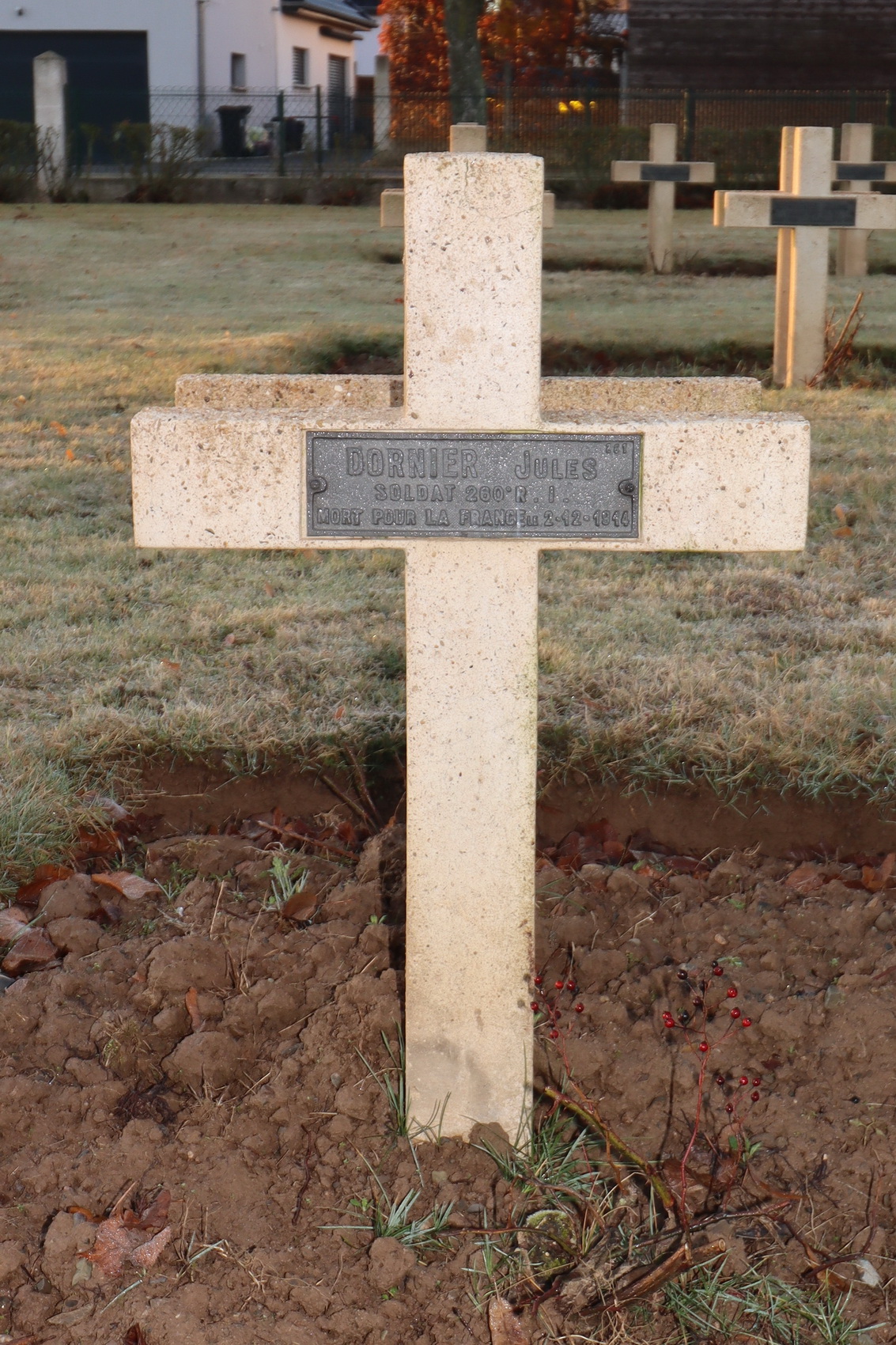 | Sapeur MORE Albert Joseph Henri 12.12.1900 - 16.06.1940 15ème Régiment du Génie Verstarb an seinen Wunden in Chaux-les-Port - Haute-Saone (F) Militärfeld Gemeindefriedhof in Navenne (F) Individuelles Grab ohne Nummer |