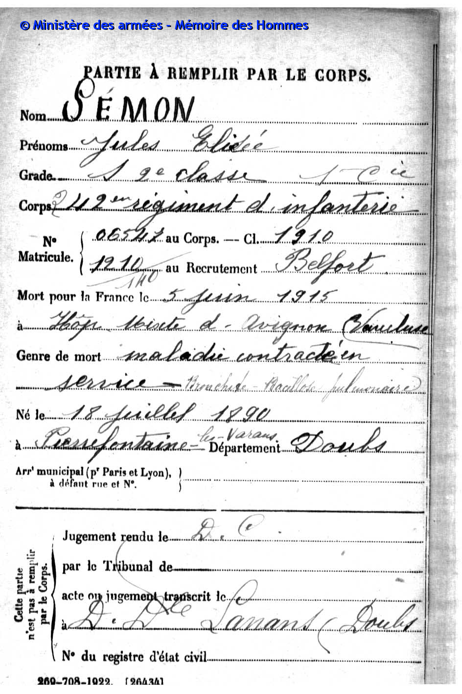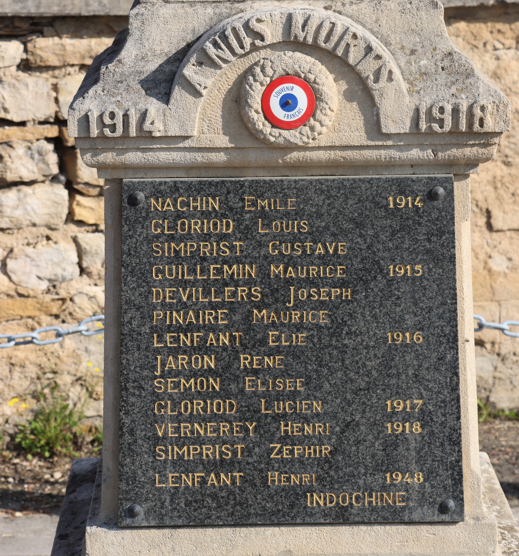 Von den 13 Namen der gefallenen Soldaten auf dem Kriegerdenkmal sind 7 mit Fabian Coulot verwandt.