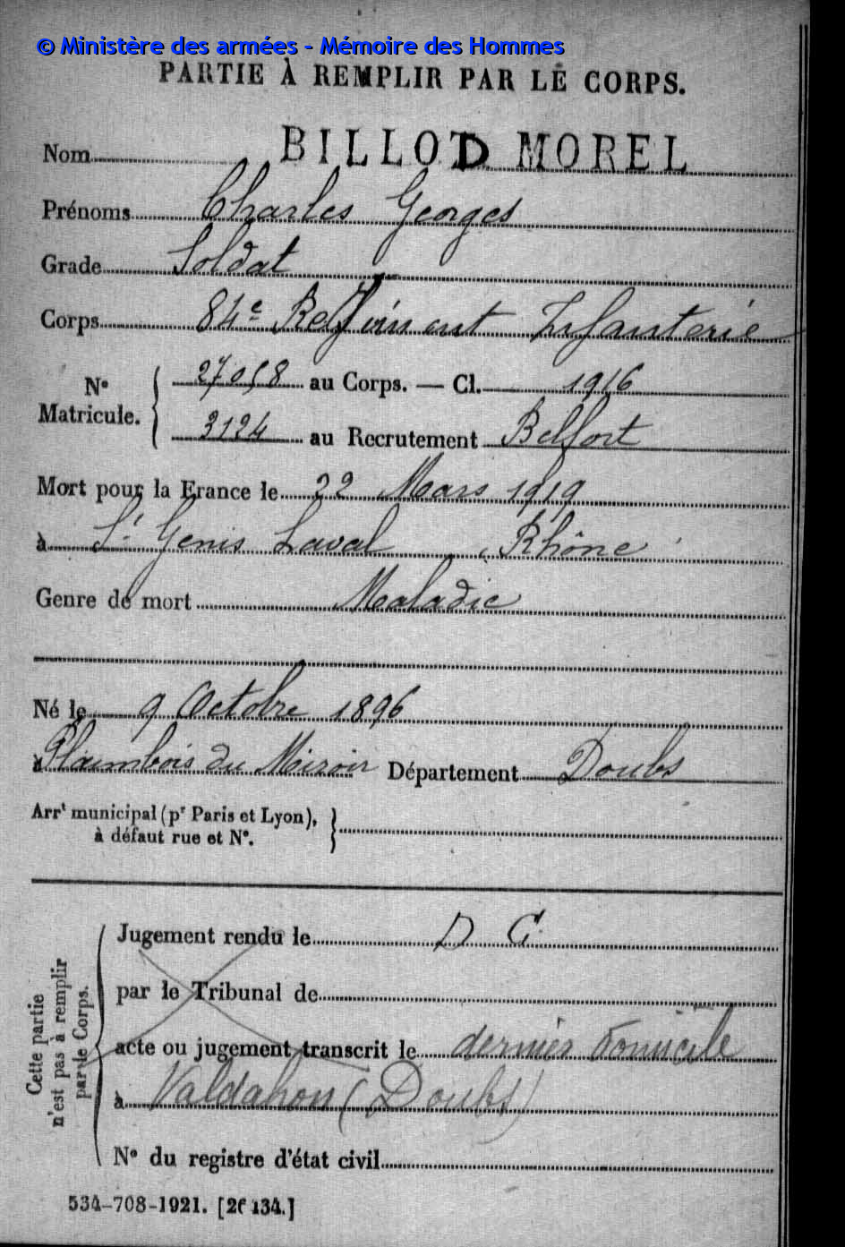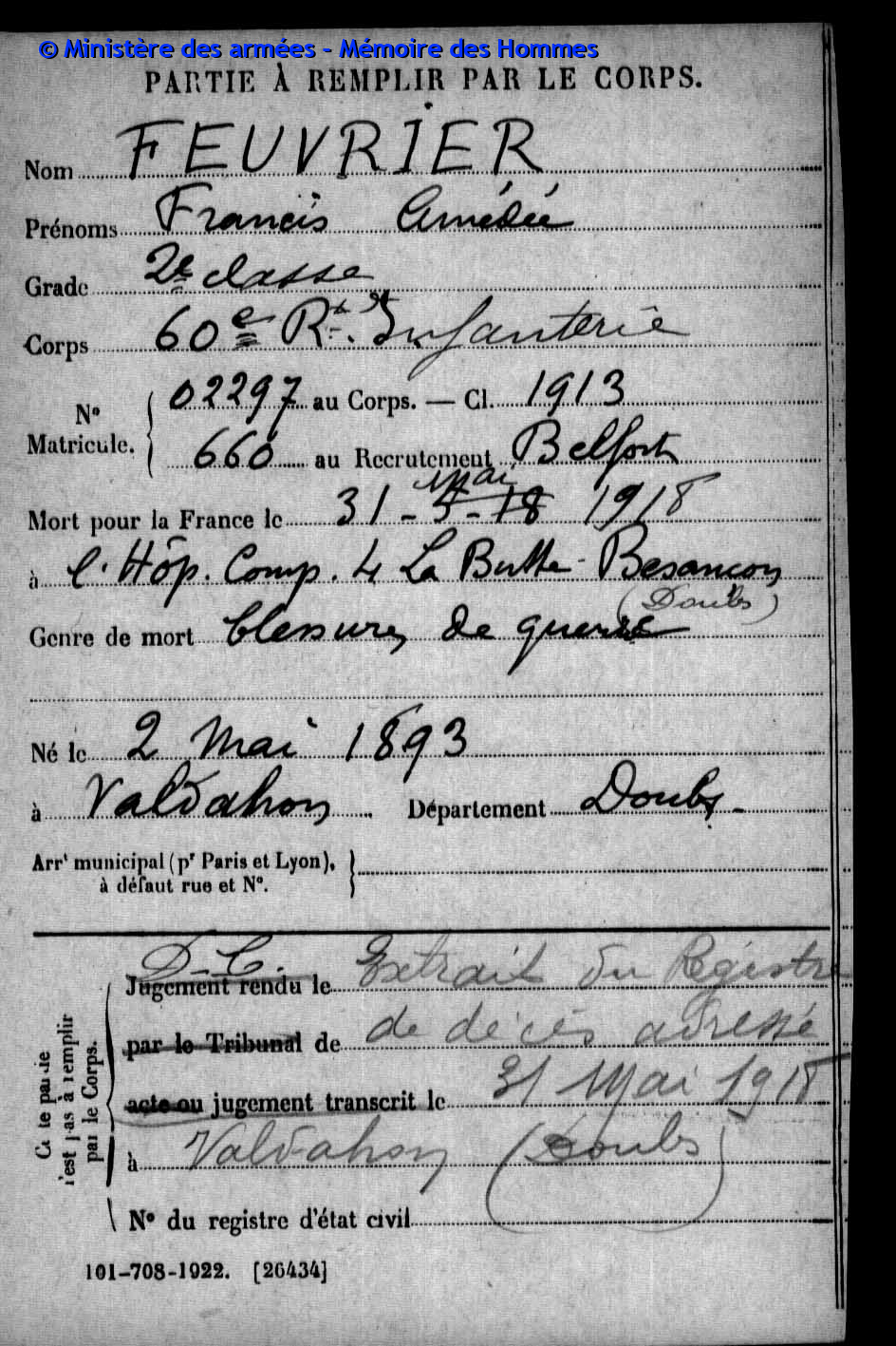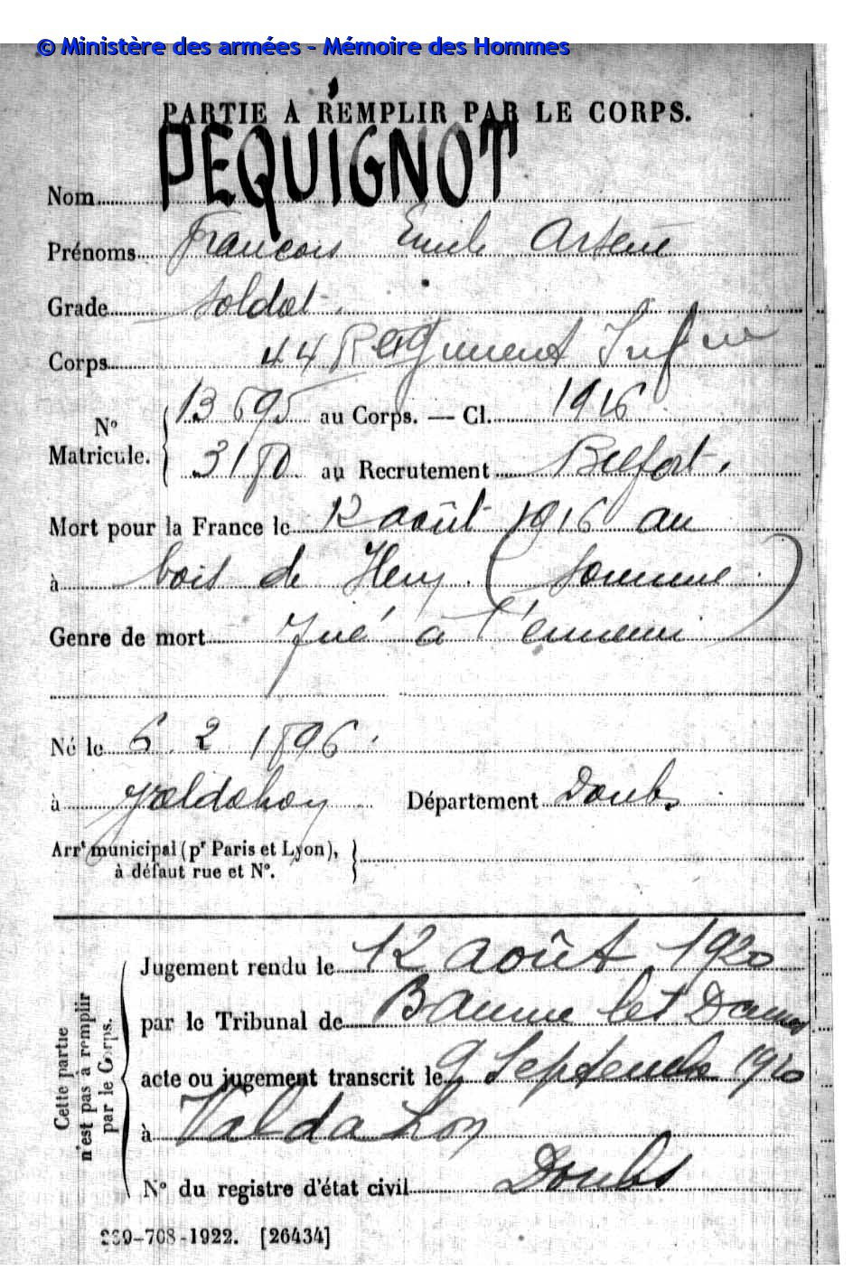 Coulot [Sein Name befindet sich ebenfalls auf dem Kriegerdenkmal in Arc-sous-Cicon (F)] |