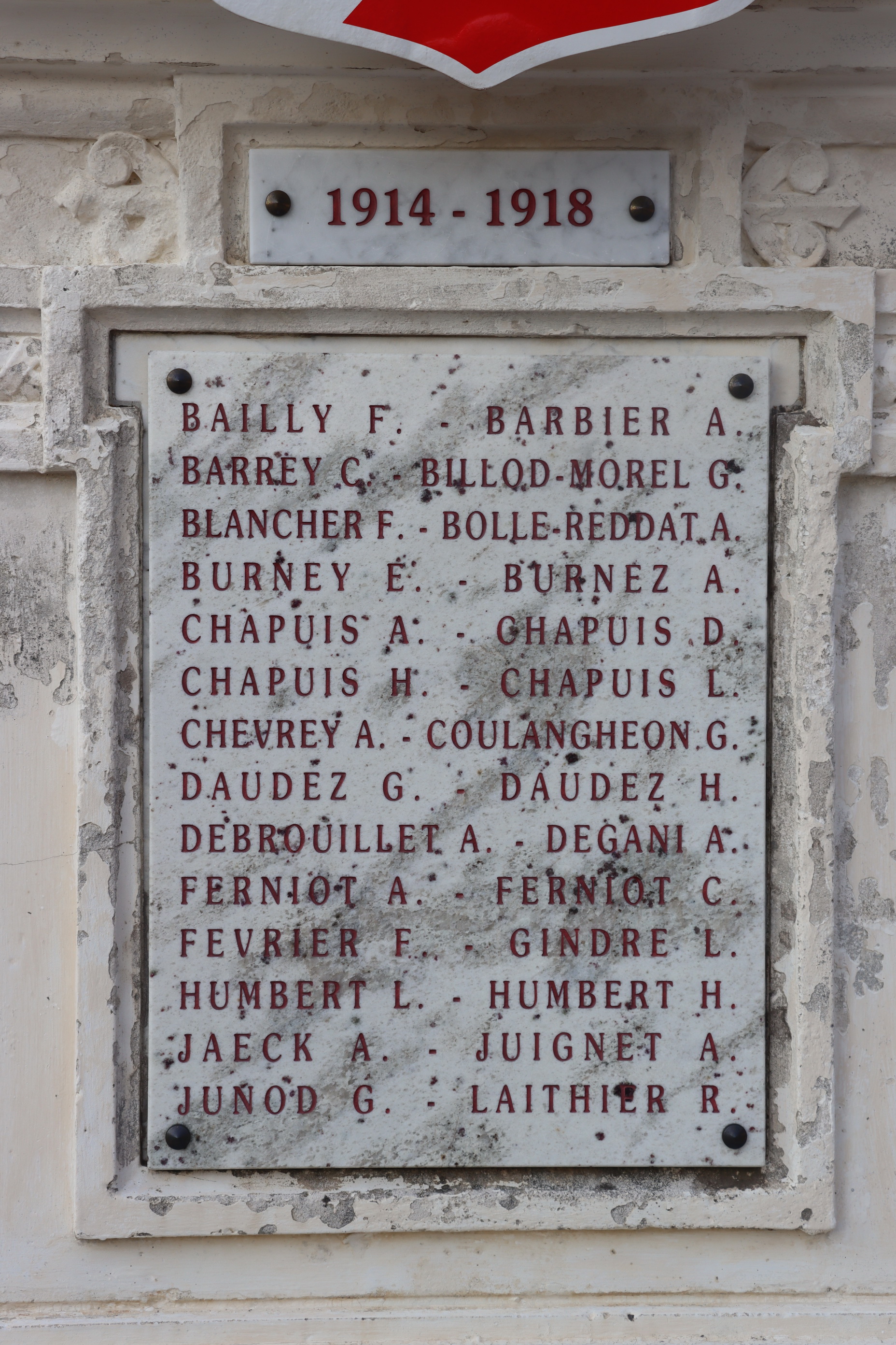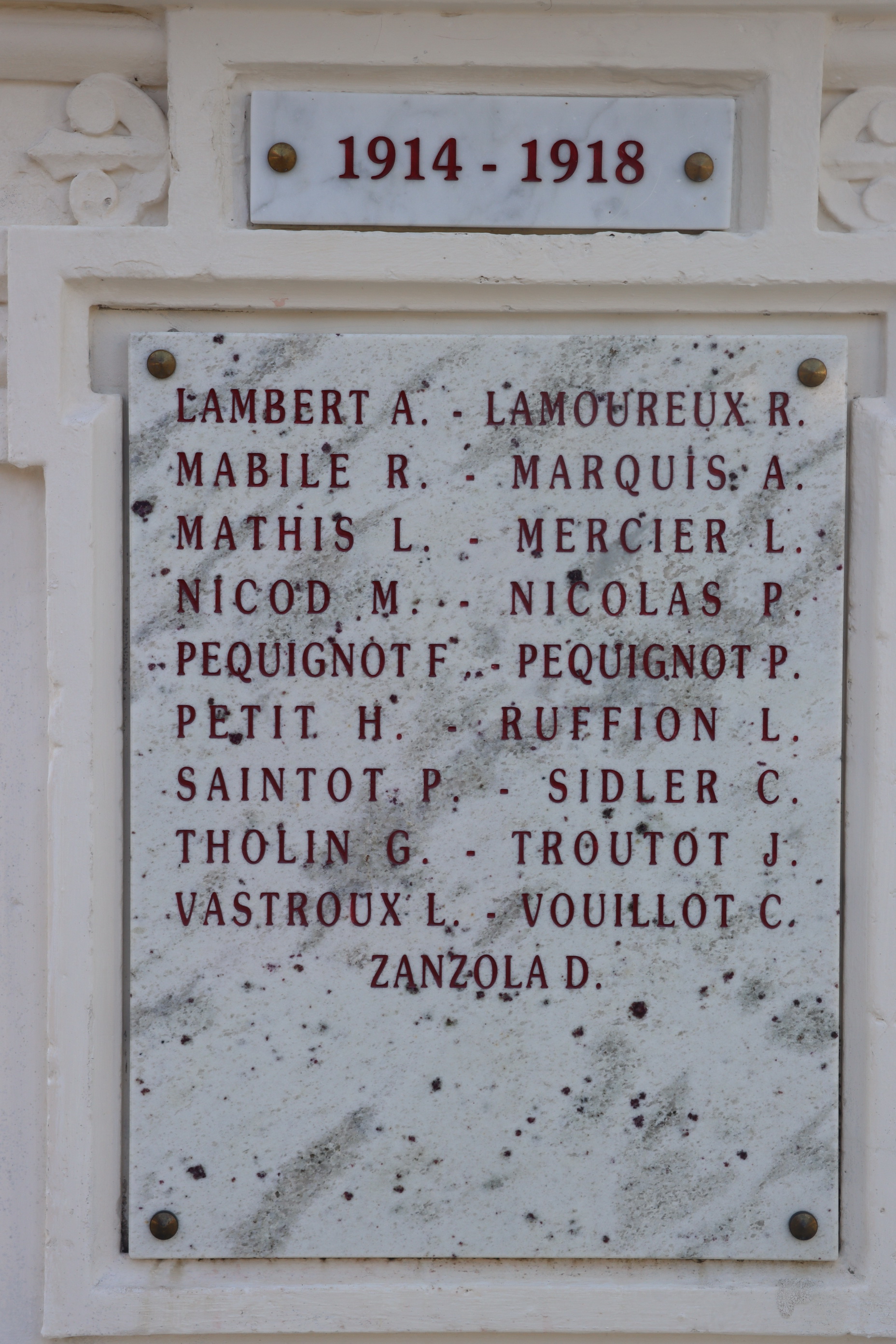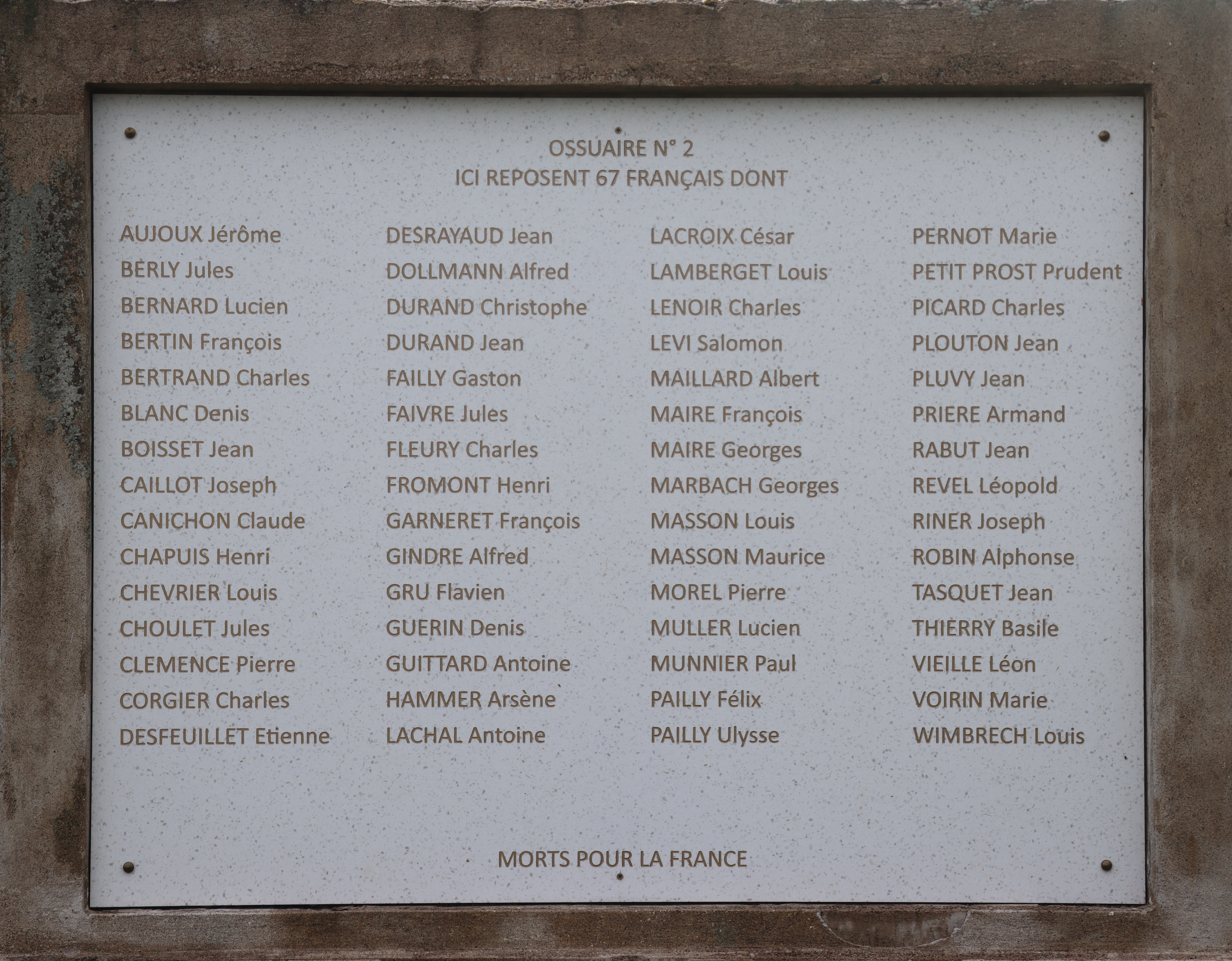 Auf dem Kriegerdenkmal befinden sich 61 Namen von gefallenen Soldaten, davon sind 23 mit Fabian Coulot verwandt.