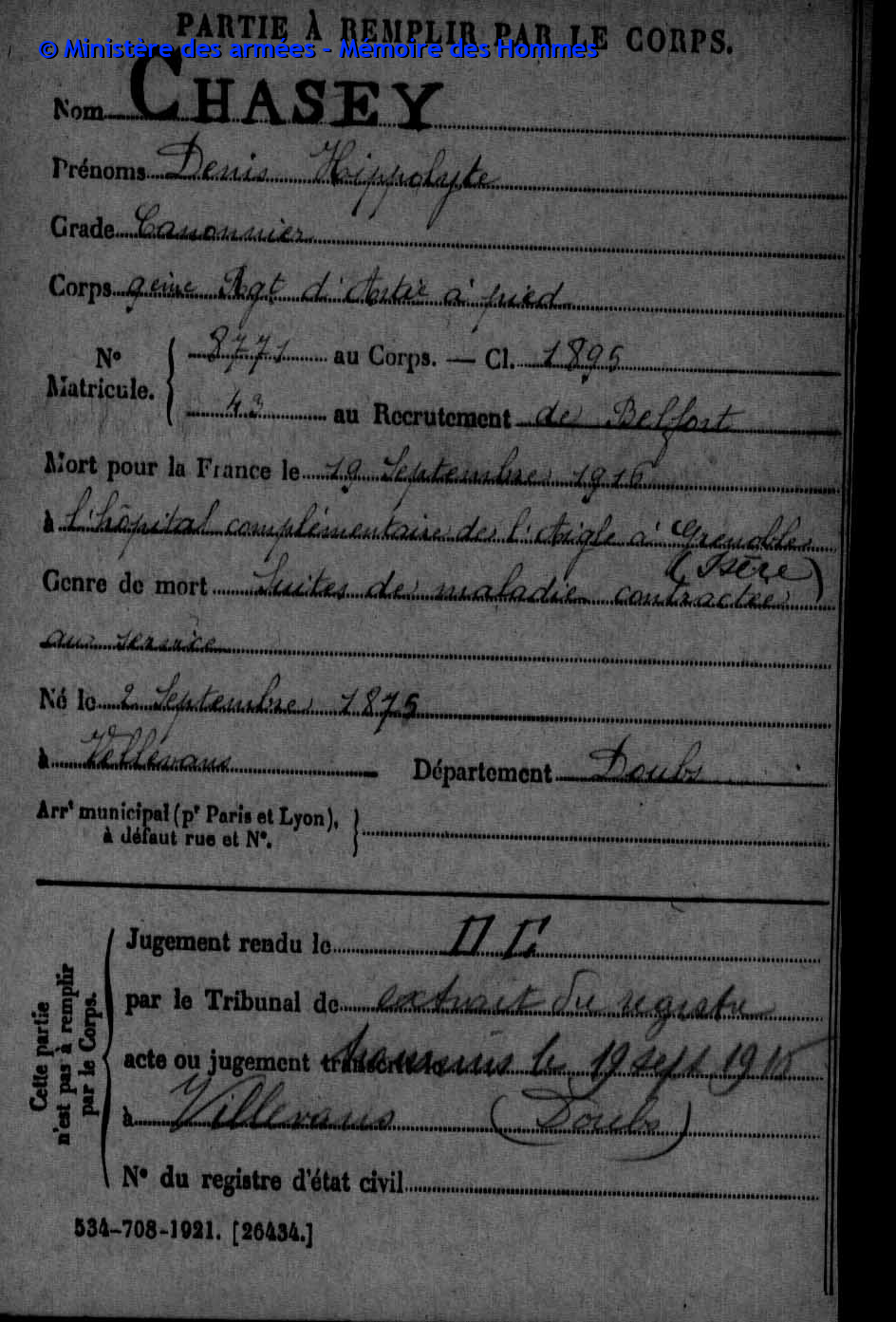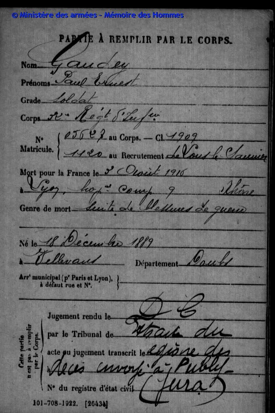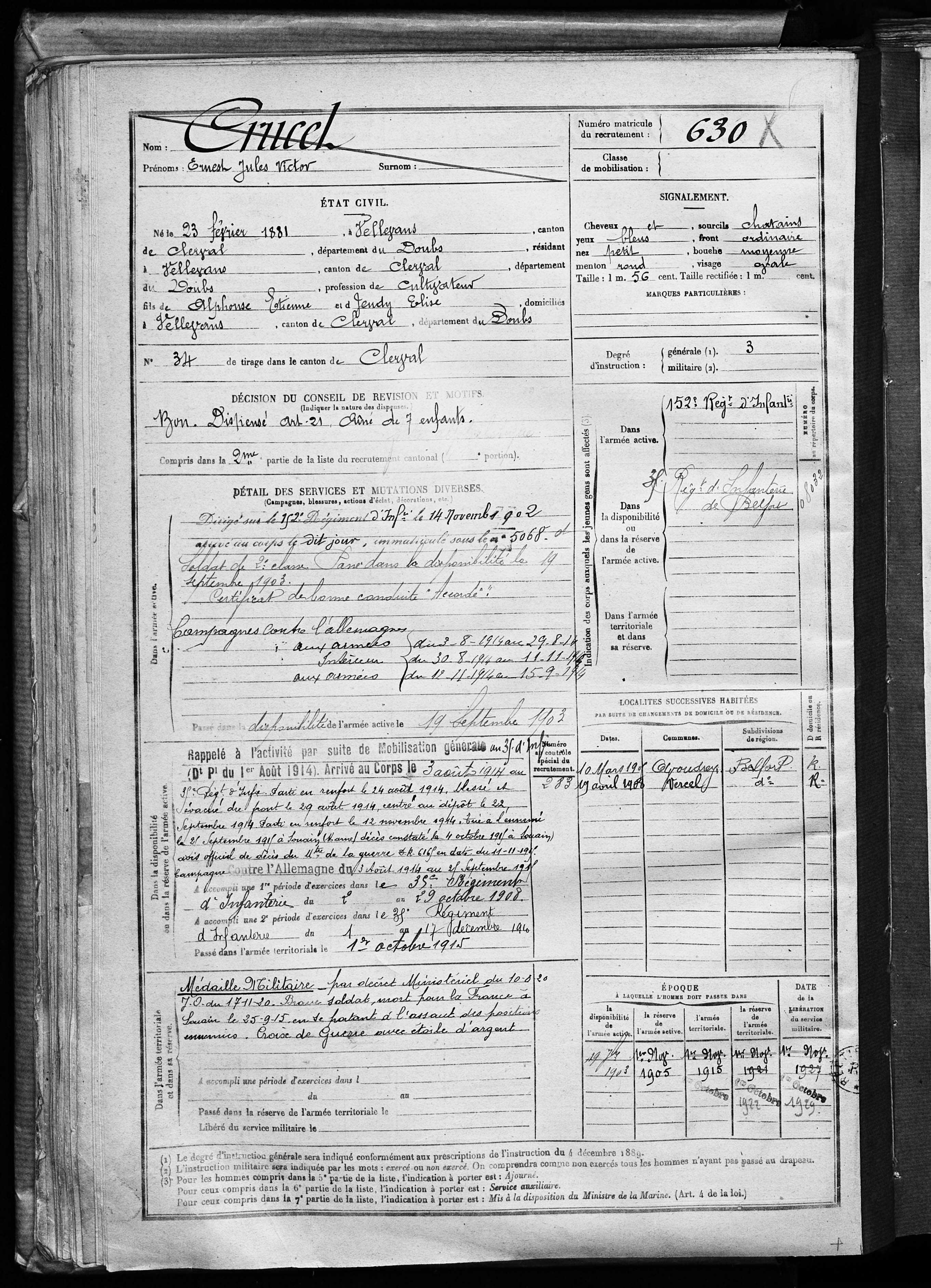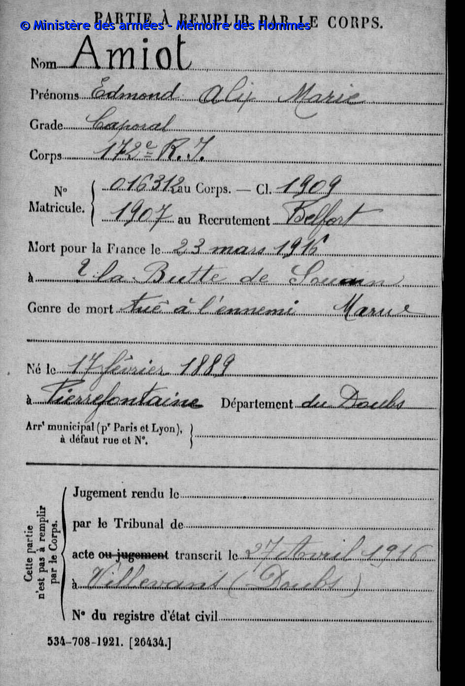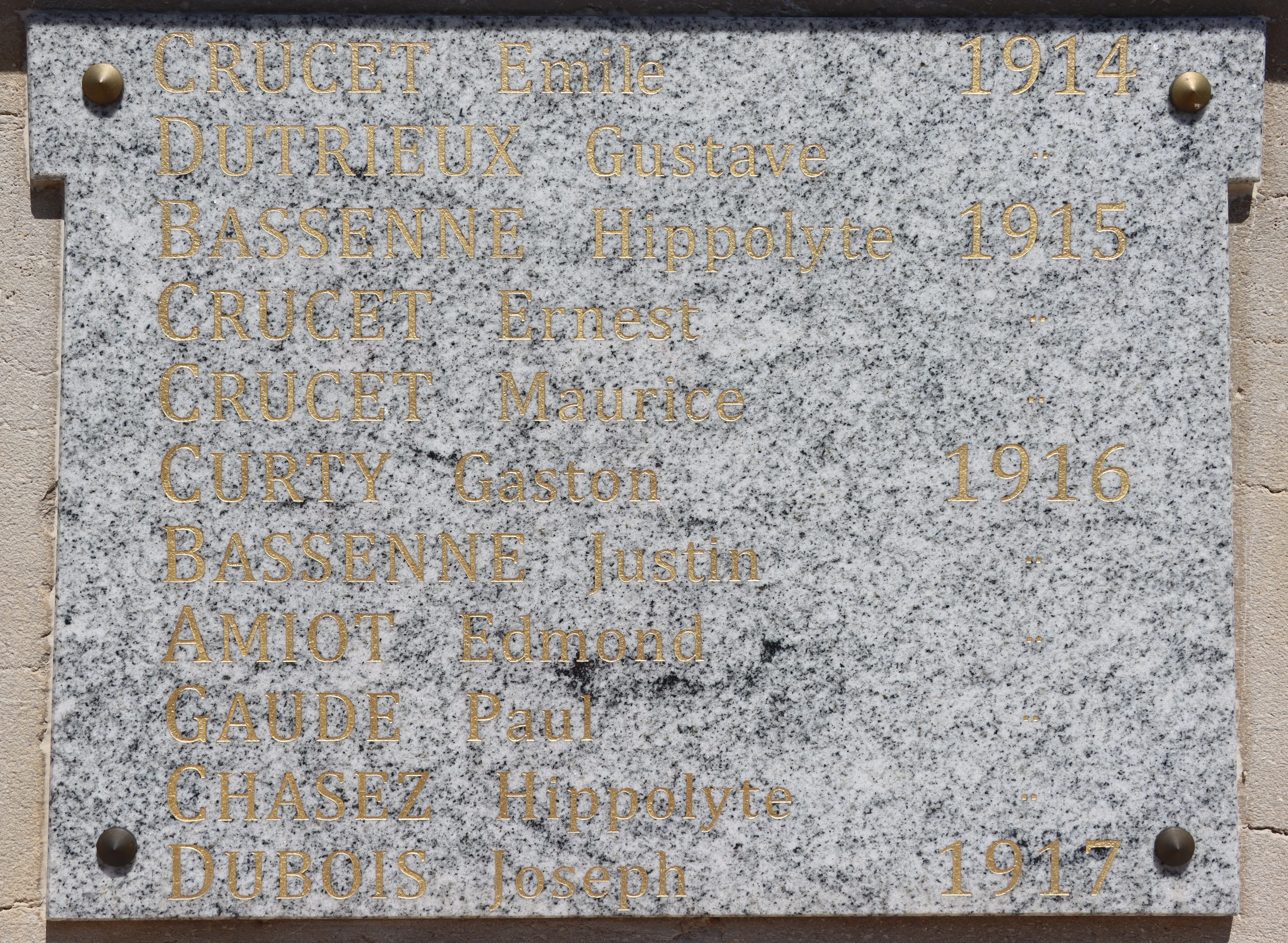 Von den 14 Namen der Kriegsopfer auf dem Denkmal im 13,54 Km2 kleinen Dorf mit 237 Einwohner im Departement Doubs (F), sind 7 mit Fabian Coulot verwandt.