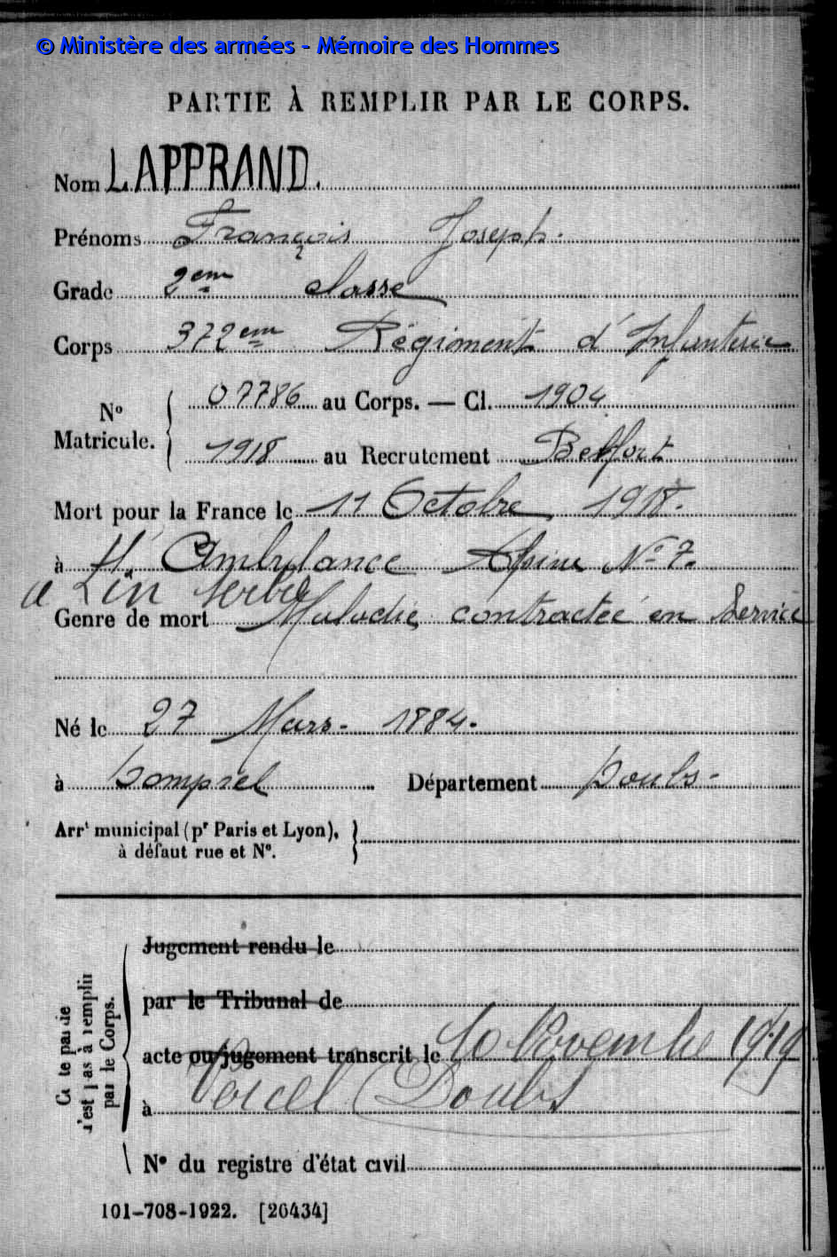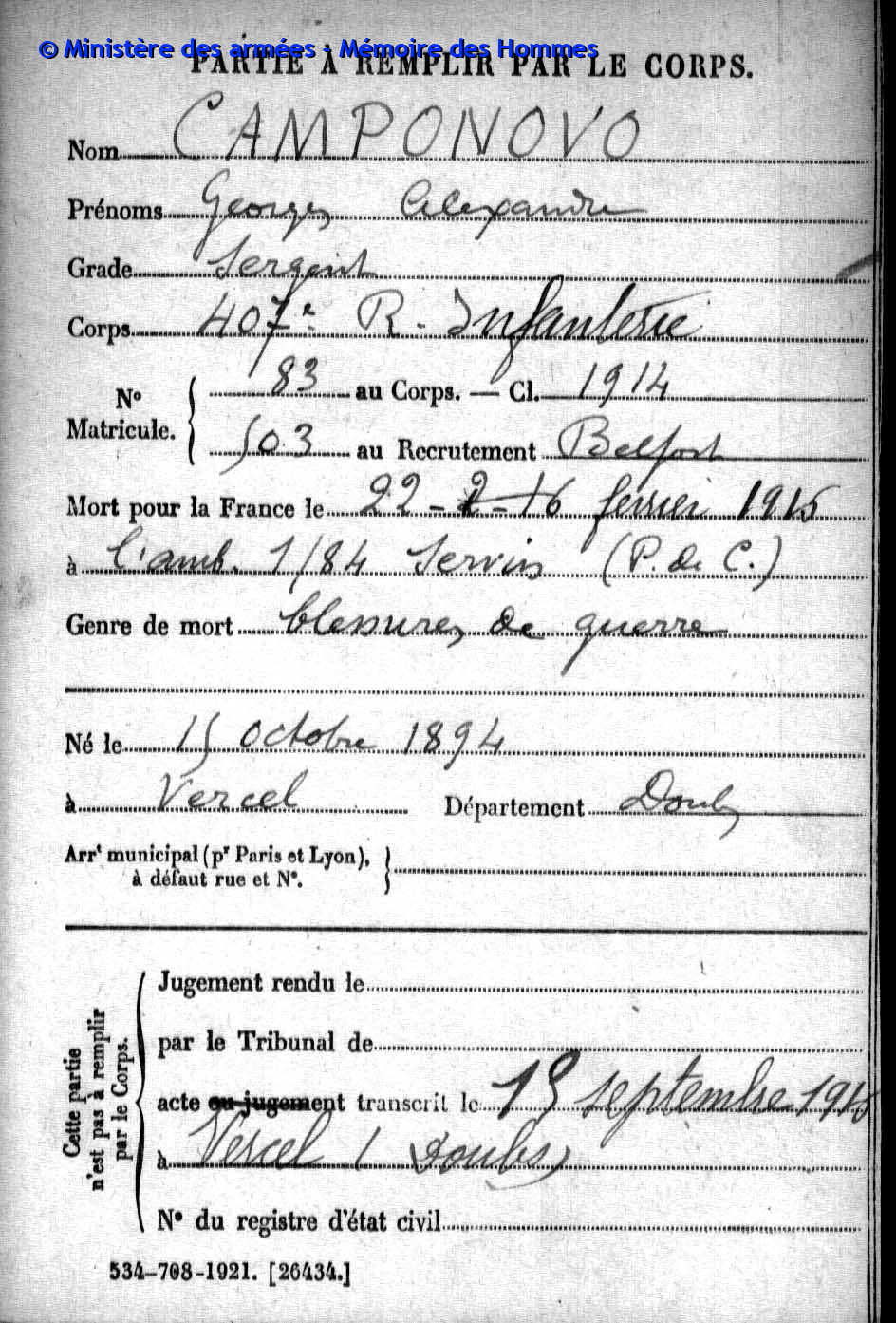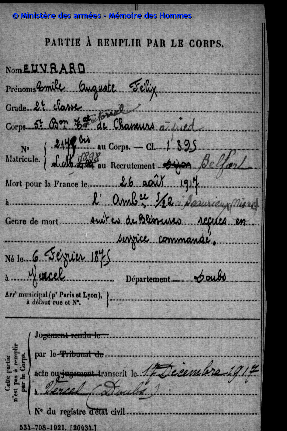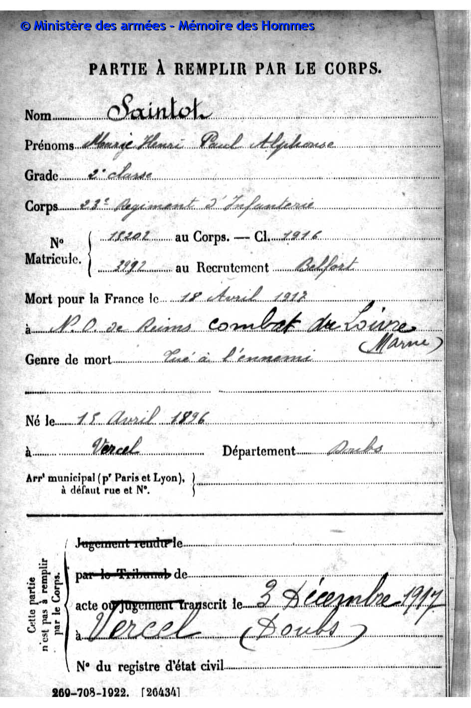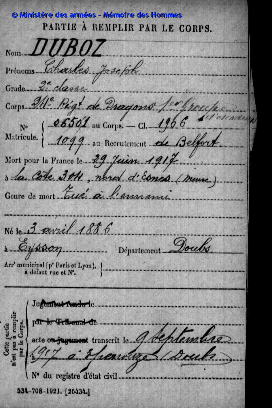 2ème classe BILLEREY Louis Abel Ema 02.01.1898 - 07.10.1918 24ème Régiment d'Infanterie Coloniale Gefallen in Bazancourt - Marne (F) |