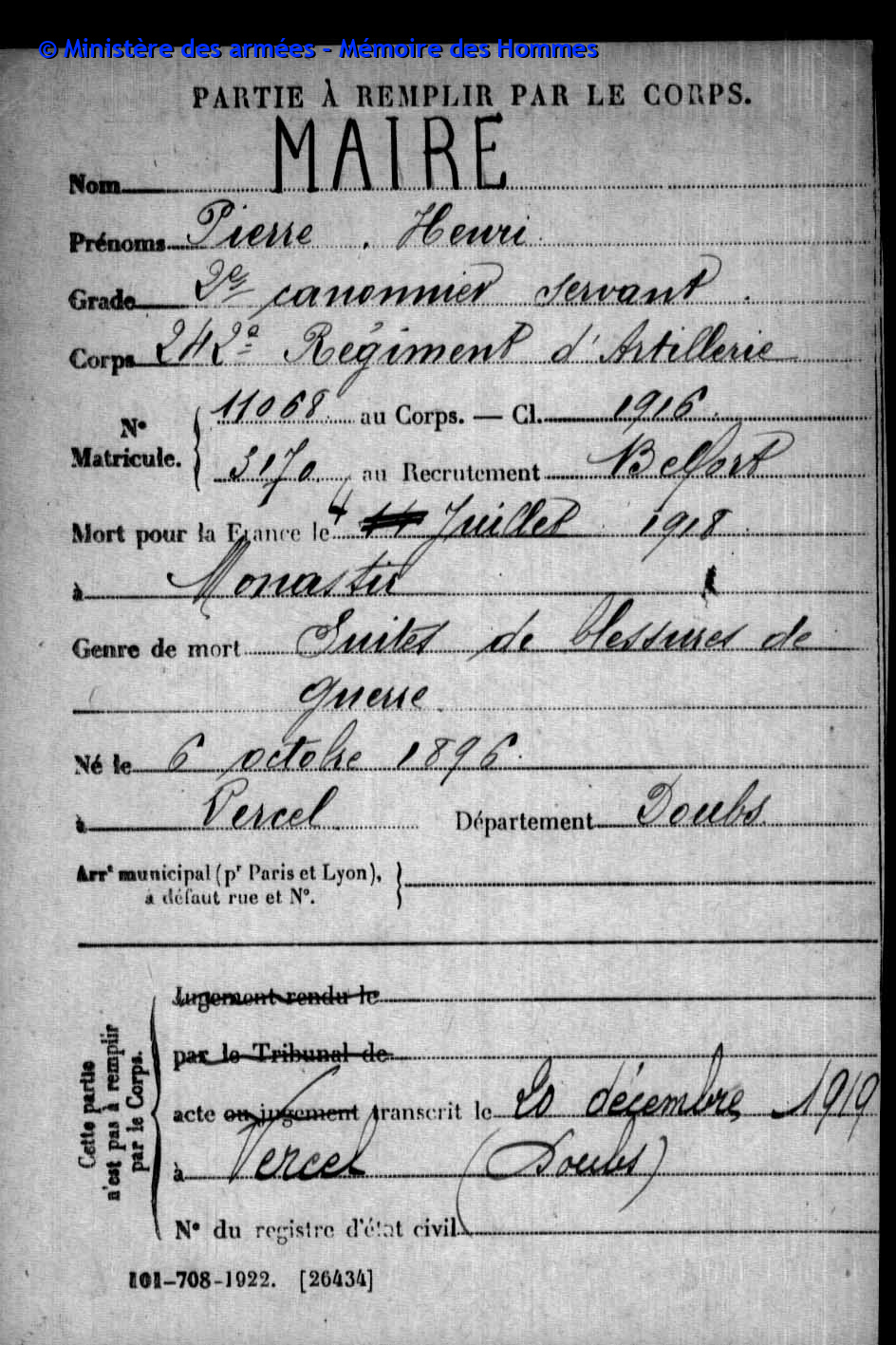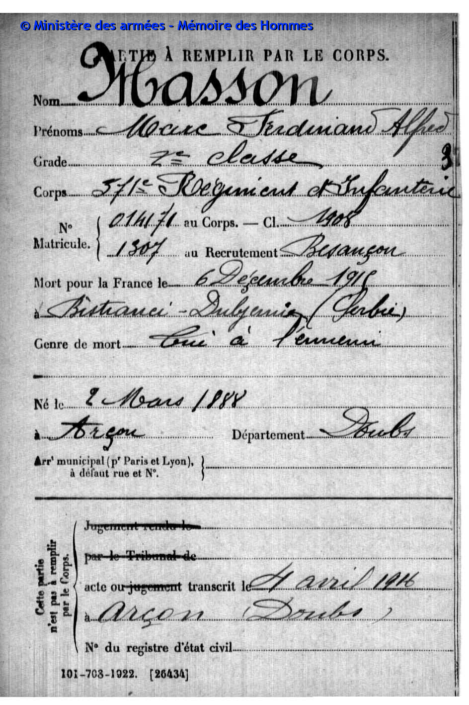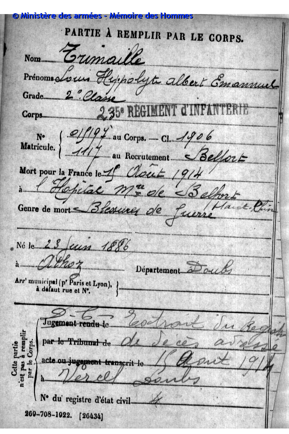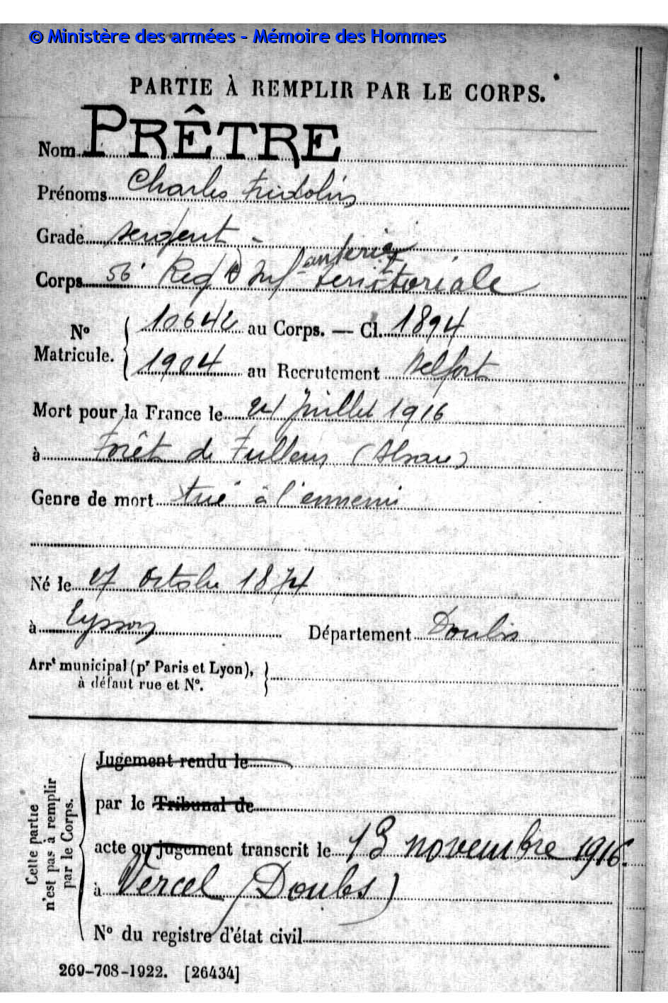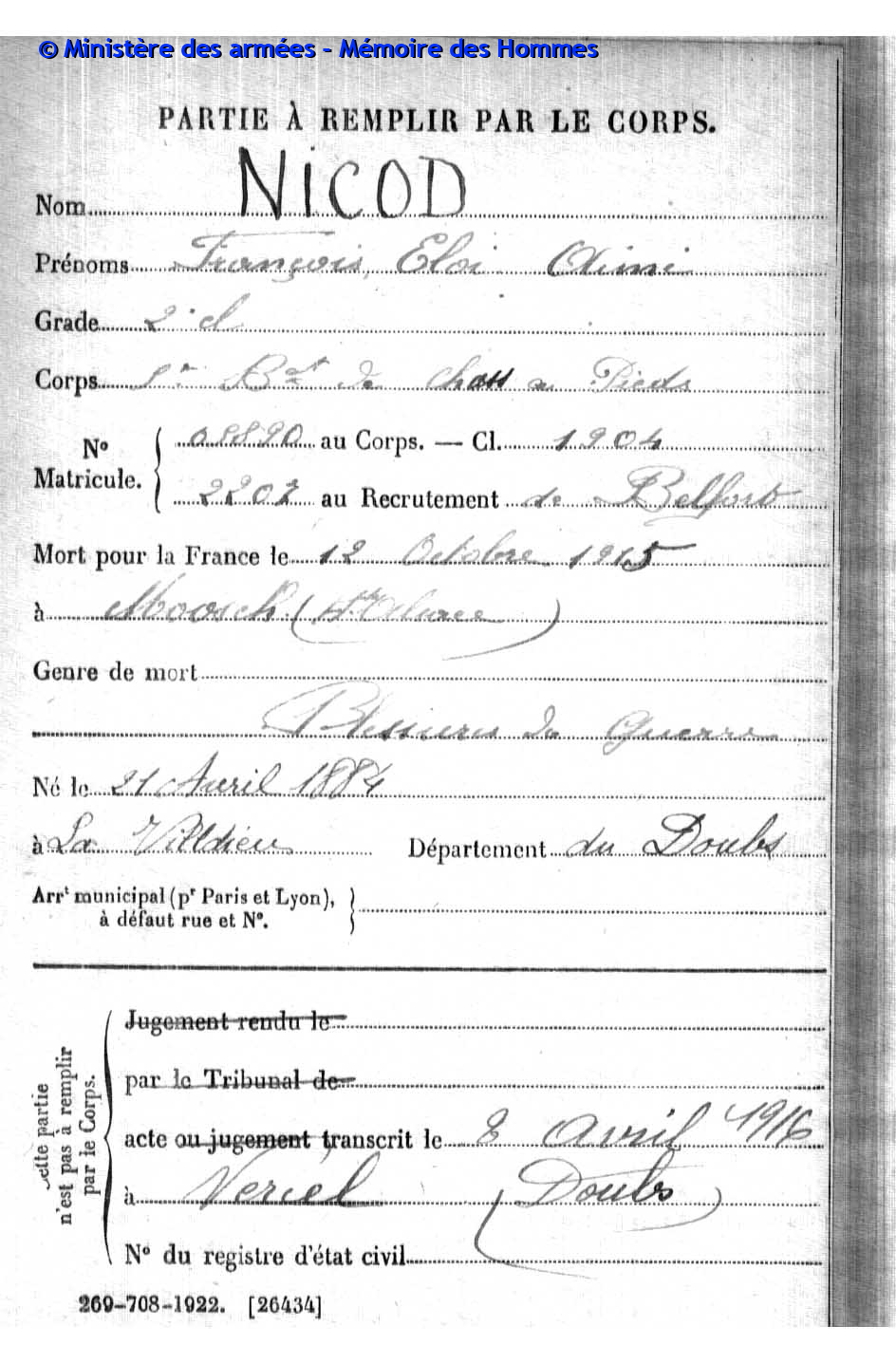 2ème classe BILLEREY Louis Abel Ema 02.01.1898 - 07.10.1918 24ème Régiment d'Infanterie Coloniale Gefallen in Bazancourt - Marne (F) |