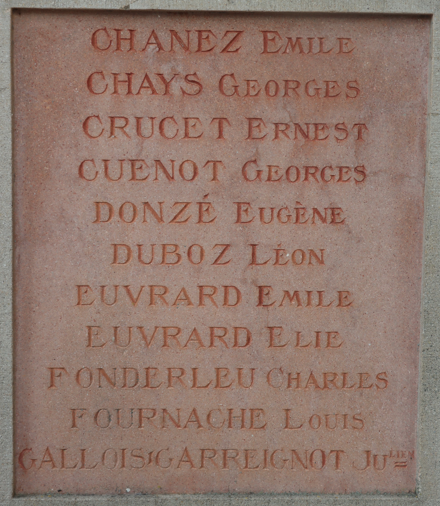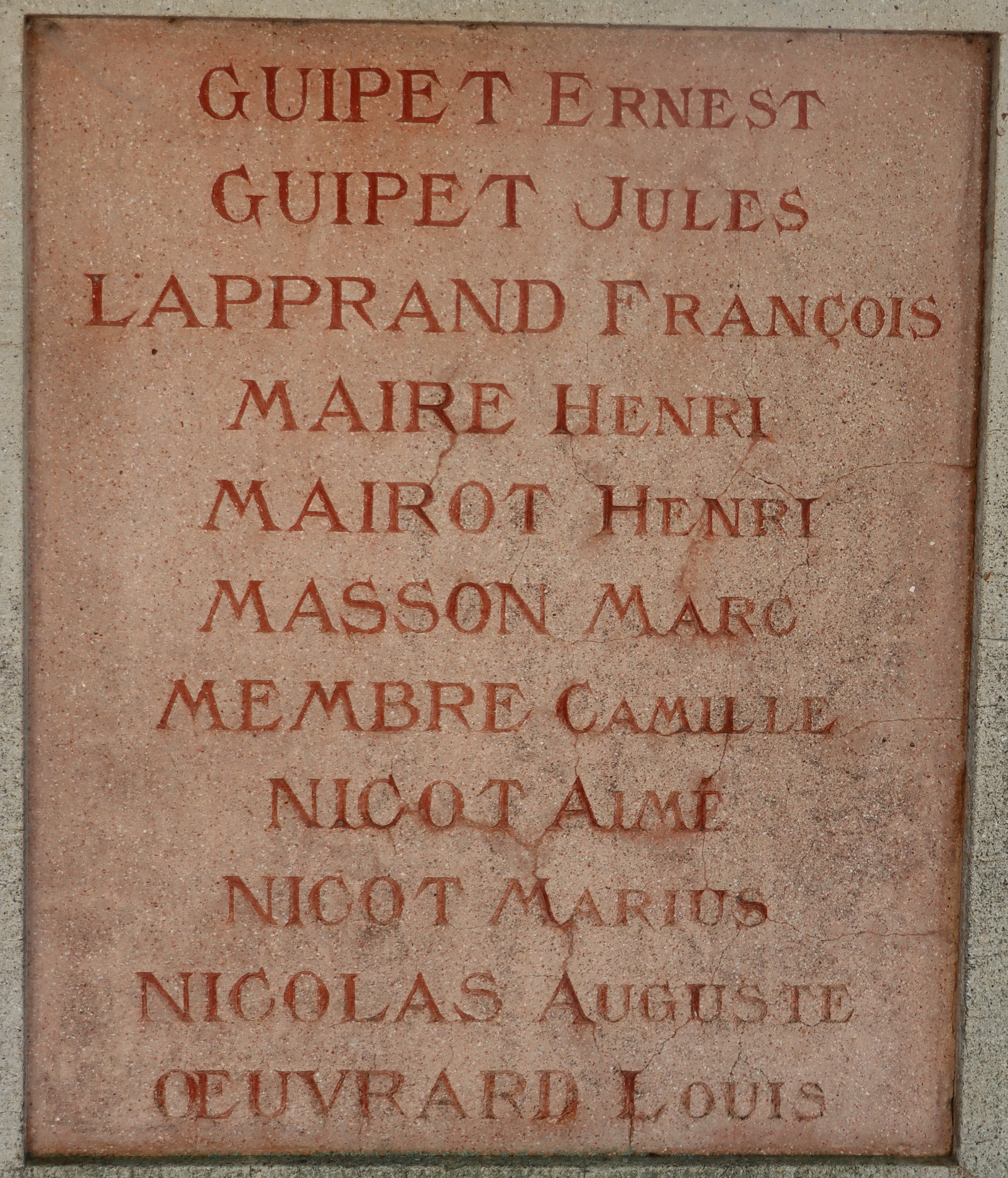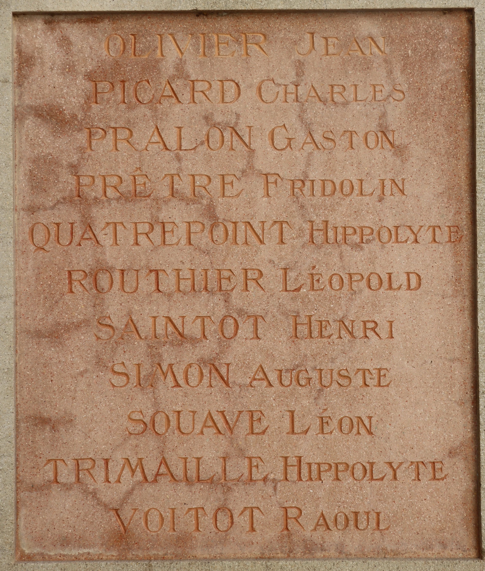 Auf dem Kriegerdenkmal des Ortes sind die Namen von 55 im Krieg gefallenen Soldaten aufgelistet, davon sind 27 mit Fabian Coulot verwandt.