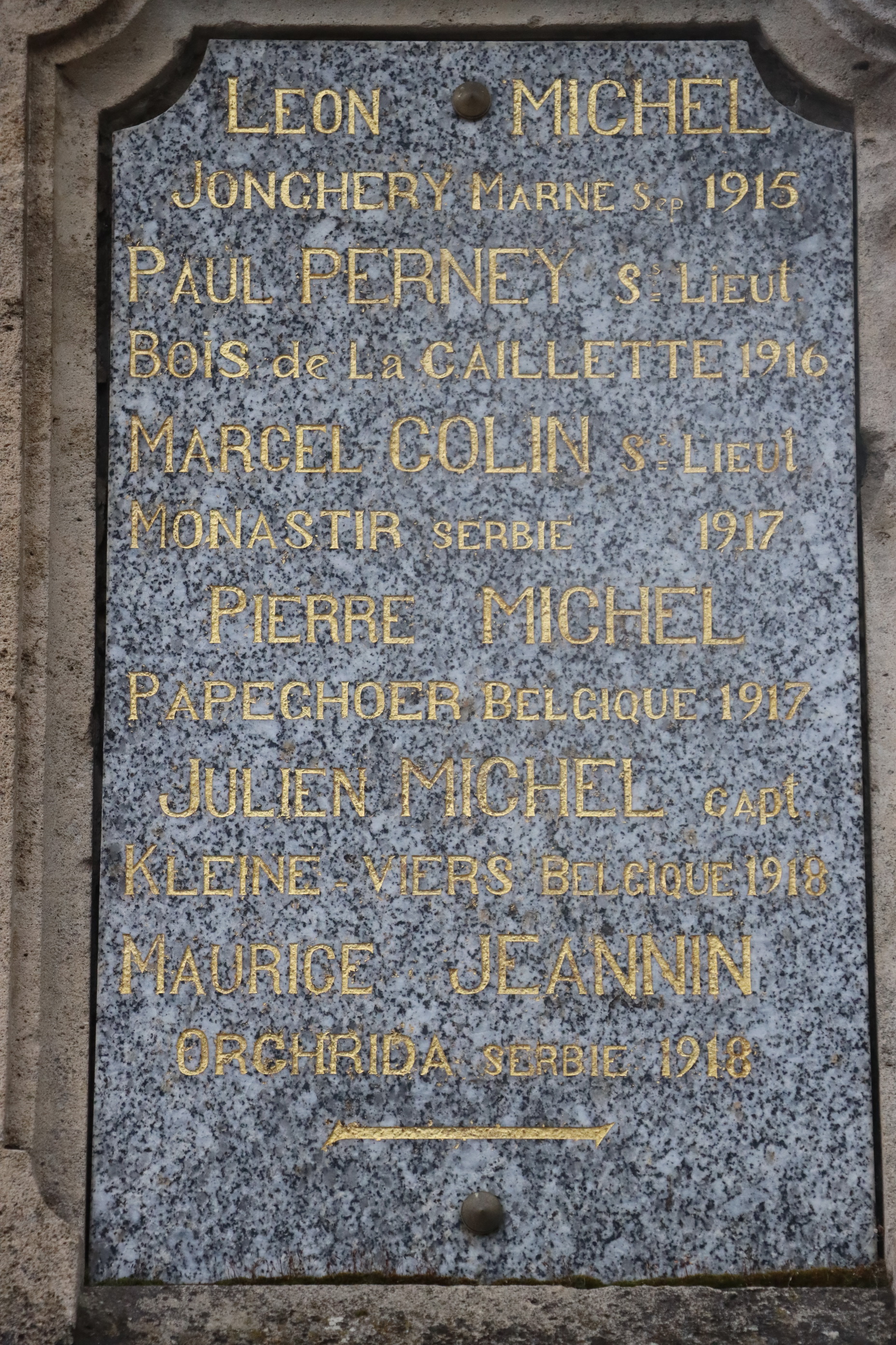 Von den 12 Namen der gefallenen Soldaten auf dem Kriegerdenkmal im Ort sind 9 mit Fabian Coulot verwandt.