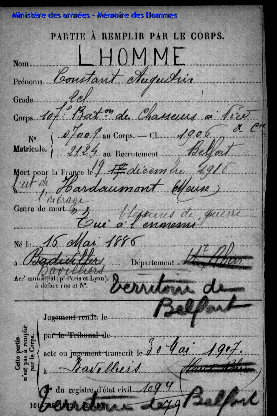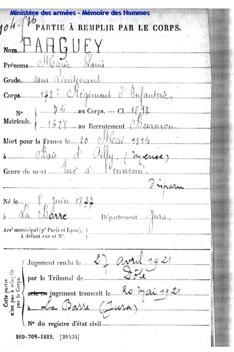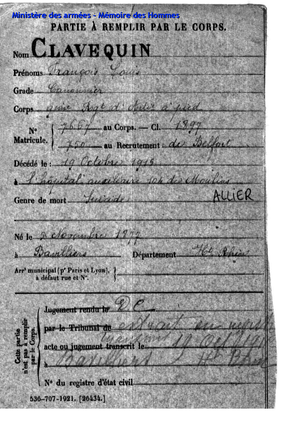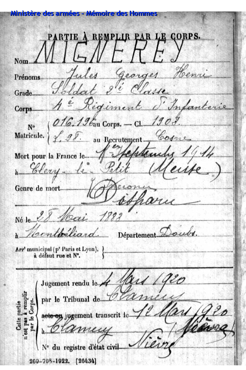 | Aspirant PY Clément Louis Alphonse 14.01.1892 - 10.06.1940 72ème Régiment Régional Verstarb in Belfort (F) |