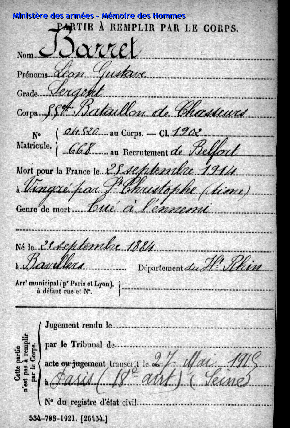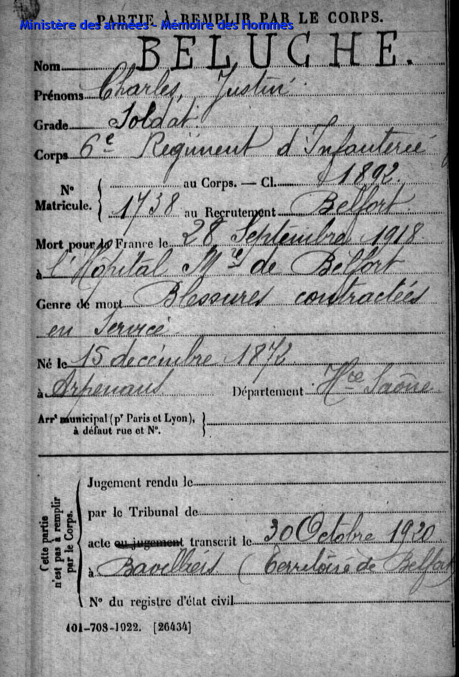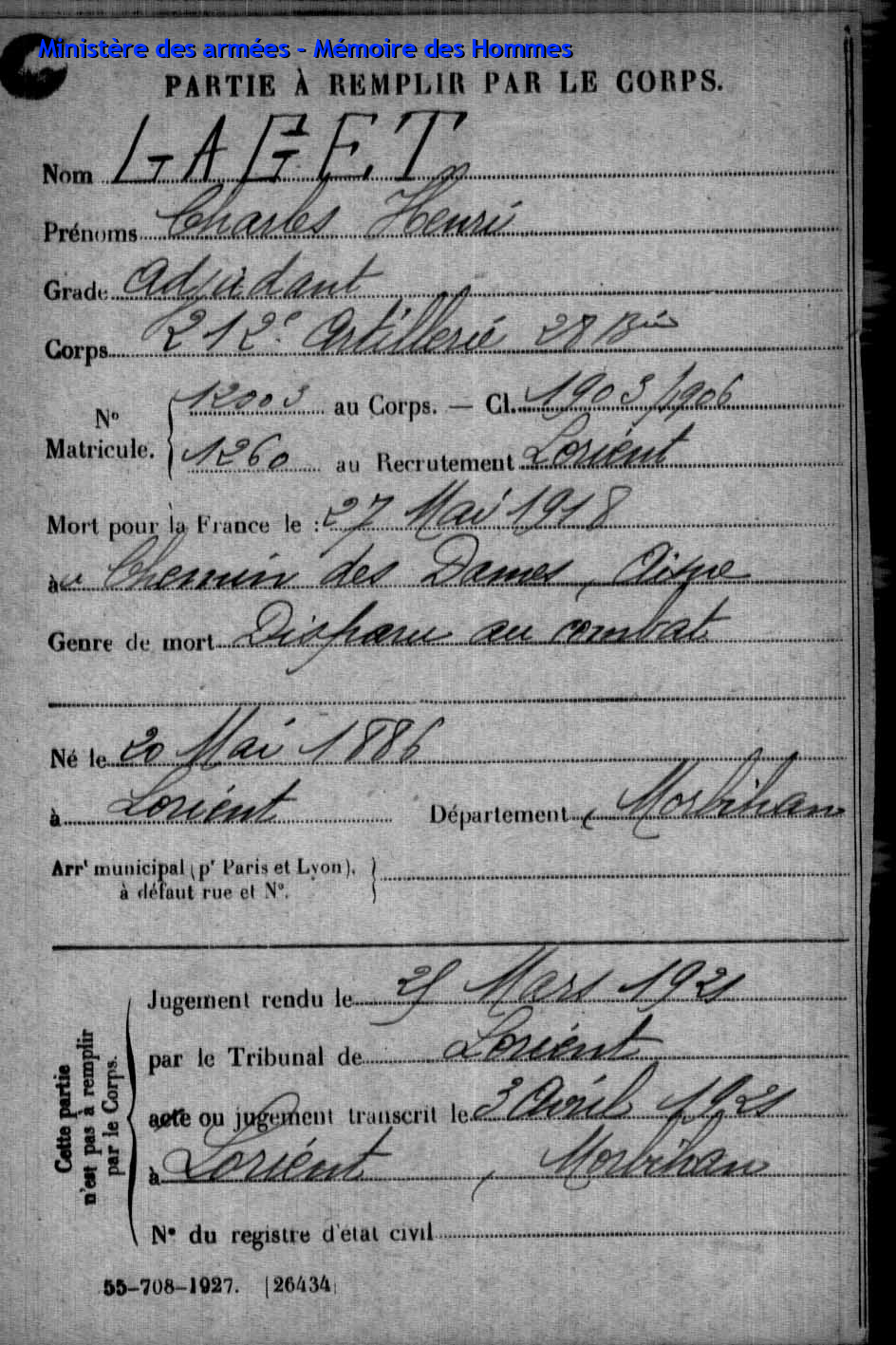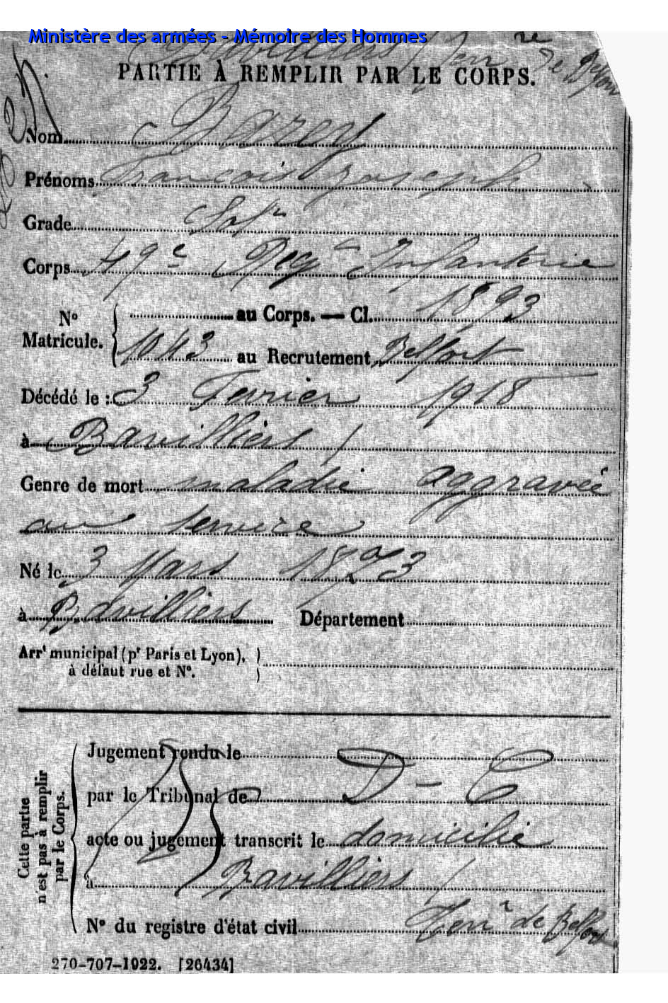 | Aspirant PY Clément Louis Alphonse 14.01.1892 - 10.06.1940 72ème Régiment Régional Verstarb in Belfort (F) |