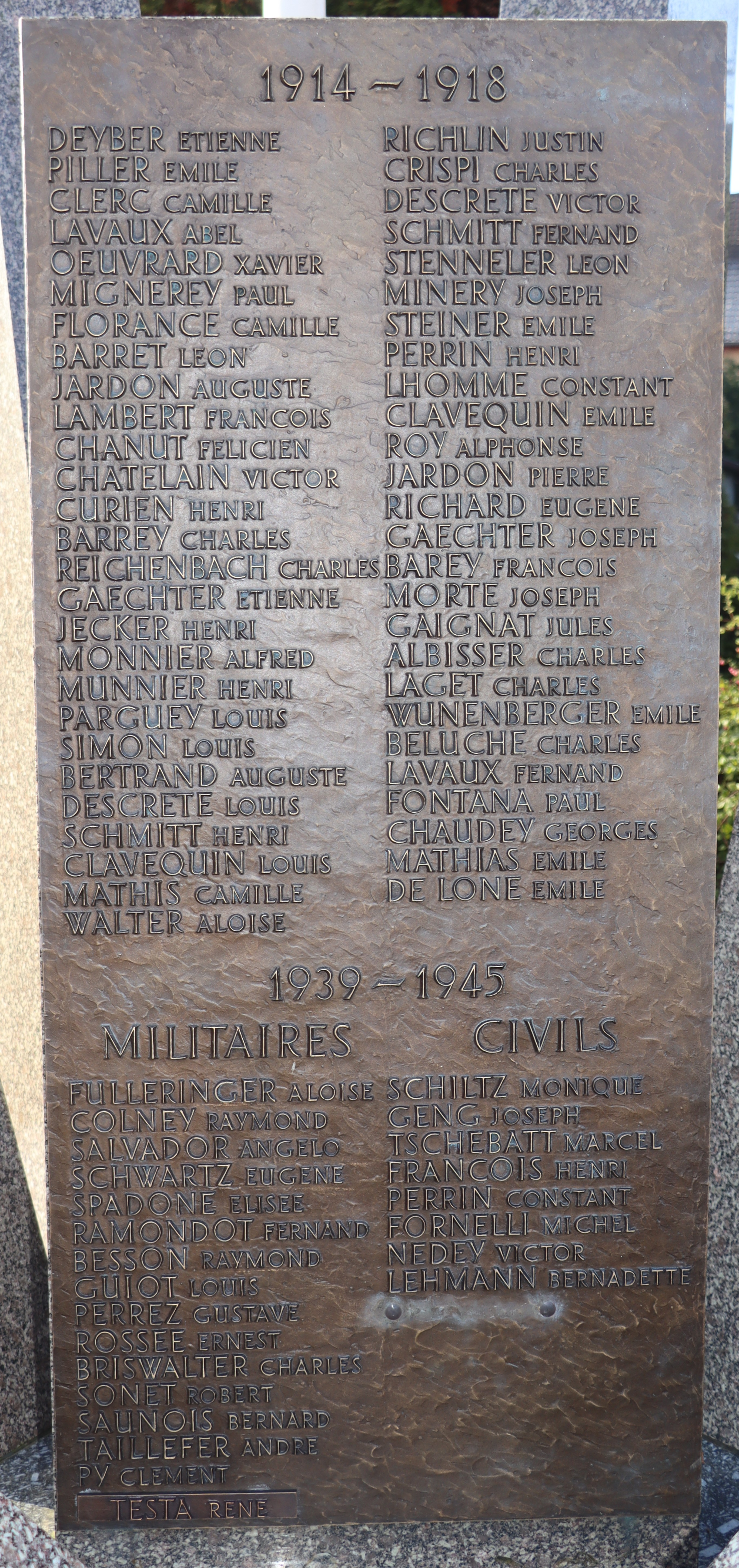 Die 4,80 Km2 grosse Gemeinde mit 4'595 Einwohner im Departement Territoire de Belfort verzeichnet 78 Personen auf dem Kriegerdenkmal, davon sind 34 mit Fabian Coulot verwandt.