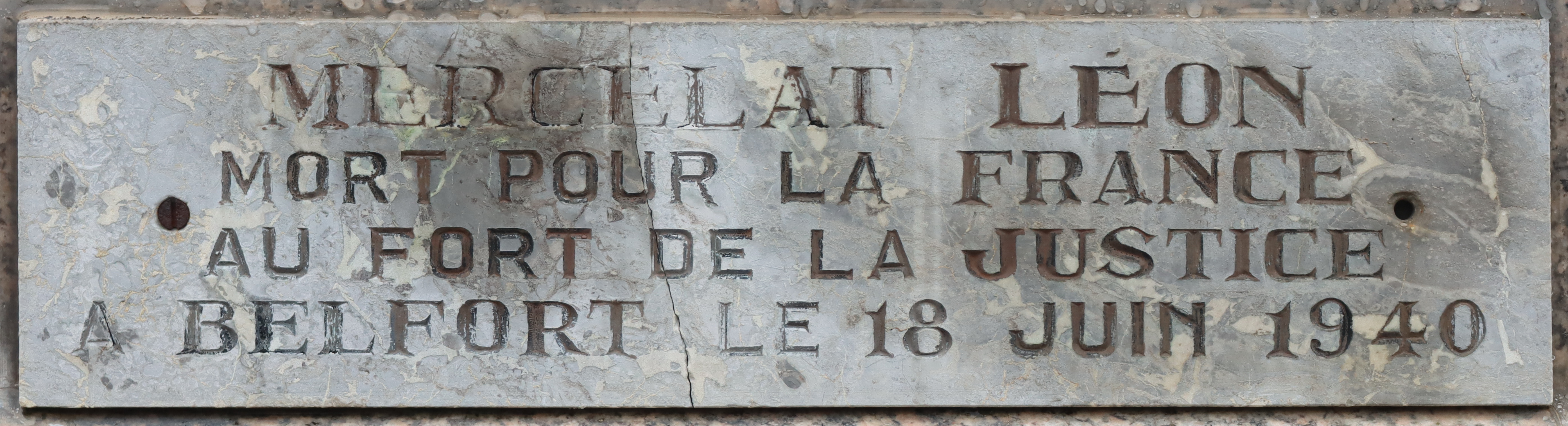 | Pionnier MERCELAT Léon Ernest 08.03.1902 - 18.06.1940 428ème Régiment de Pionniers 5ème Compagnie Gefallen beim Fort de la Justice in Belfort (F) |