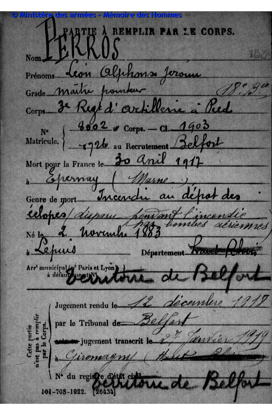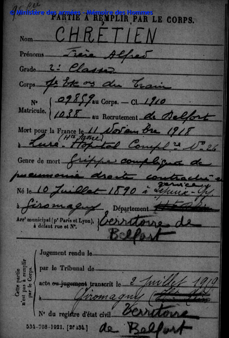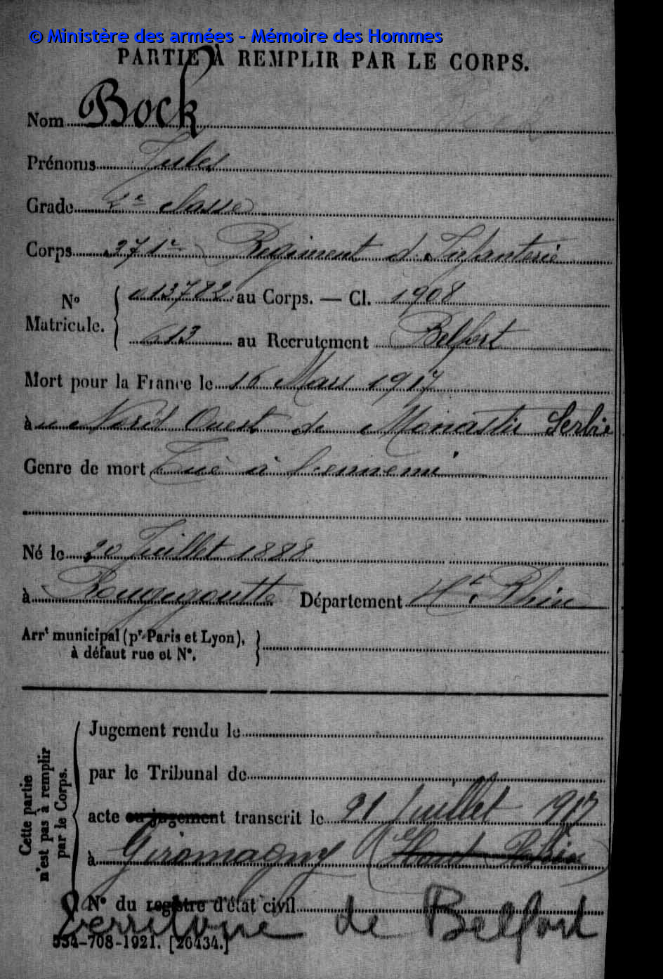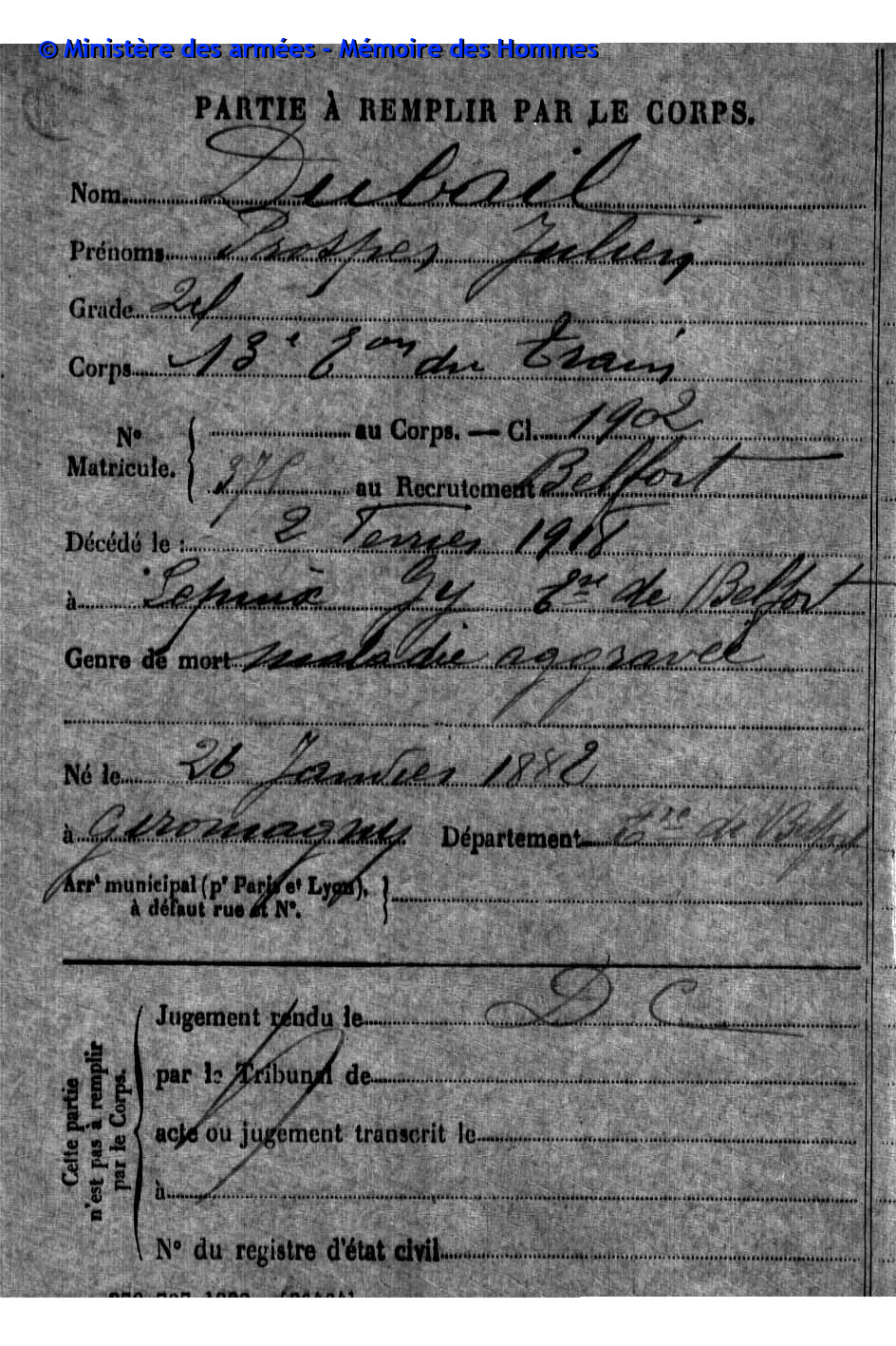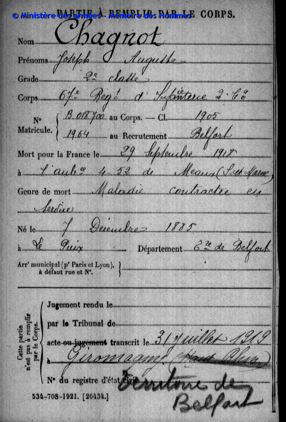 | Soldat EICH Hippolyte Joseph 06.07.1877 - 21.12.1914 49ème Régiment d'Infanterie Verstarb durch Krankheit im Hôpital temporaire in Belfort (F) |