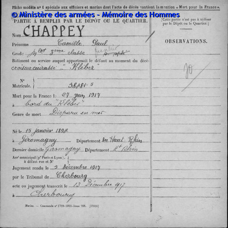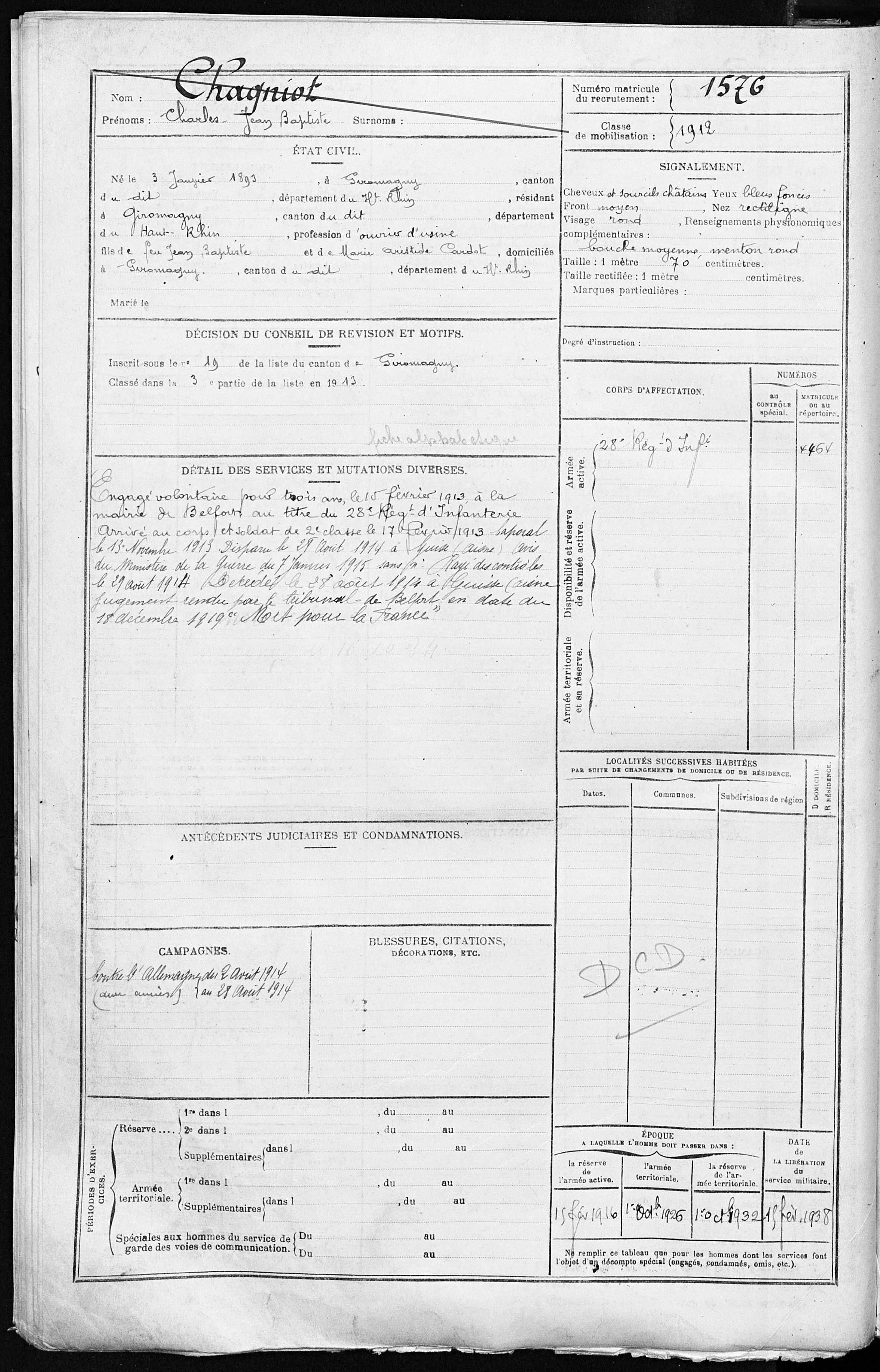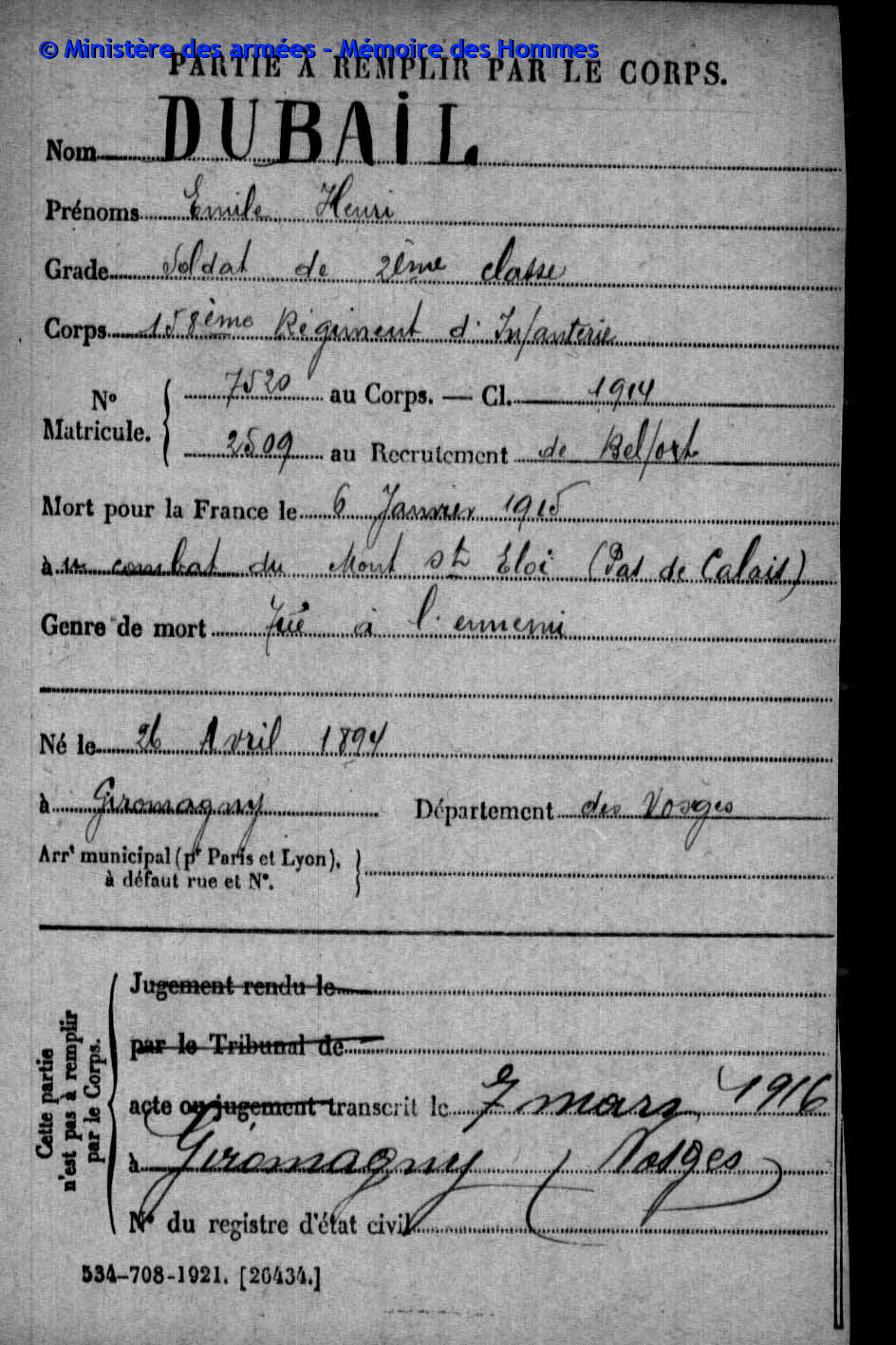 | Sergent GROSBOILLOT Louis 04.03.1882 - 27.02.1915 7ème Bataillon de Chasseurs Alpins 6ème Compagnie Gefallen am Hartmannsweilerkopf im Elsass (F) |
