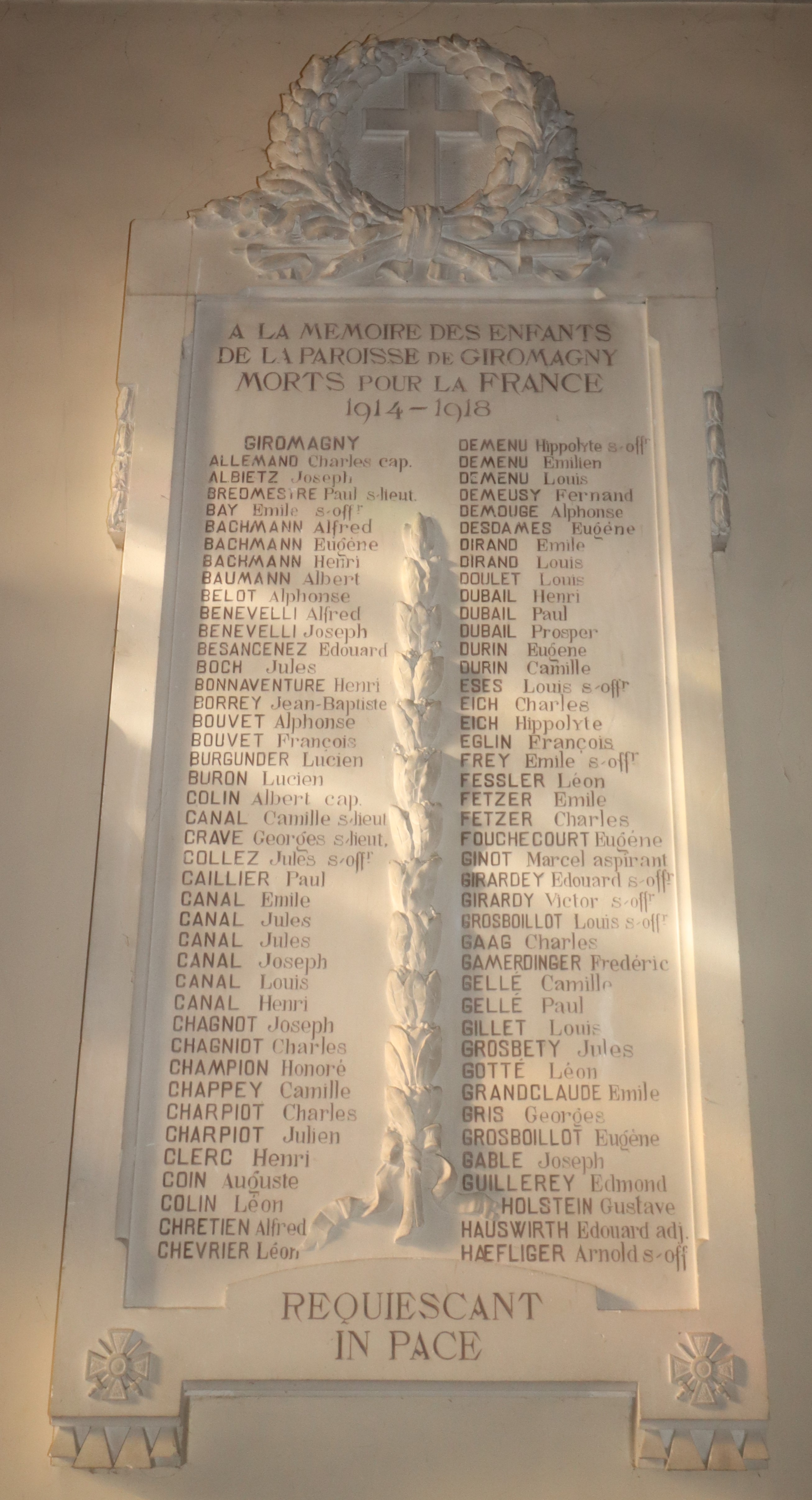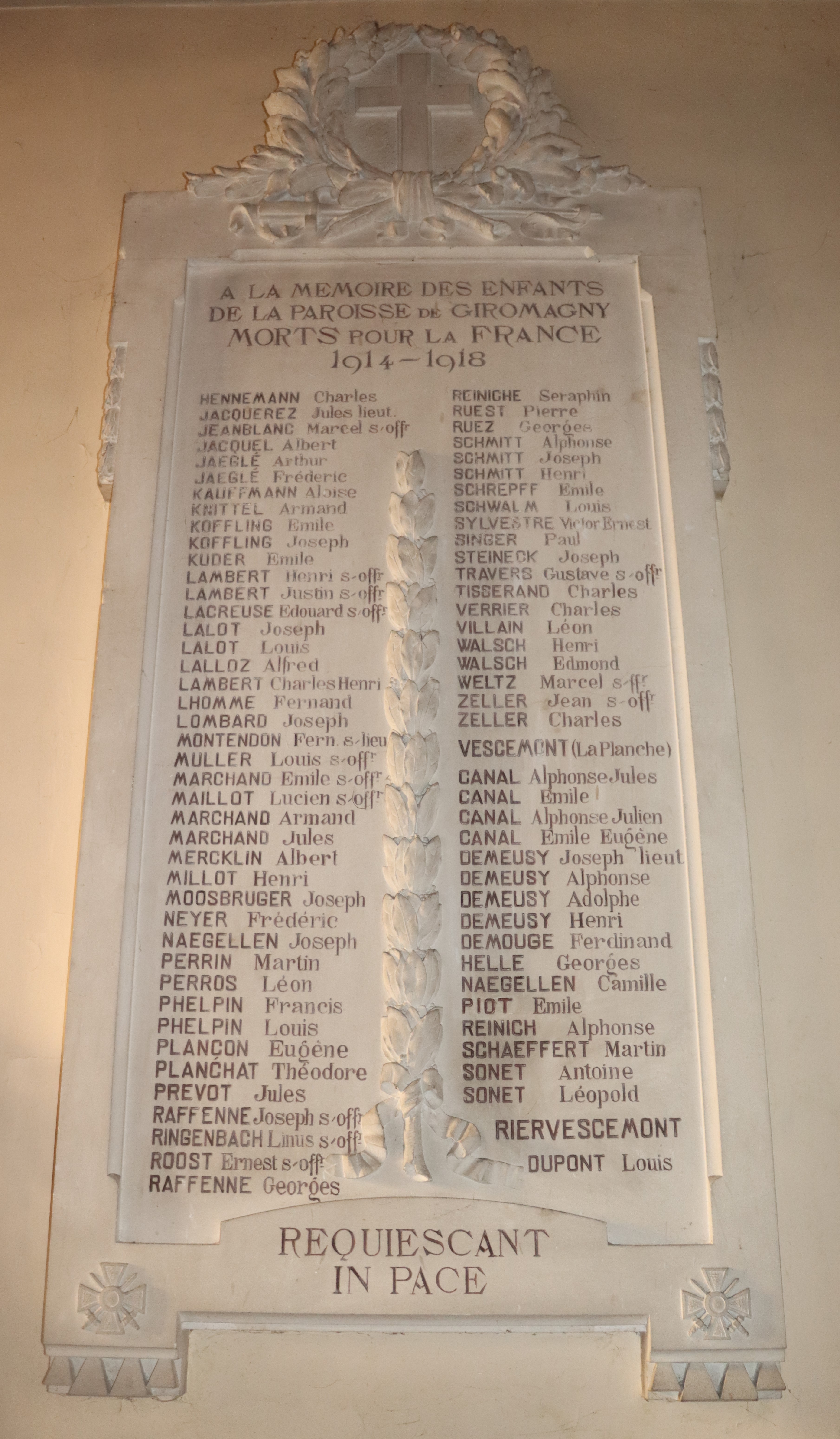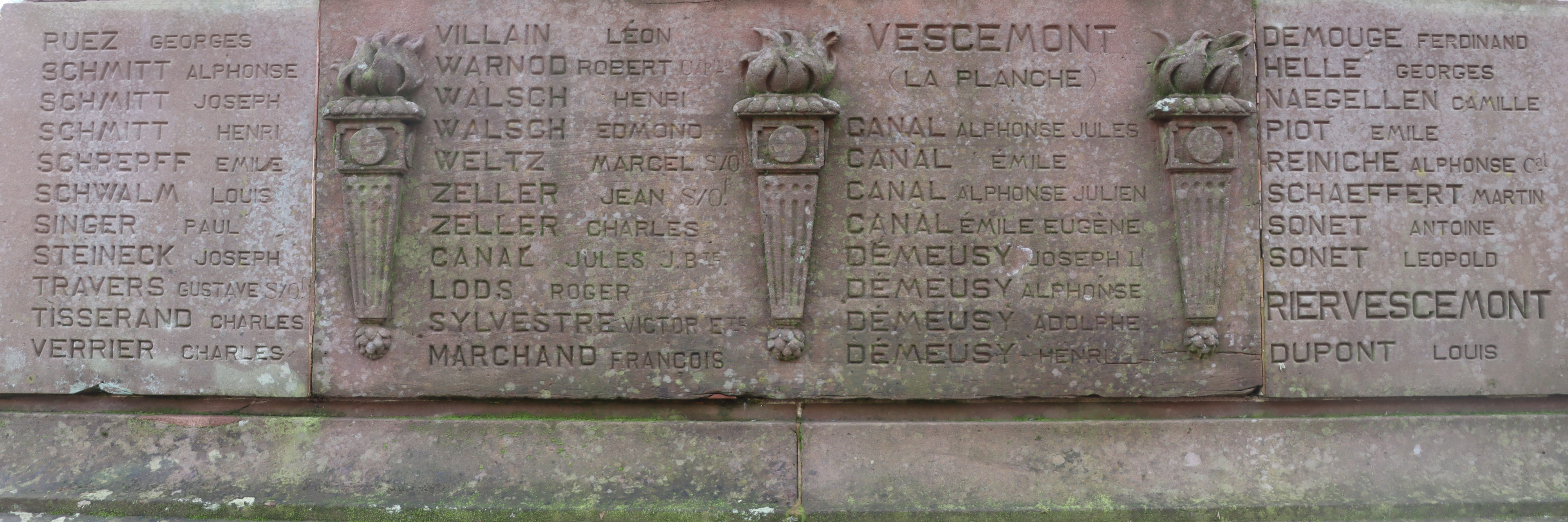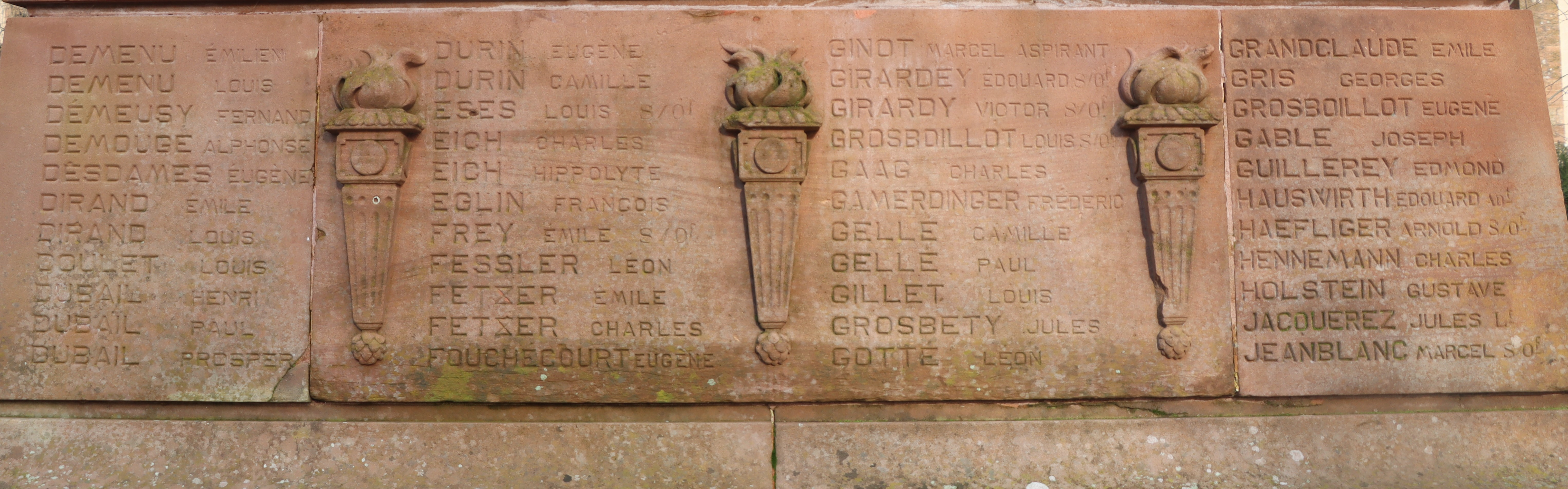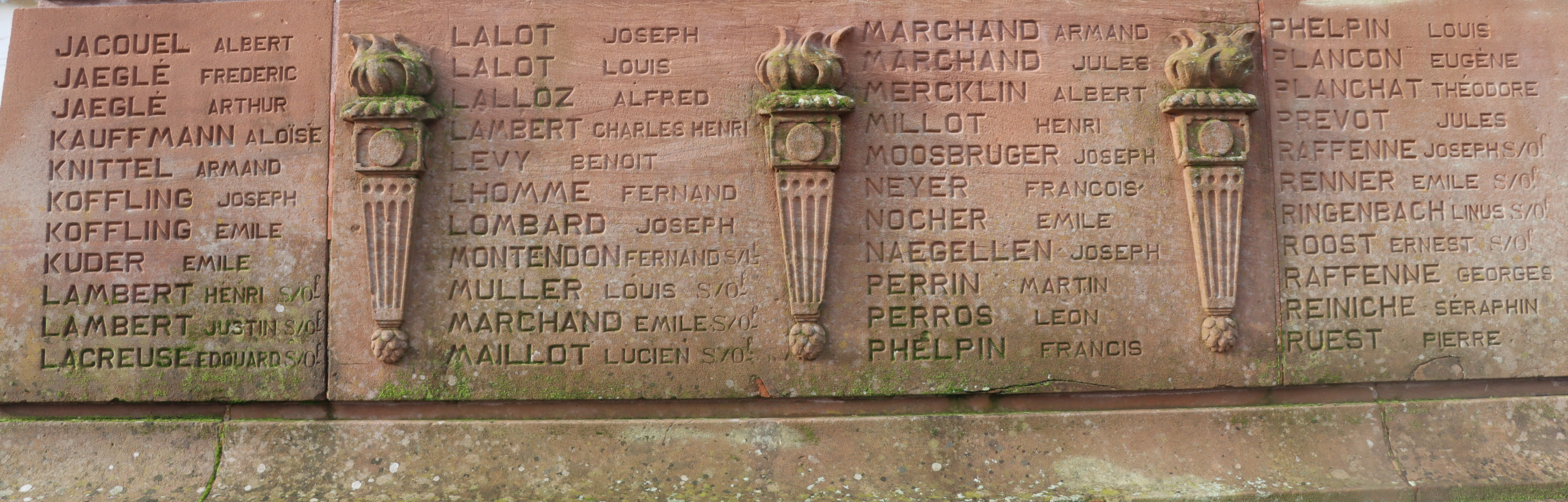 Auf dem grossen Denkmal der Krieges 1914-18 sind 169 aufgelistet, davon sind 129 mit Fabian Coulot verwandt.