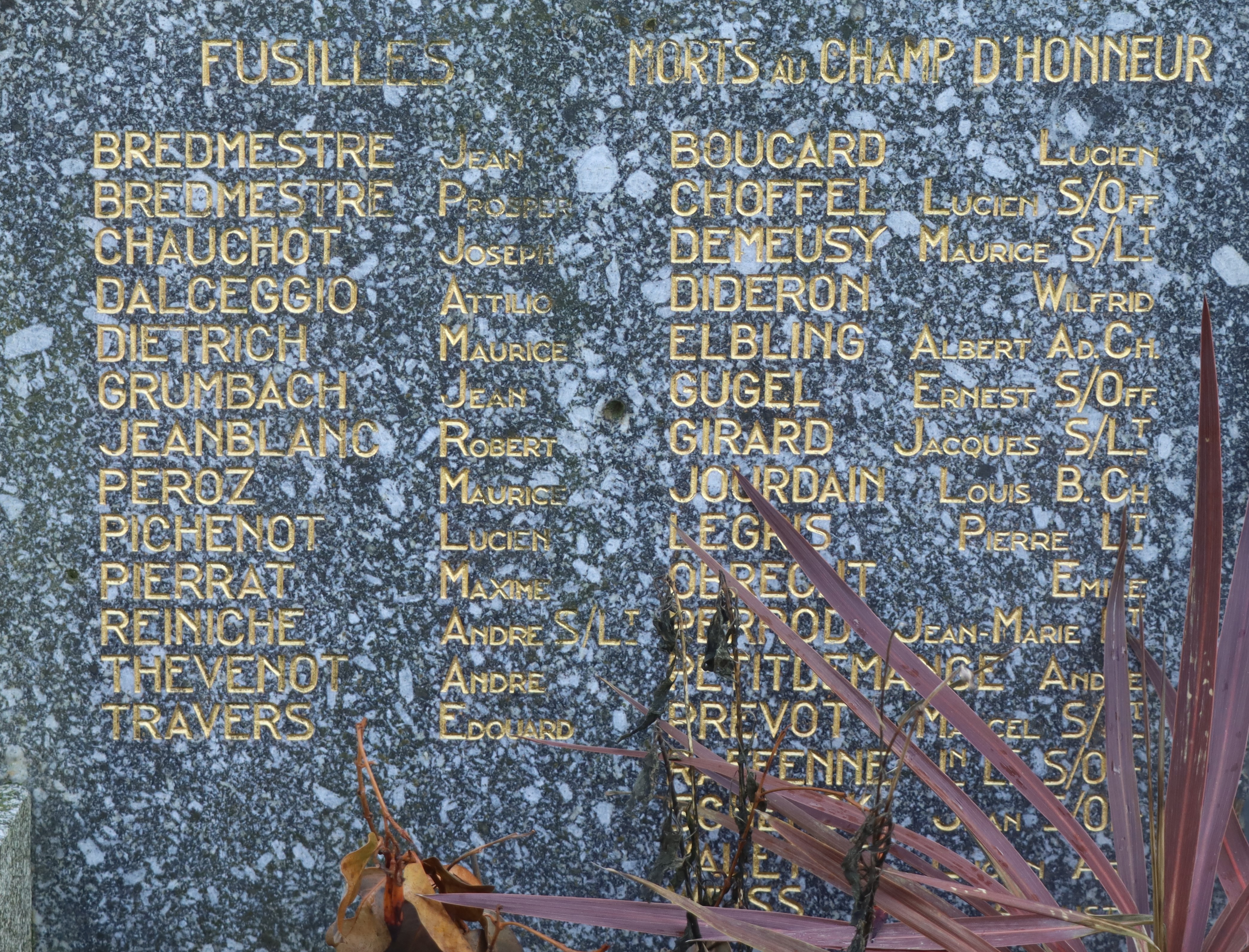 Auf dem Denkmal 1939-1945 stehen 73 Namen, davon sind 25 mit Fabian Coulot verwandt.
