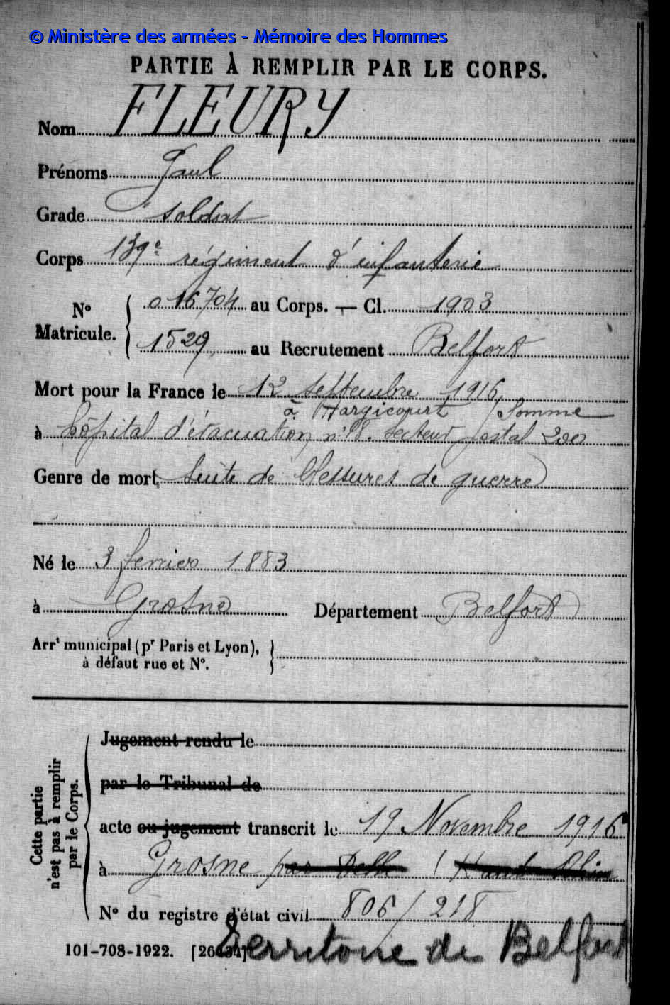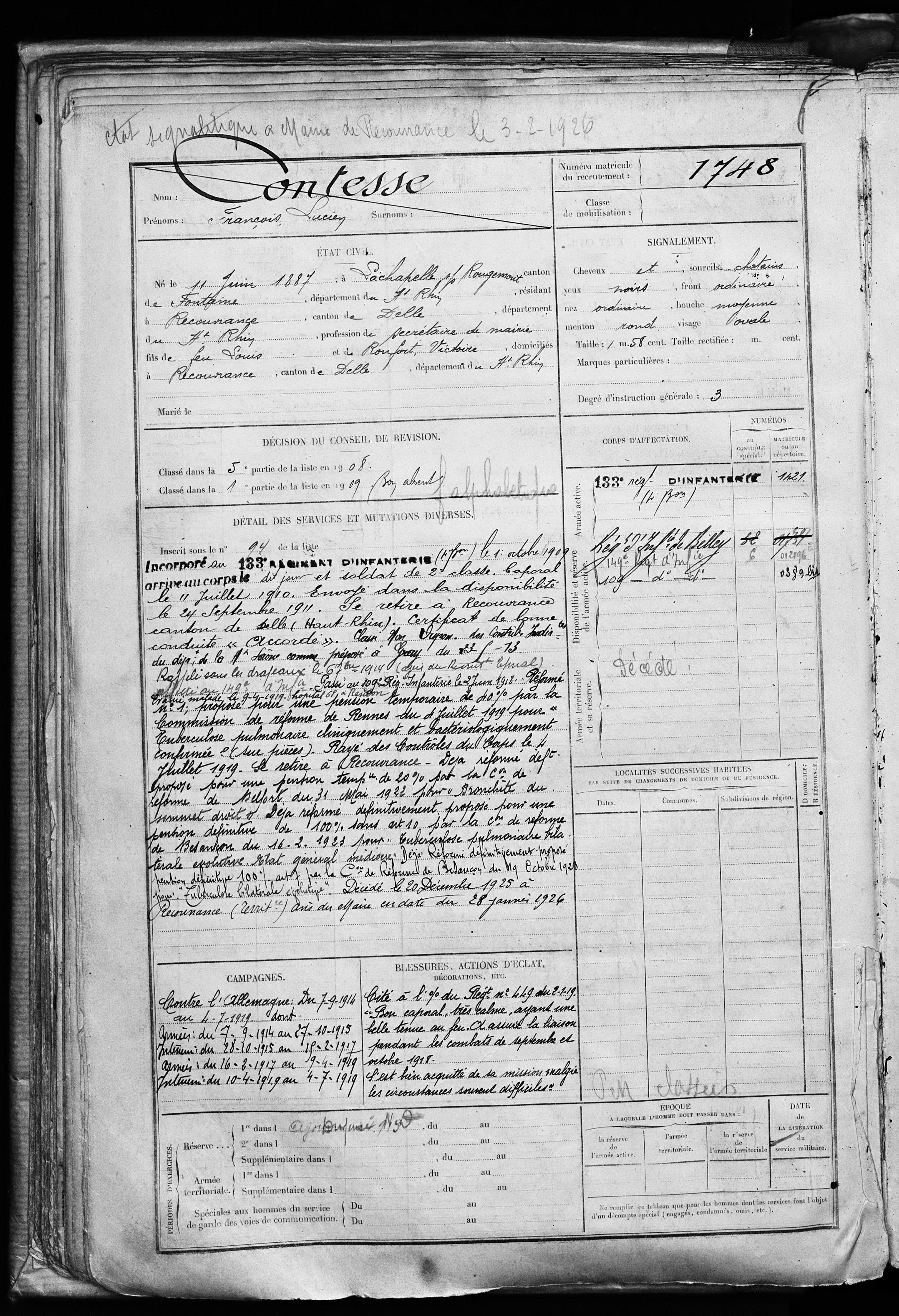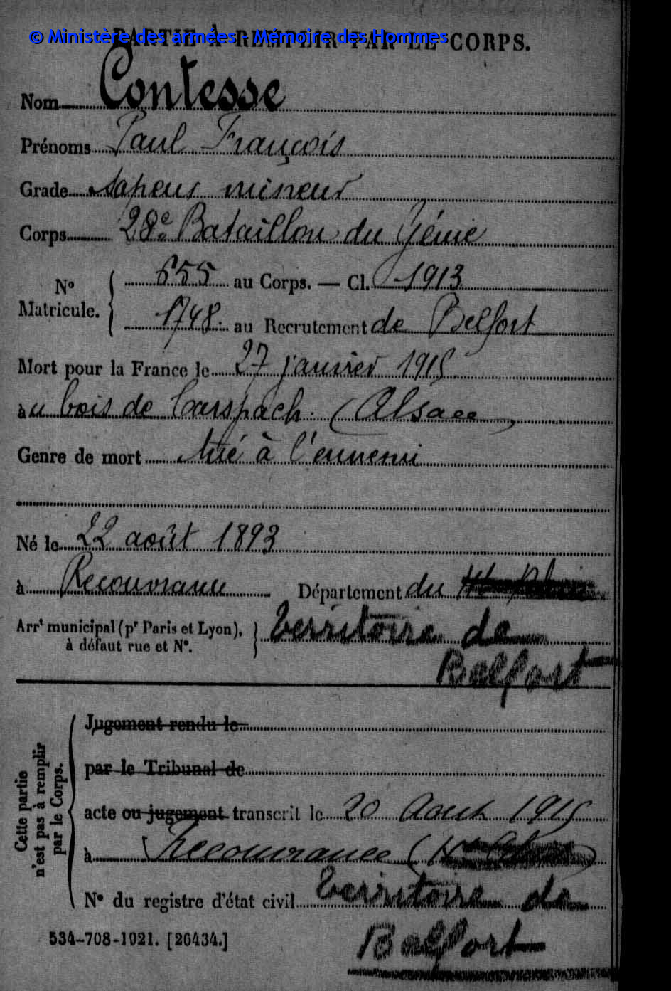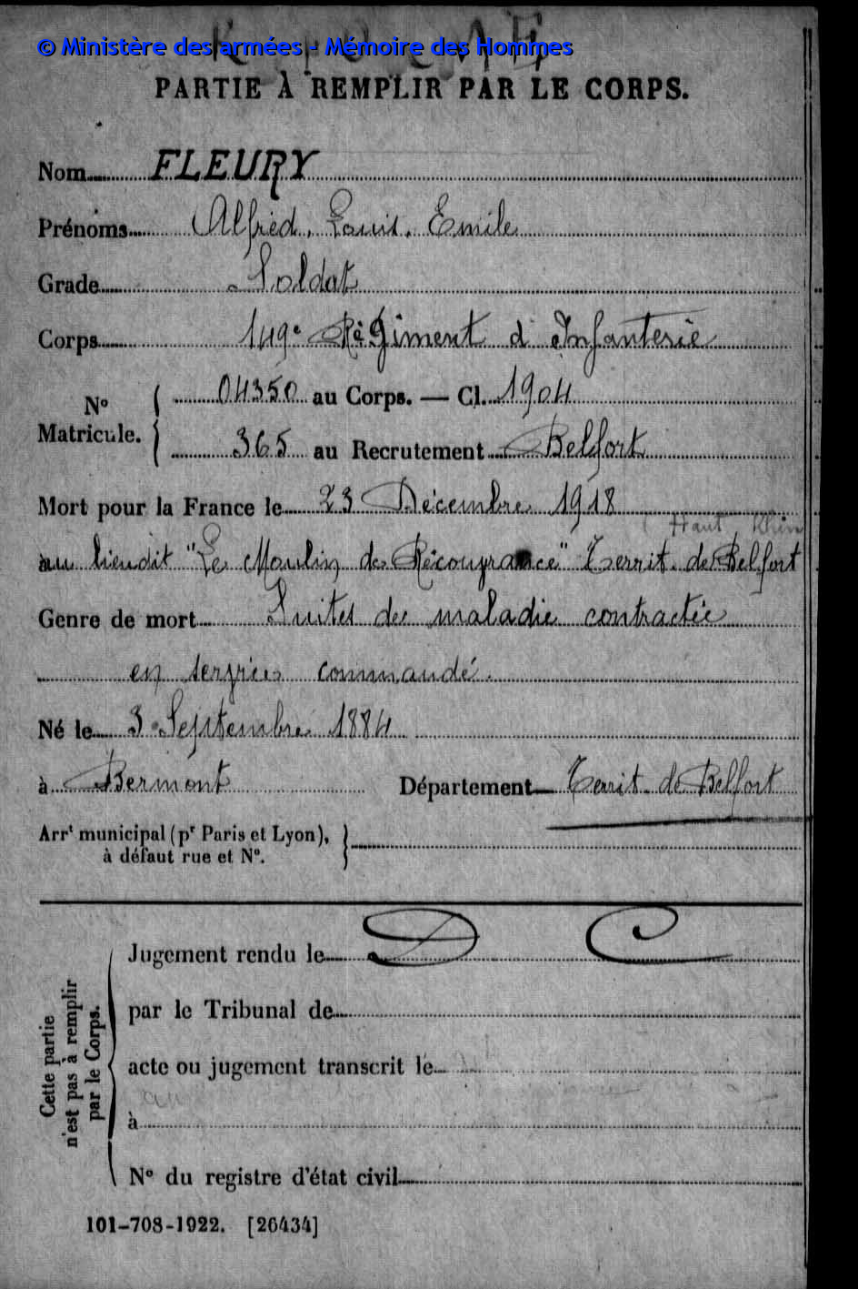 Auf dem Kriegerdenkmal der 3,65 Km2 kleinen Gemeinde mit 331 Einwohner im Departement Territoire de Belfort (F) sind 11 gefallene Soldaten aus dem 1. Weltkrieg und 2 vom Deutsch-Französischen Krieg niedergeschrieben.