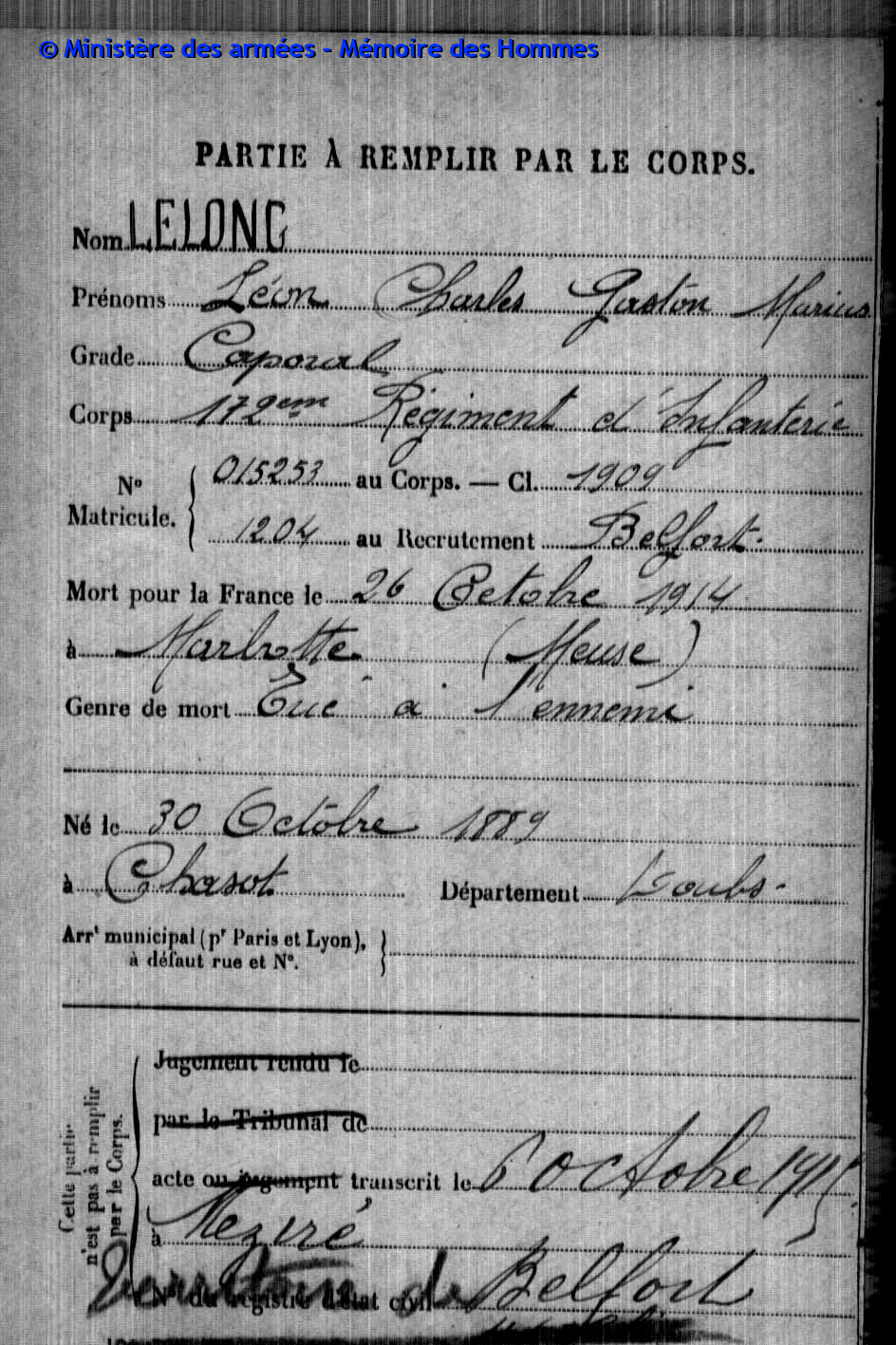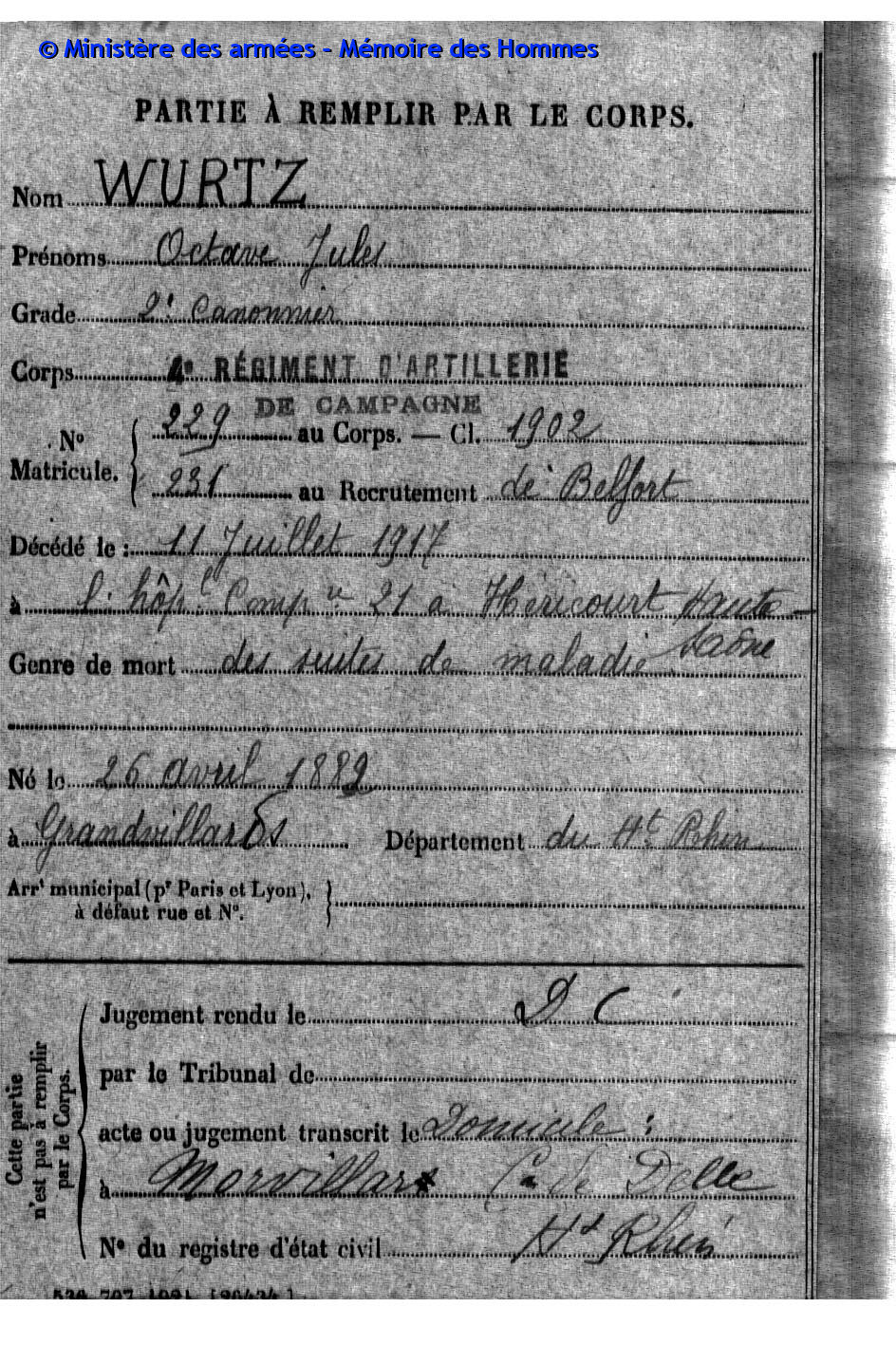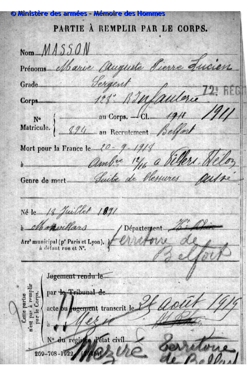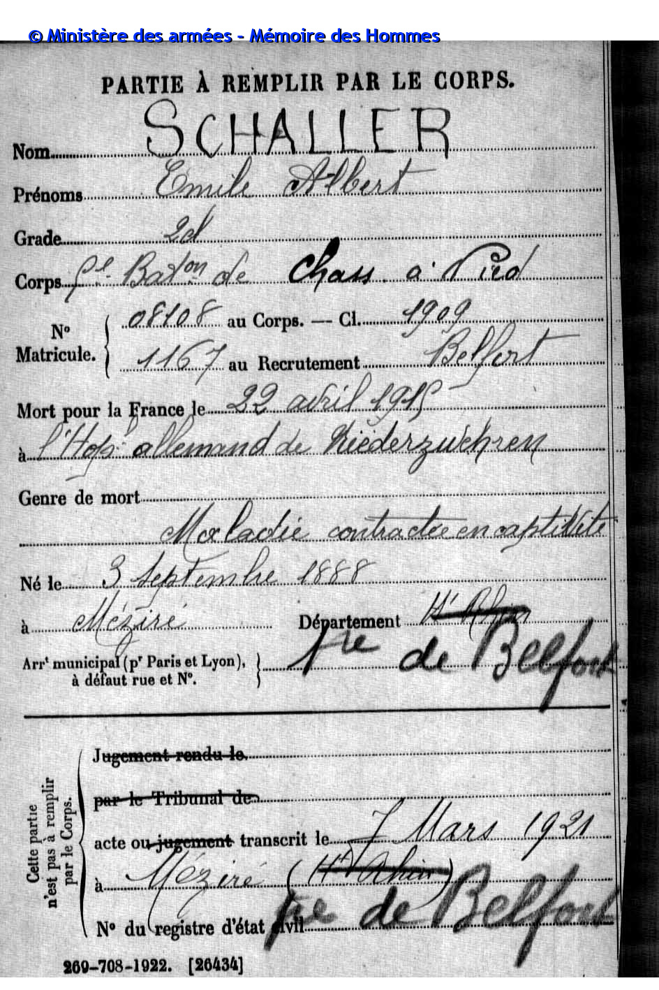| Soldat LAVAL Jules Joseph 19.03.1881 - 04.11.1918 172ème Régiment d'Infanterie Verstarb durch Krankheit im Hôpital complémentaire in Montbéliard (F) |