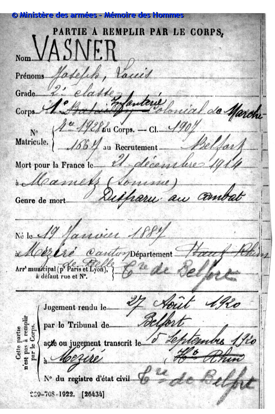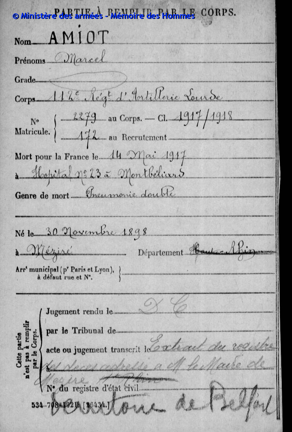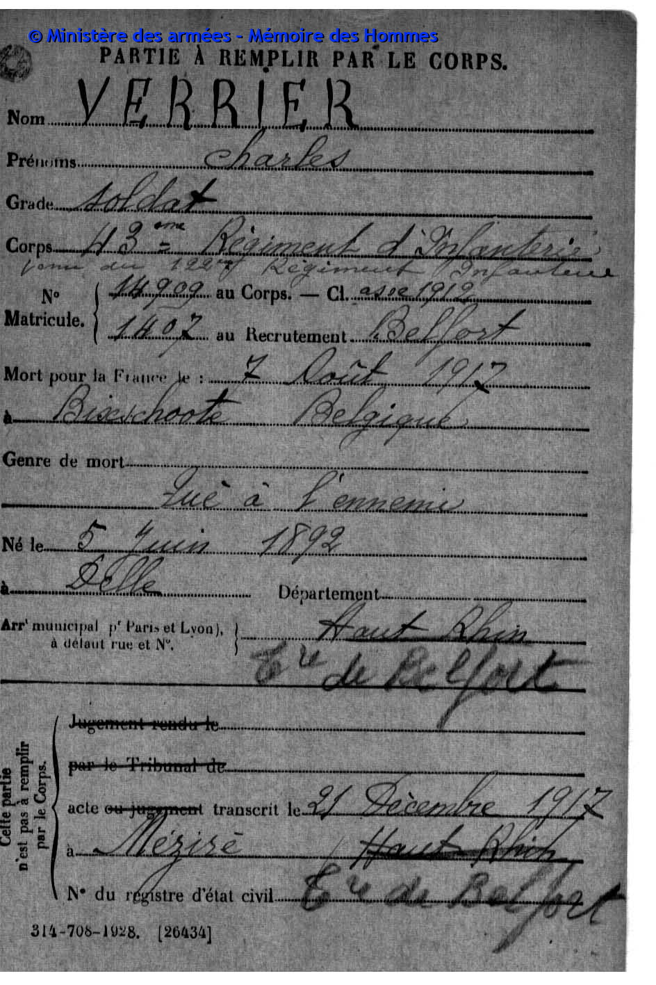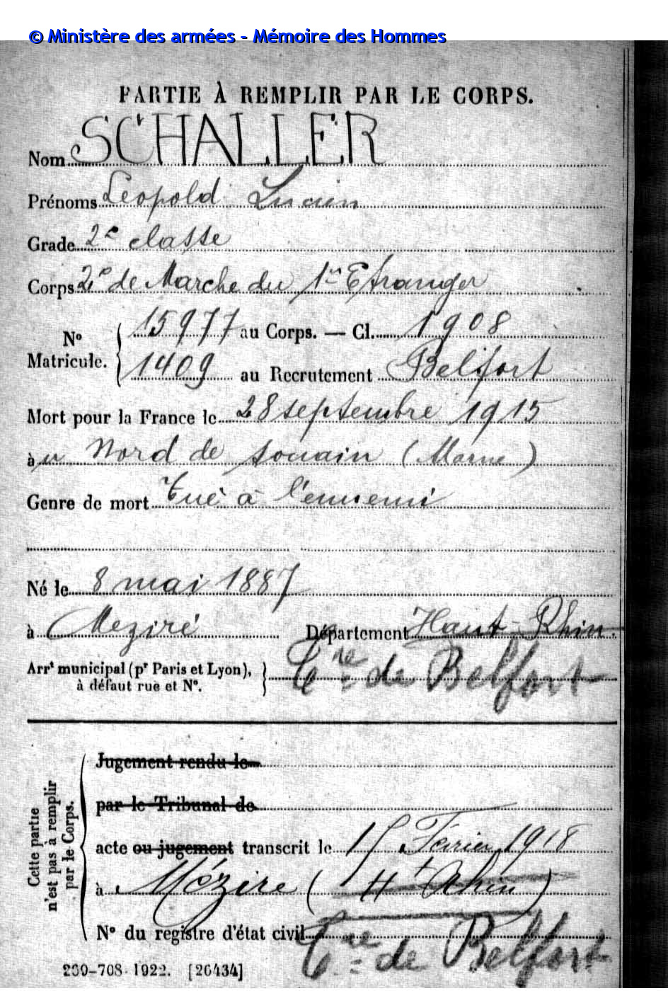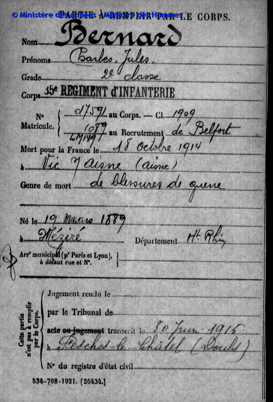 | Soldat LAVAL Jules Joseph 19.03.1881 - 04.11.1918 172ème Régiment d'Infanterie Verstarb durch Krankheit im Hôpital complémentaire in Montbéliard (F) |