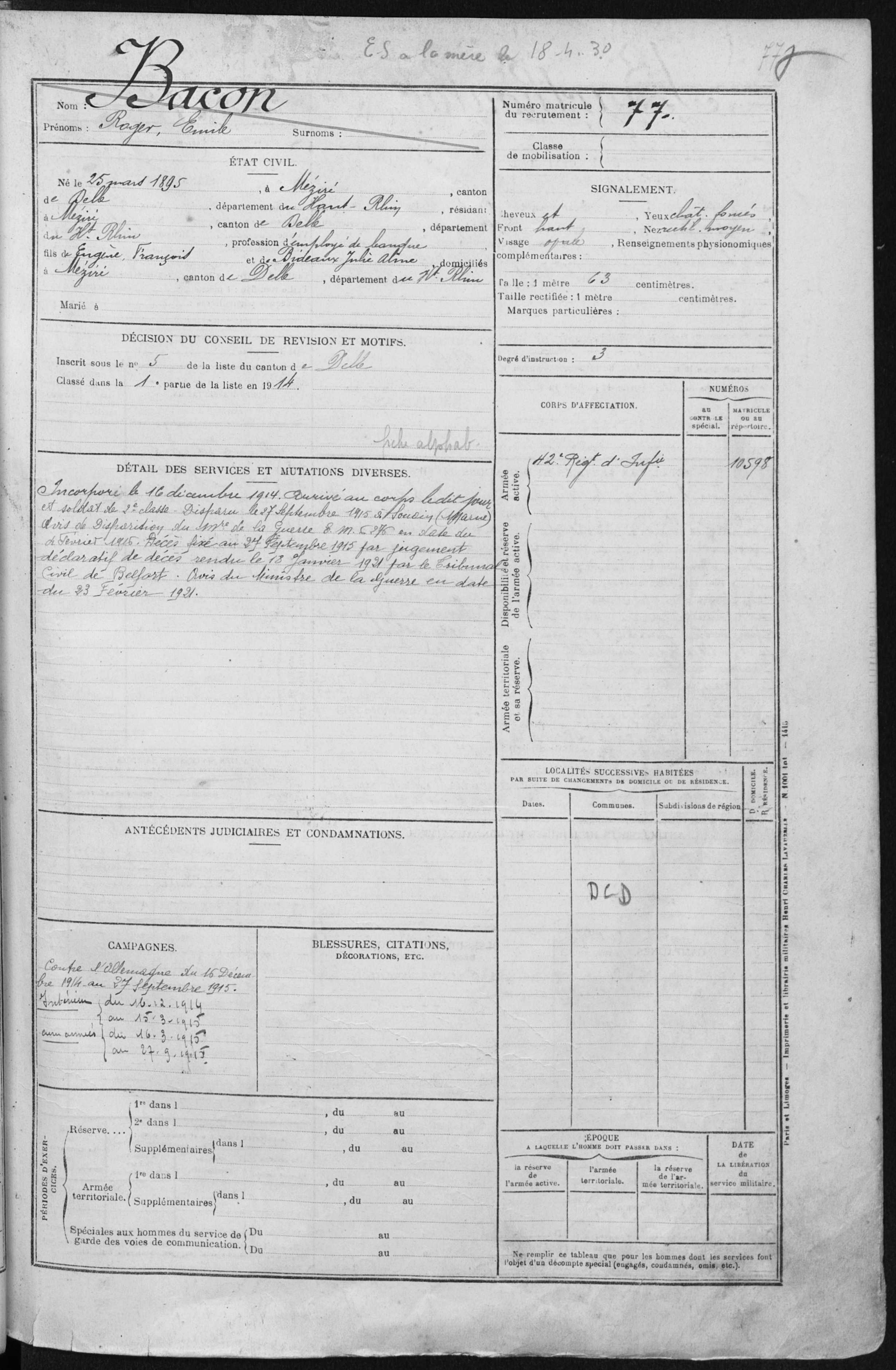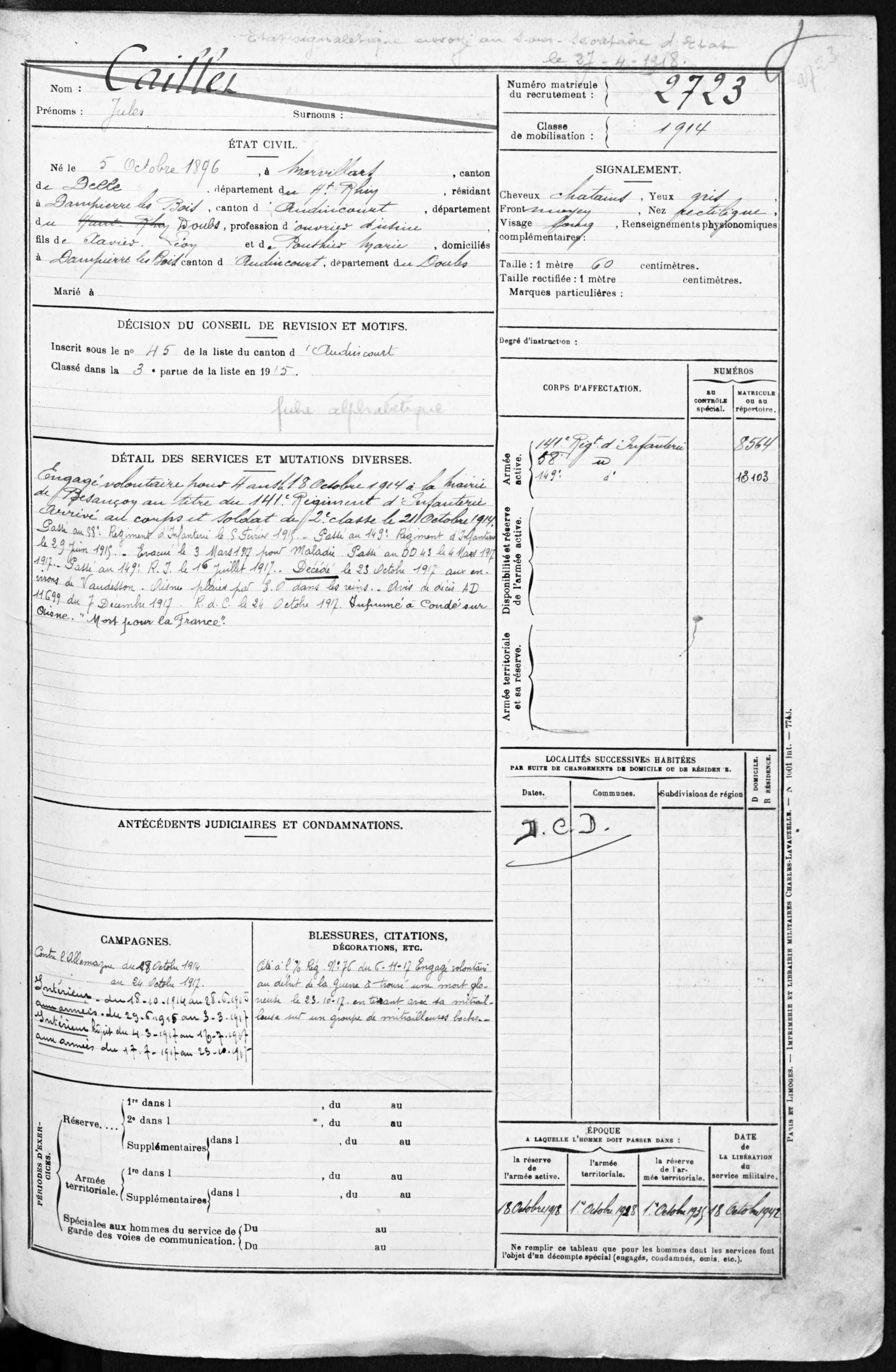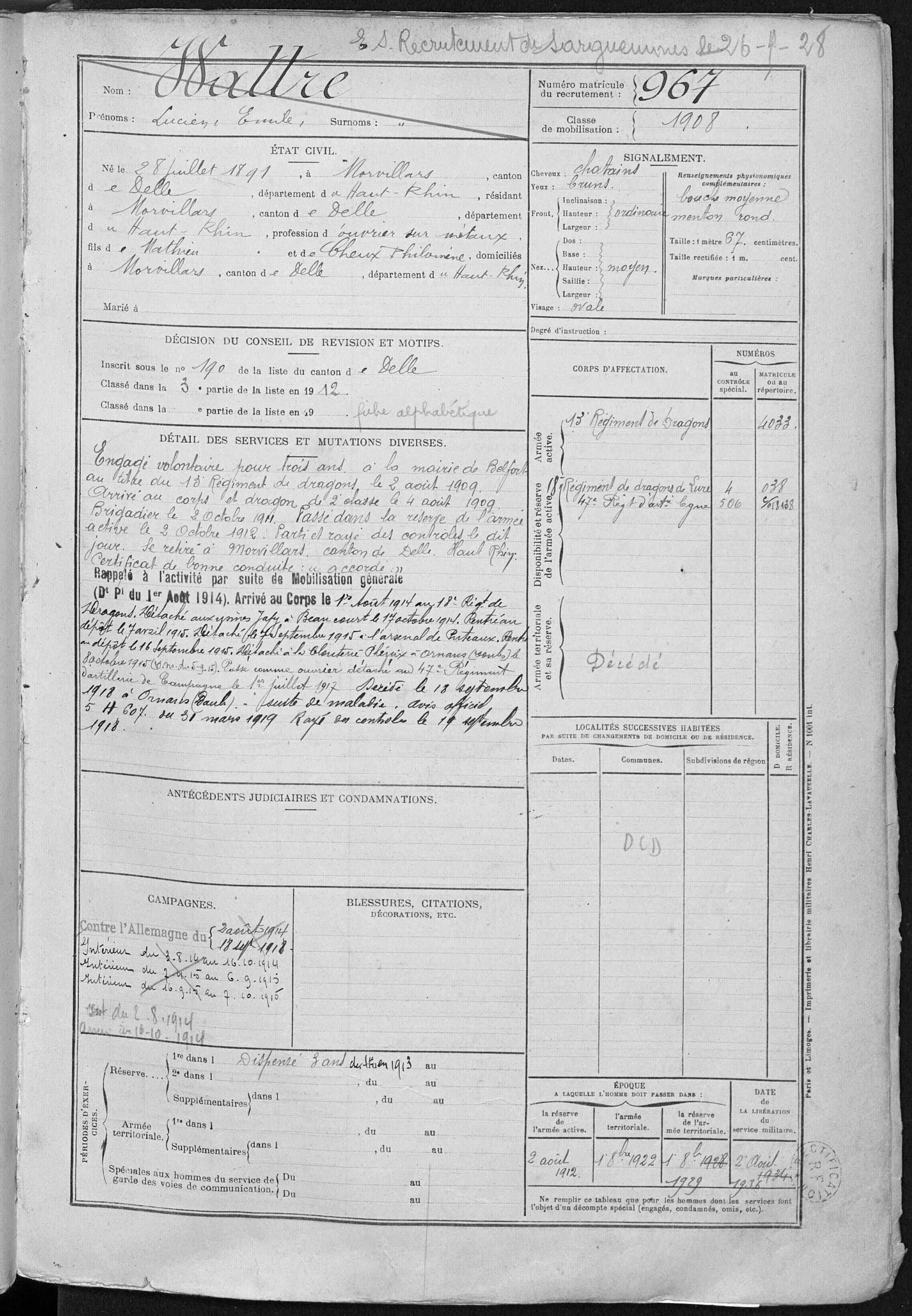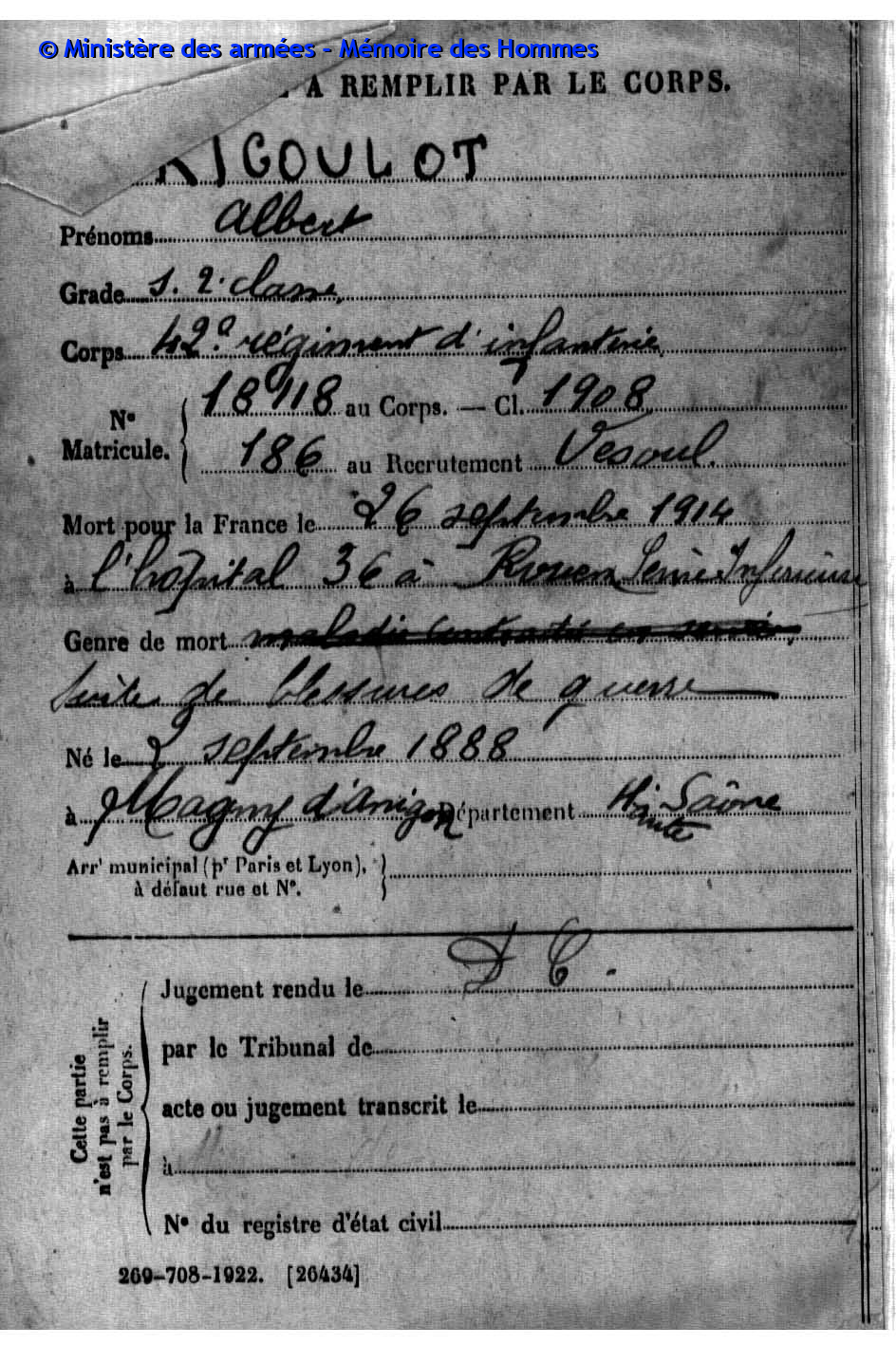 | Marsouin FRANCOIS Louis 27.06.1893 - 29.09.1918 Régiment d'Infanterie Coloniale du Maroc Gefallen in Gratreuil - Marne (F) |