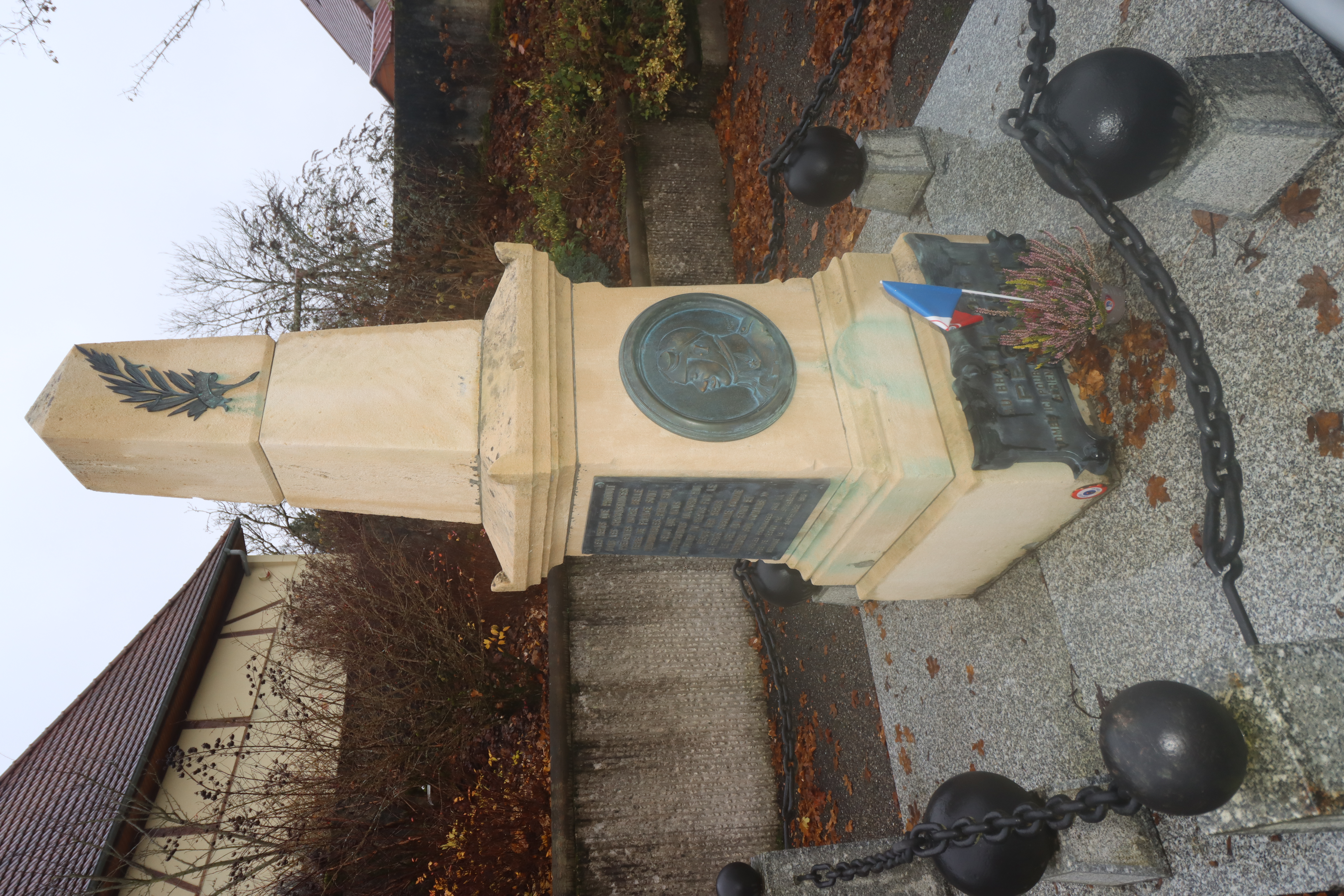 einen Kranz abgeworfen mit dem Schriftzug: