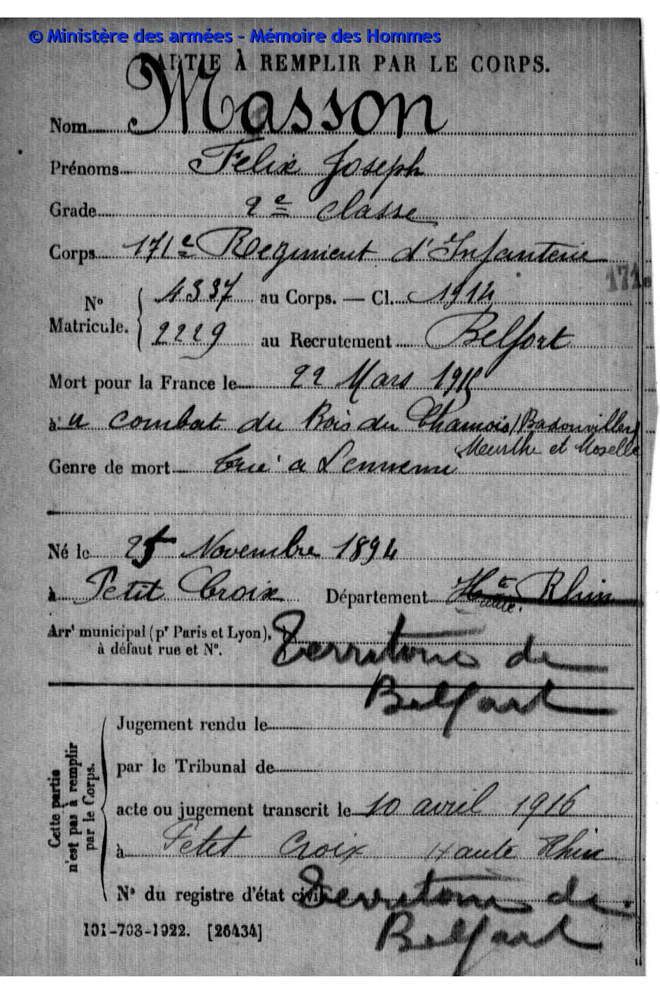 er am 06.09.1915 nochmals über Petit-Croix