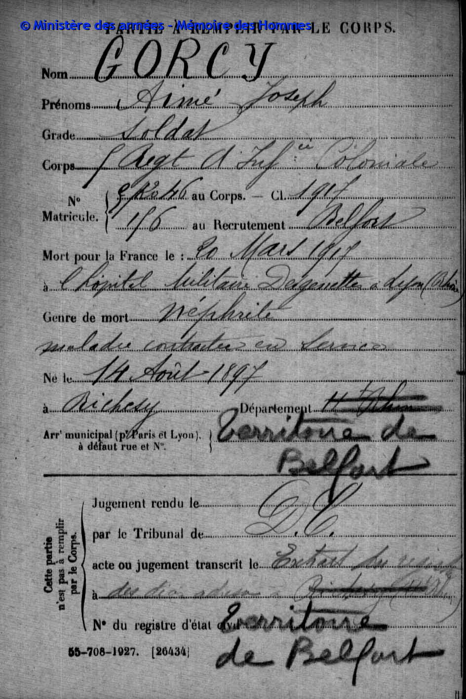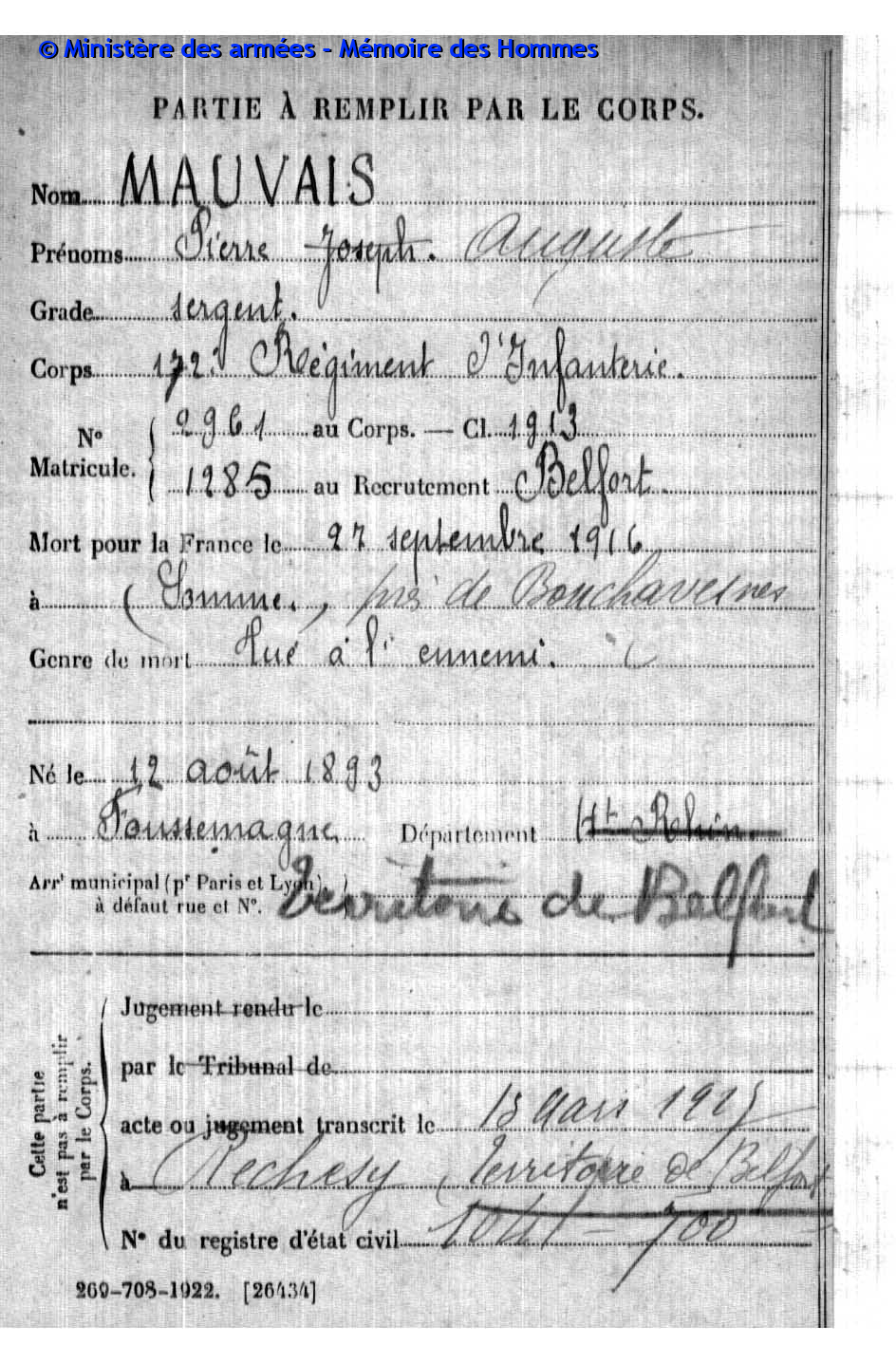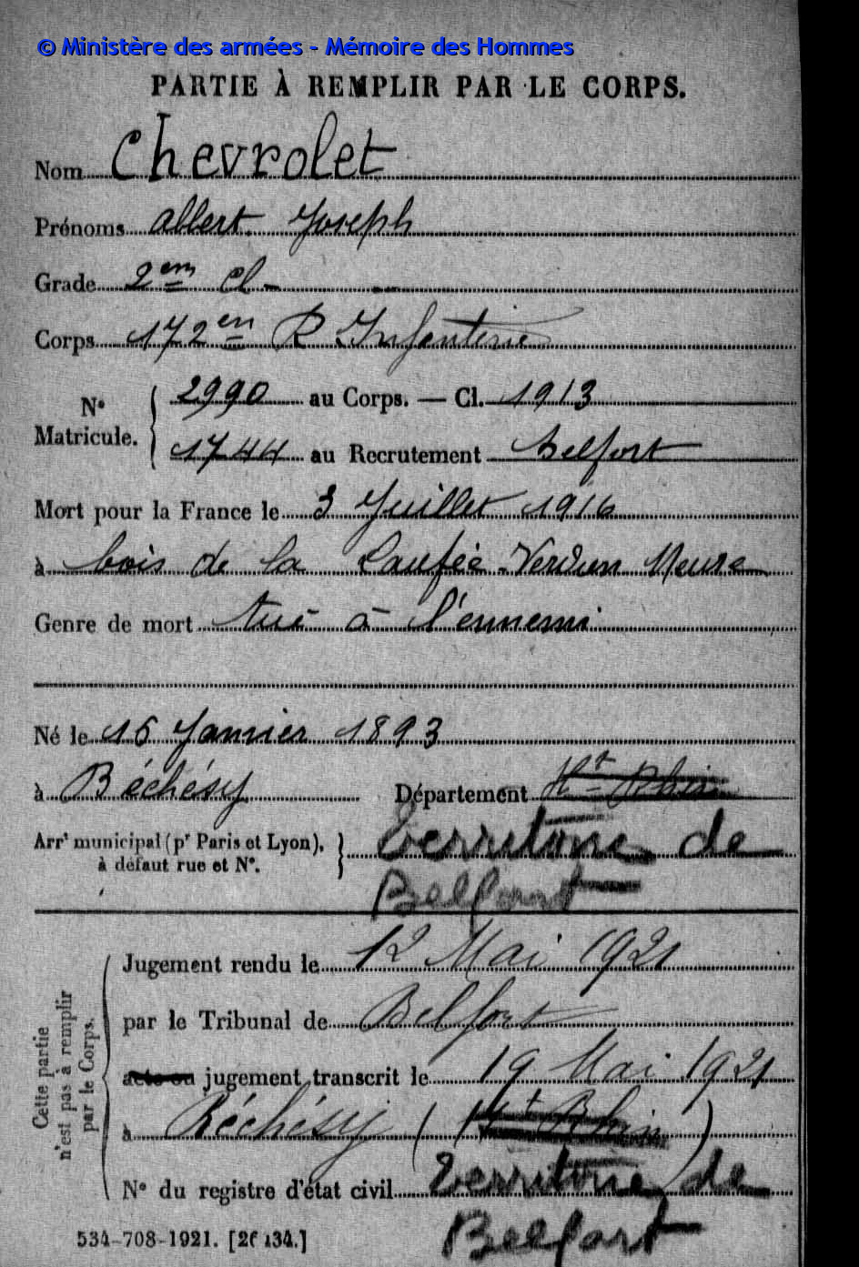 2ème classe CHEVROLET Albert Joseph 172ème Régiment d'Infanterie Gefallen in Damloup - Meuse (F) |