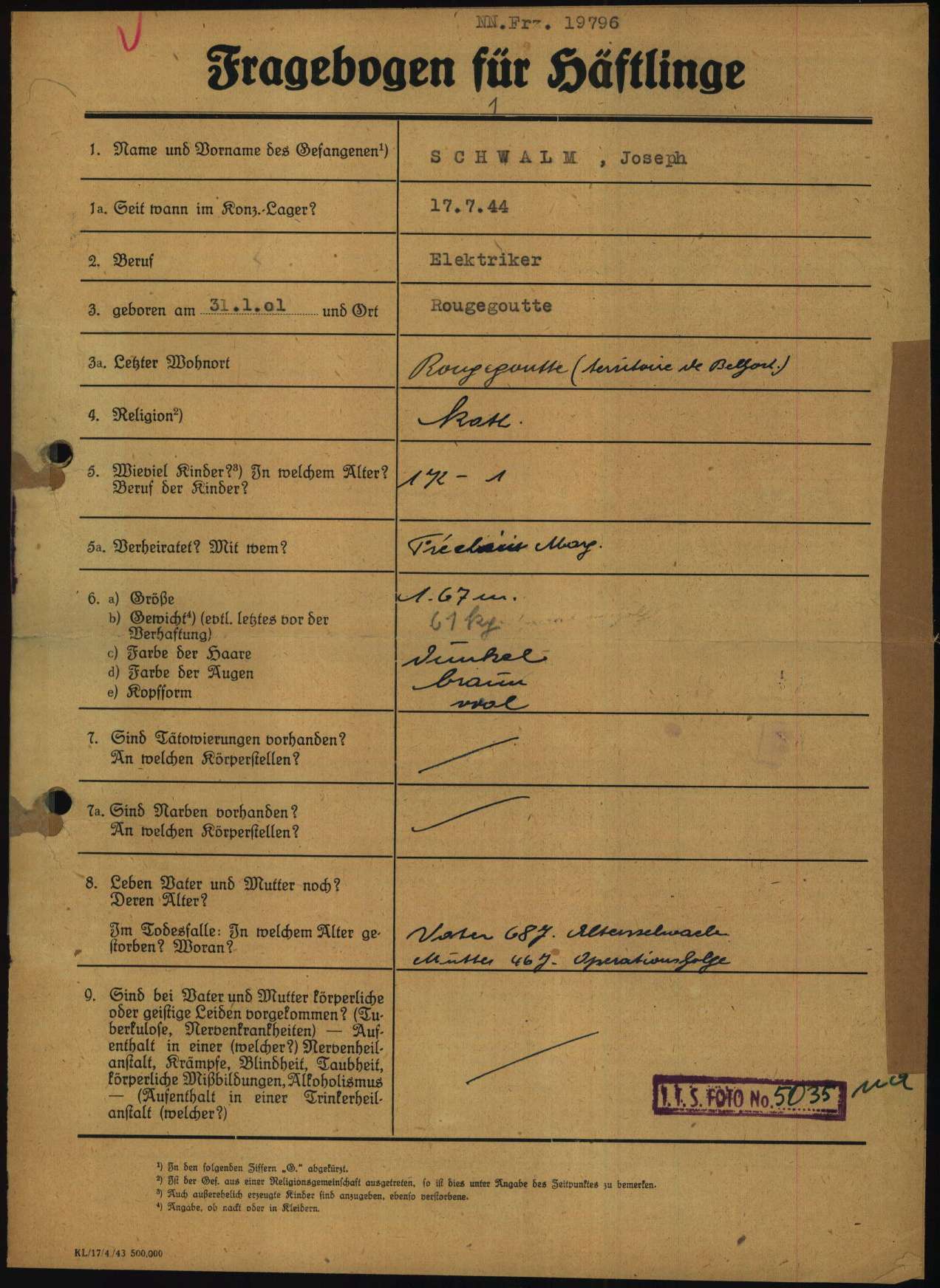 | Soldat MARCHAL Paul Louis 03.06.1908 - 09.06.1940 35ème Régiment d'Infanterie Gefallen in Frankreich (Keine näheren Informationen bekannt) |
