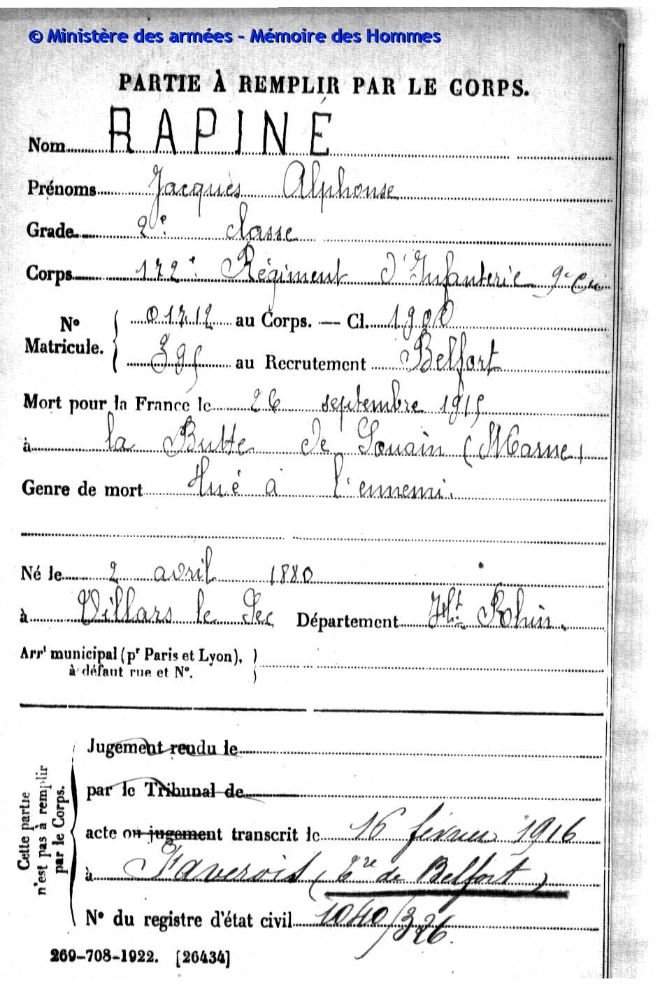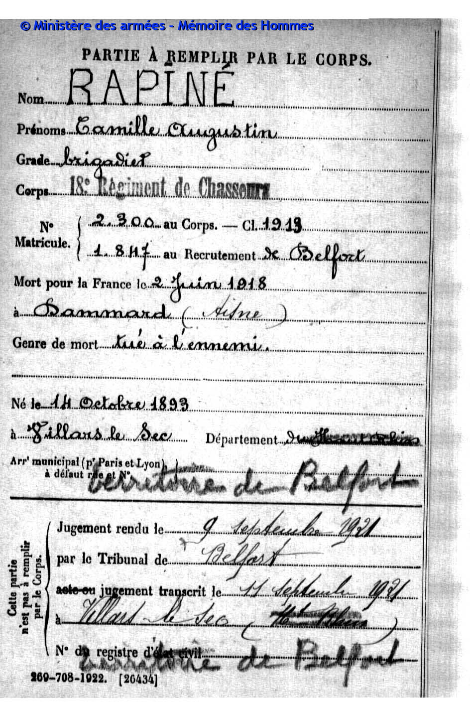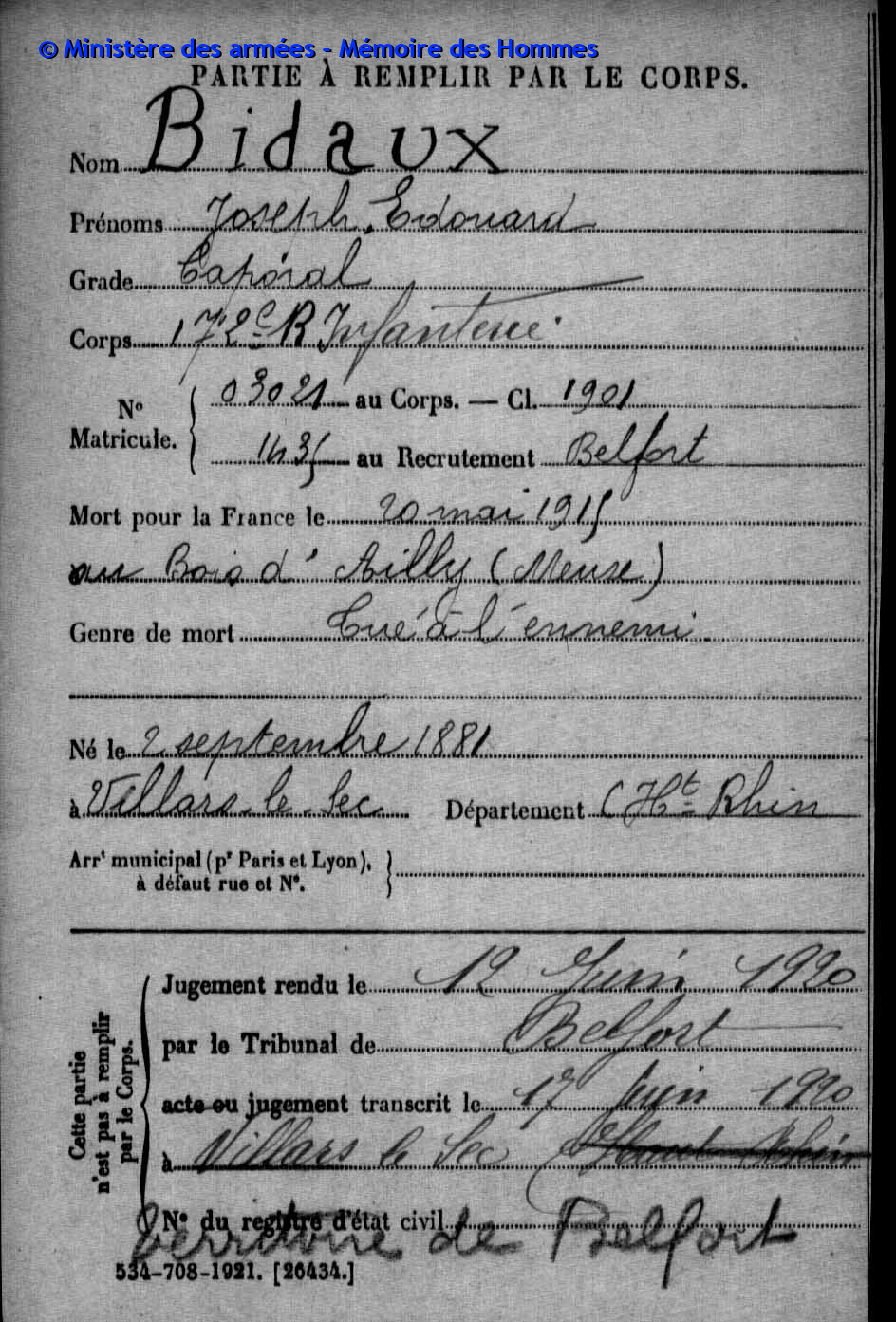 Einwohner im Departement Territoire de Belfort (F) sind 4 Namen von Kriegsopfer
