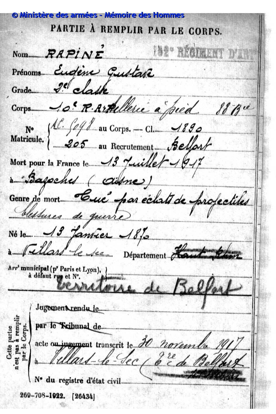 Verstarb an seinen Wunden in Bazoches - Aisne