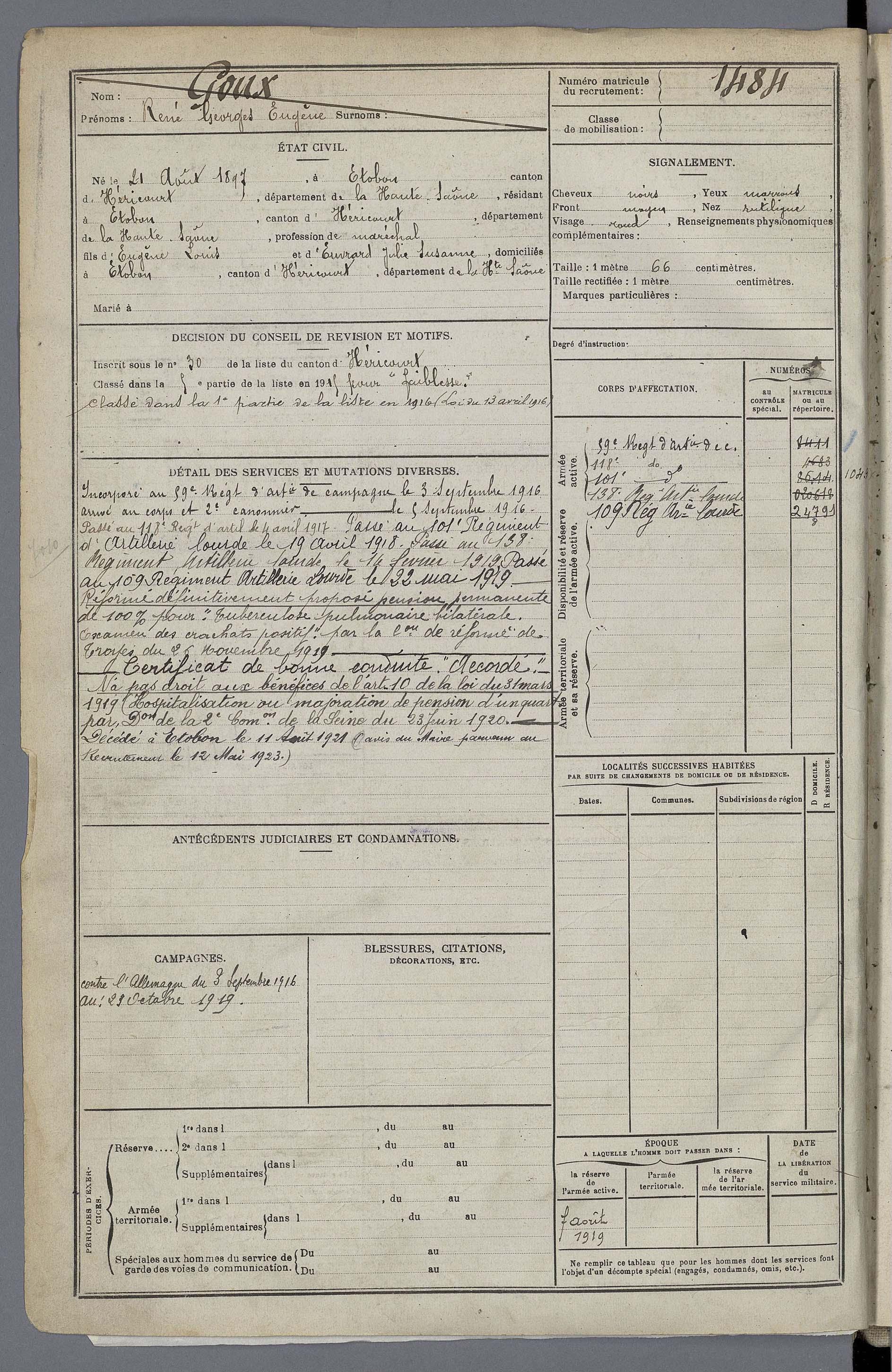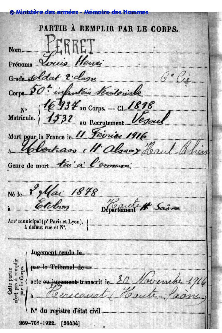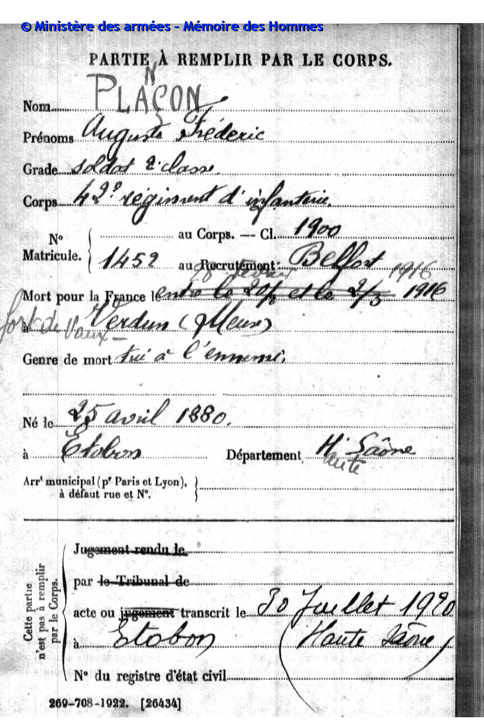 | Soldat GOUX Jules 30.11.1876 - 07.06.1922 42ème Régiment d'Infanterie Verstarb an Kriegsfolgen zu Hause in Etobon (F) |