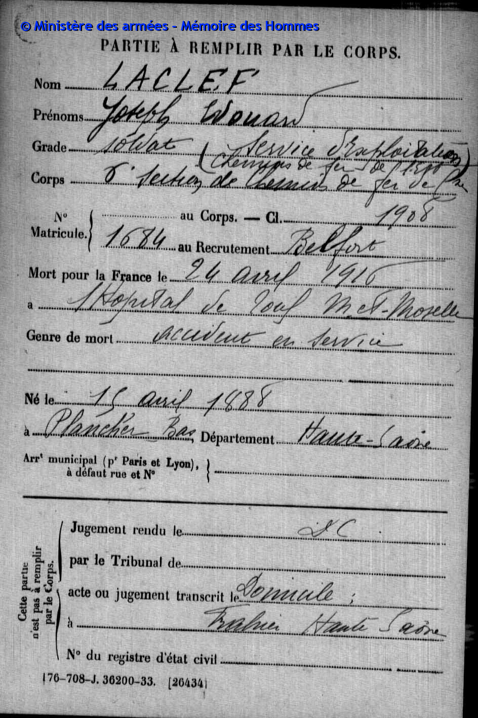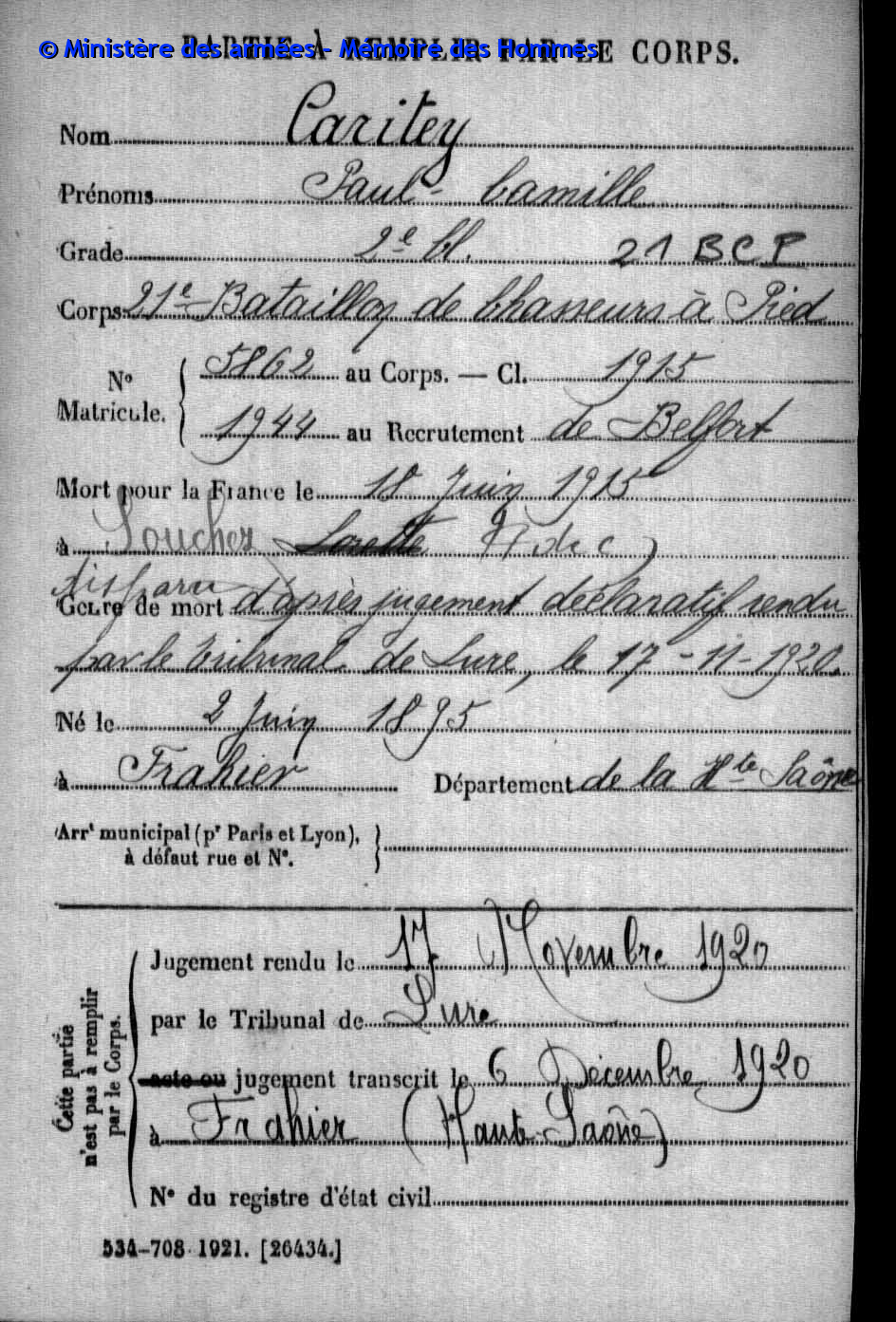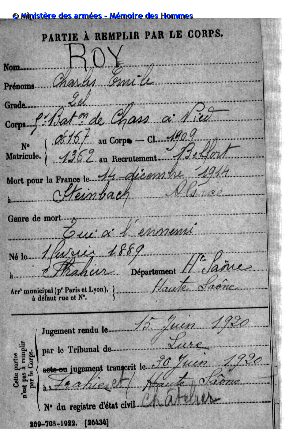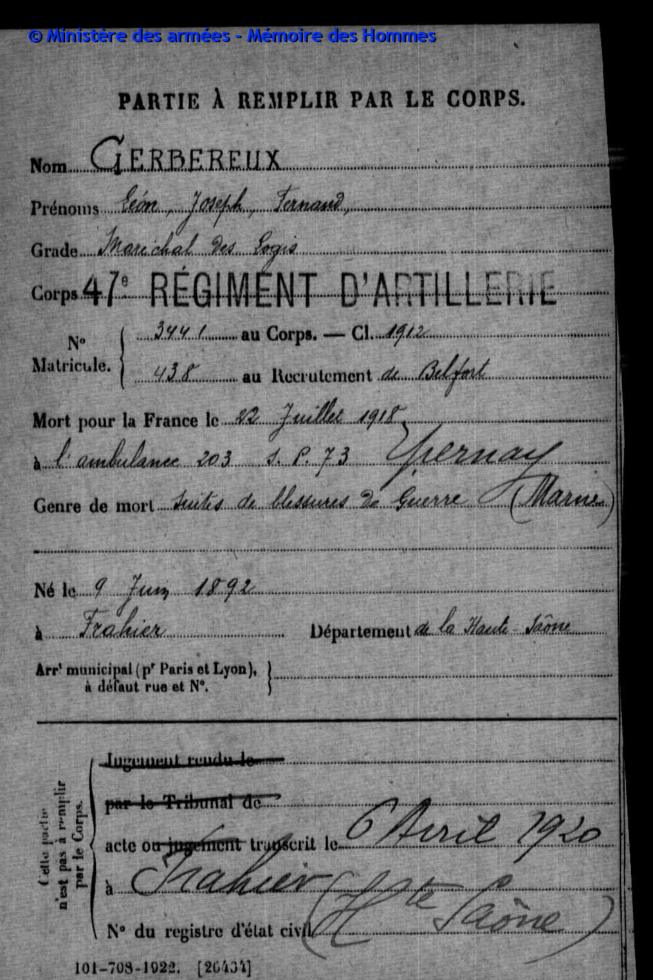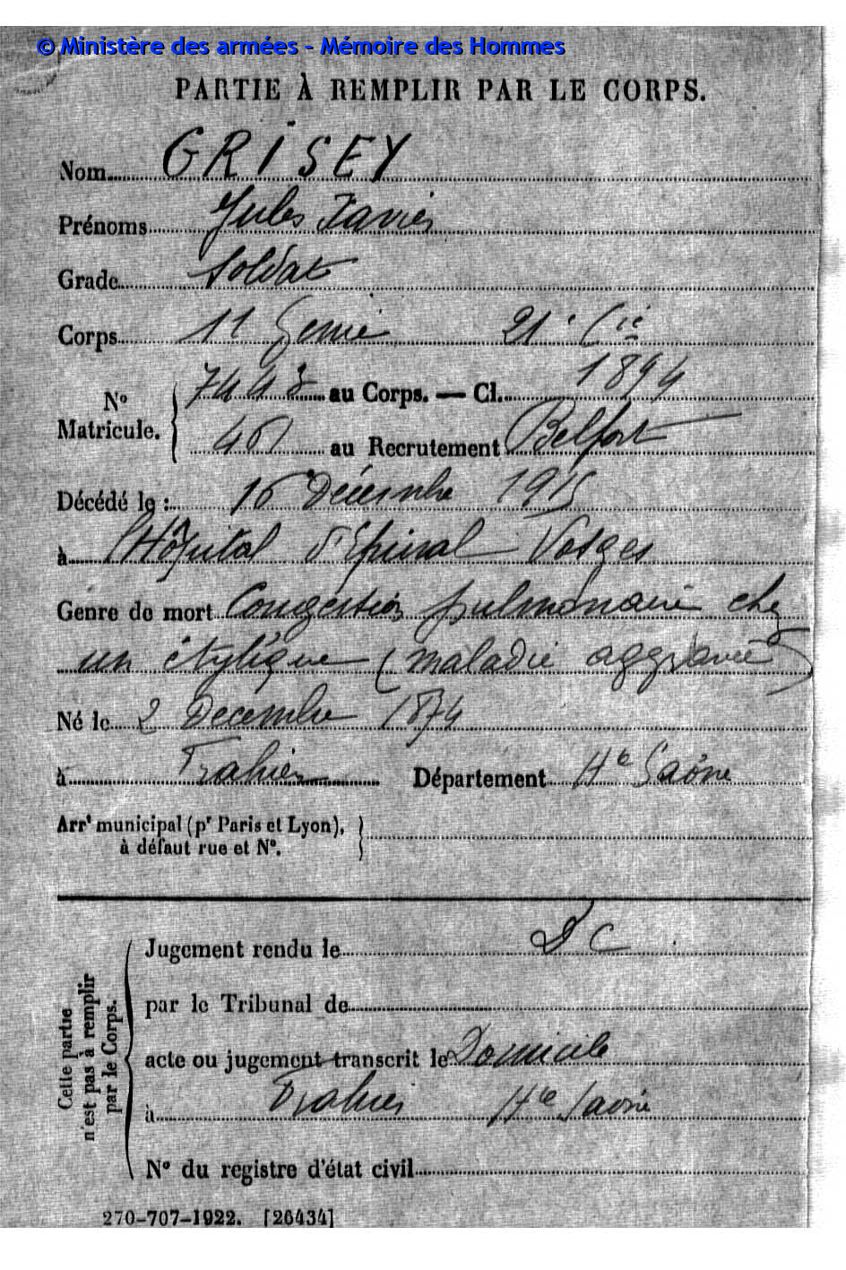 Auf dem Kriegerdenkmal der 17,39 Km2 grossen Gemeinde mit 1379 Einwohner im Departement Haute-Saòne (F) sind 46 Soldaten verzeichnet,davon sind 35 mit Fabian Coulot verwandt.