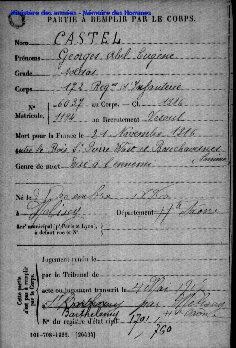 | Caporal BERTRAND Jules Eugène Marcel 23.11.1893 - 09.05.1921 172ème Régiment d'Infanterie Starb an Kriegsfolgen zu Hause |