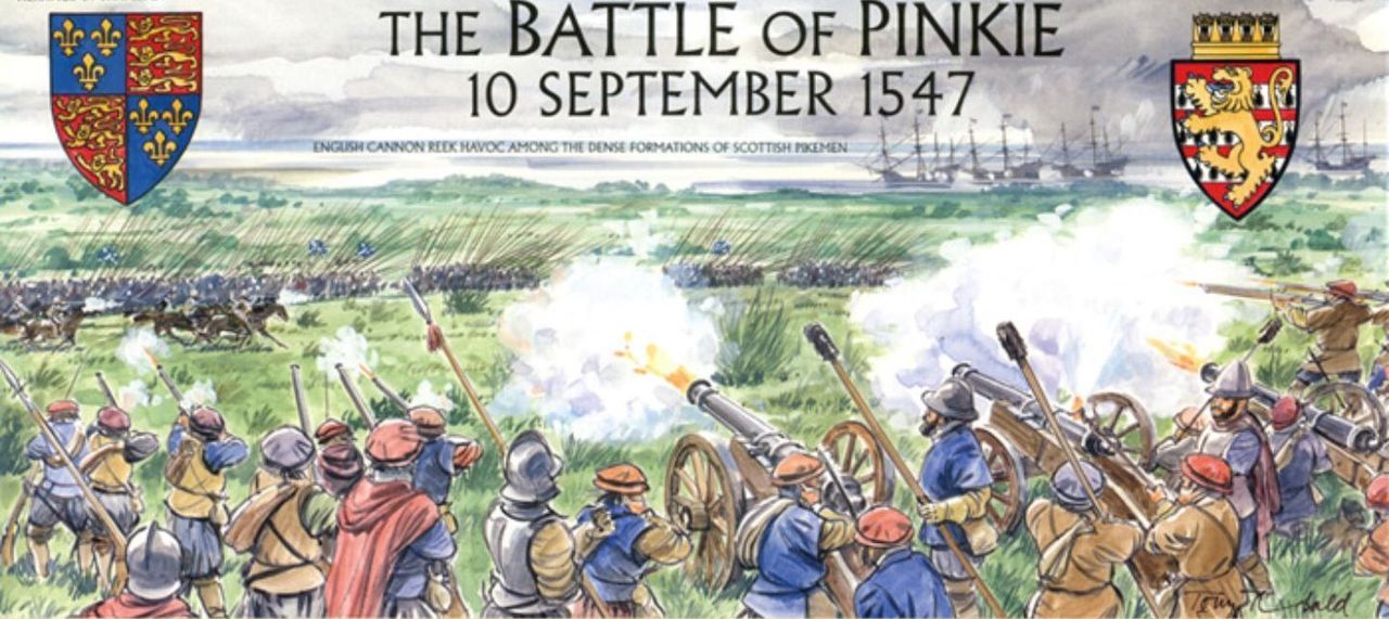 In den letzten Jahren der Regentschaft des englischen Königs Heinrich VIII. ein Bündnis mit Schottland durch eine Verbindung der 4-jährigen schottischen Königin MARIA STUART und seinem Sohn (Eduard VI.) zu sichern. Als die Diplomatie versagte begann Heinrich VIII. ein krieg gegen Schottland welcher als ROUGH WOOING (das raue werben) bekannt wurde. Unterschiedliche Zahlen sprechen zwischen 6'000 und 15'000 gefallene schottische Soldaten.