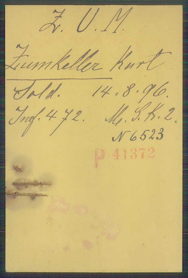 | Soldat Kurt ZUMKELLER geboren: 14.08.1896 in Sindenau / Sachsen Infanterie Regiment 472 |