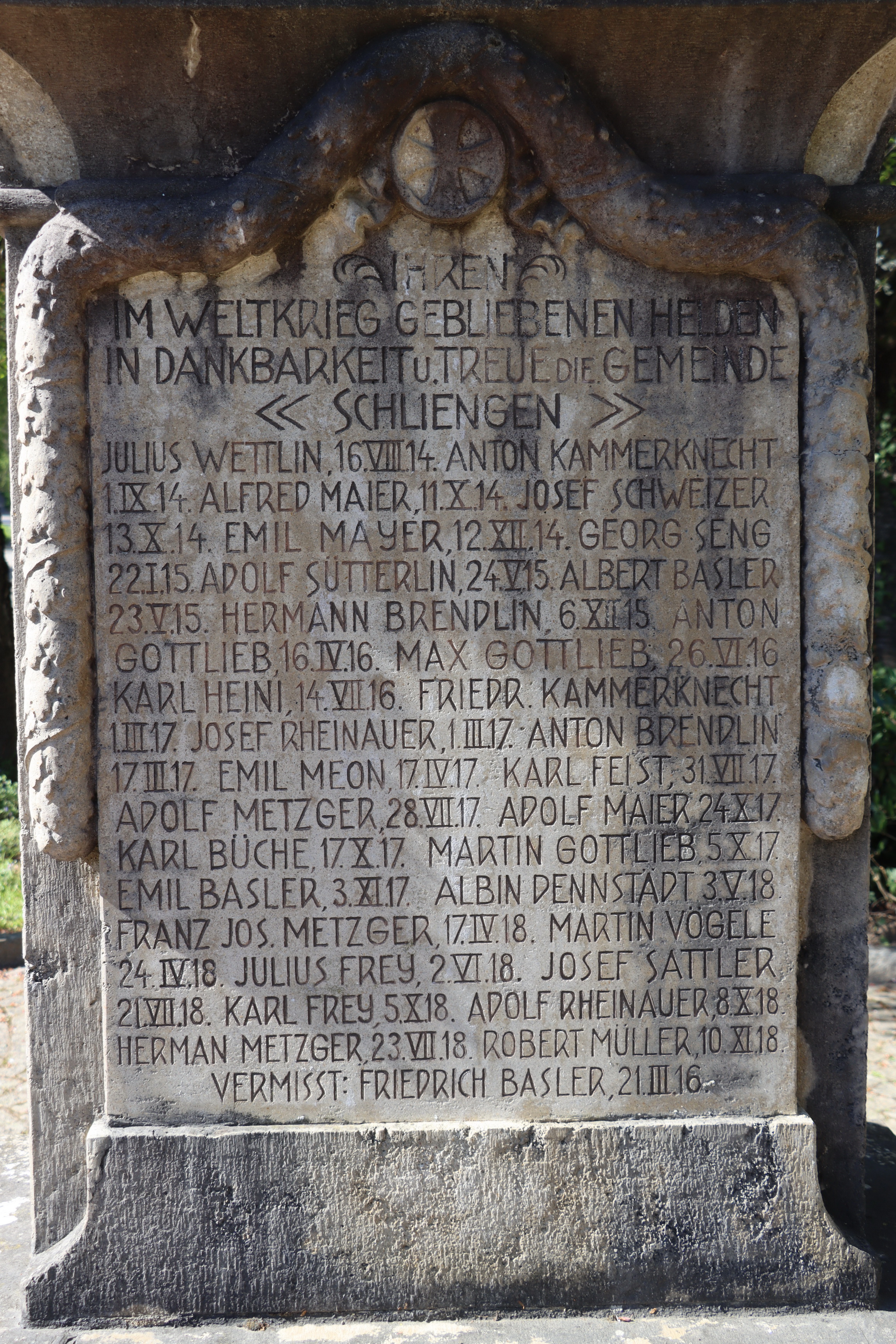 | Herr BASLER Gustav 07.02.1892 - 13.02.1945 ziviles Kriegsopfer Starb durch feindlichen Granatbeschuss in seiner Wohnung in Schliengen (D) |