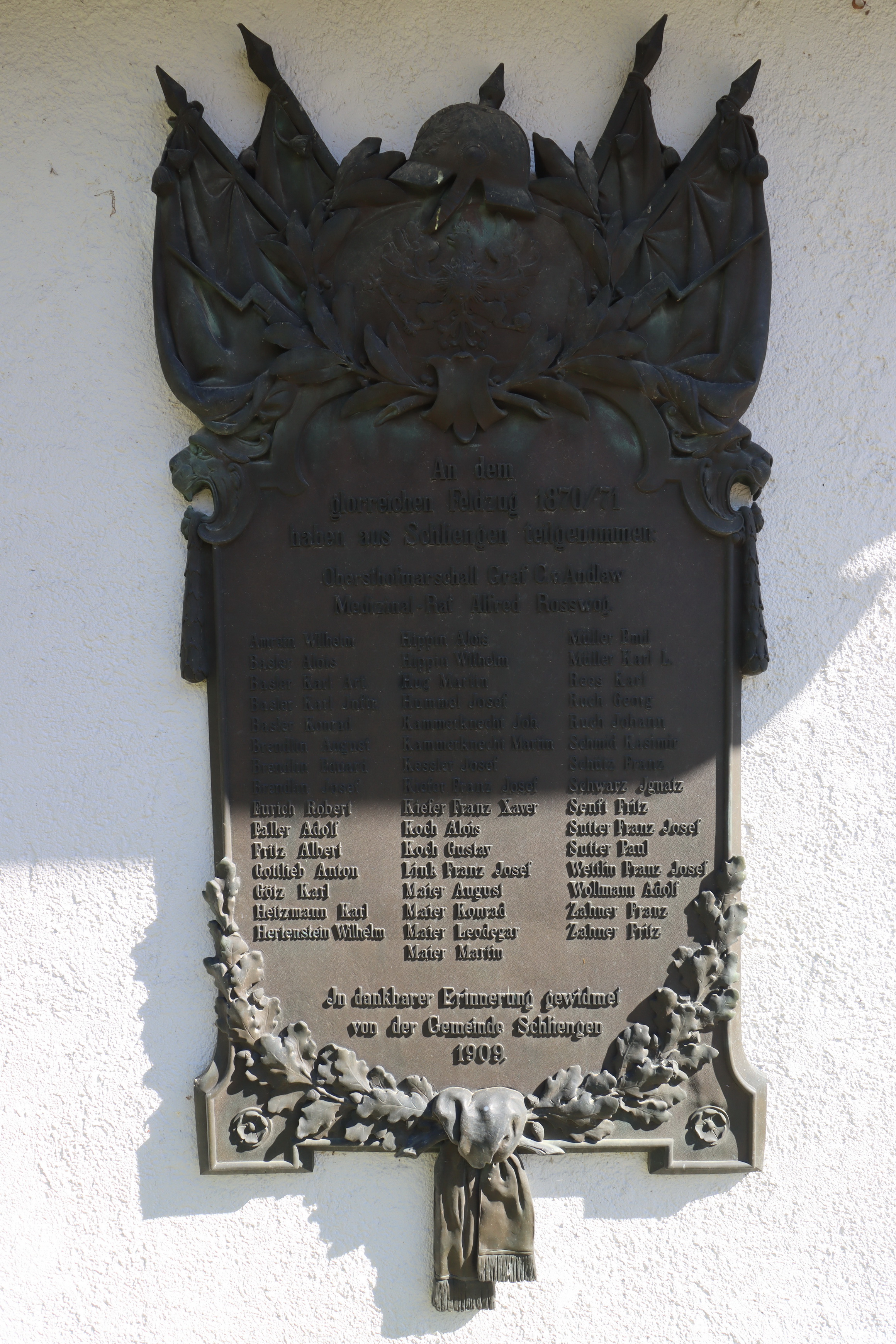 5 Personen aus Schliengen wurden während des NS-Regimes Opfer der Aktion T4 EUTHANASIE, ihre Namen stehen nicht auf dem Kriegerdenkmal, jedoch im Gedenkbuch der Tötungsanstalt in Grafeneck im ehemaligen Samariterstift des Schlosses Grafeneck.