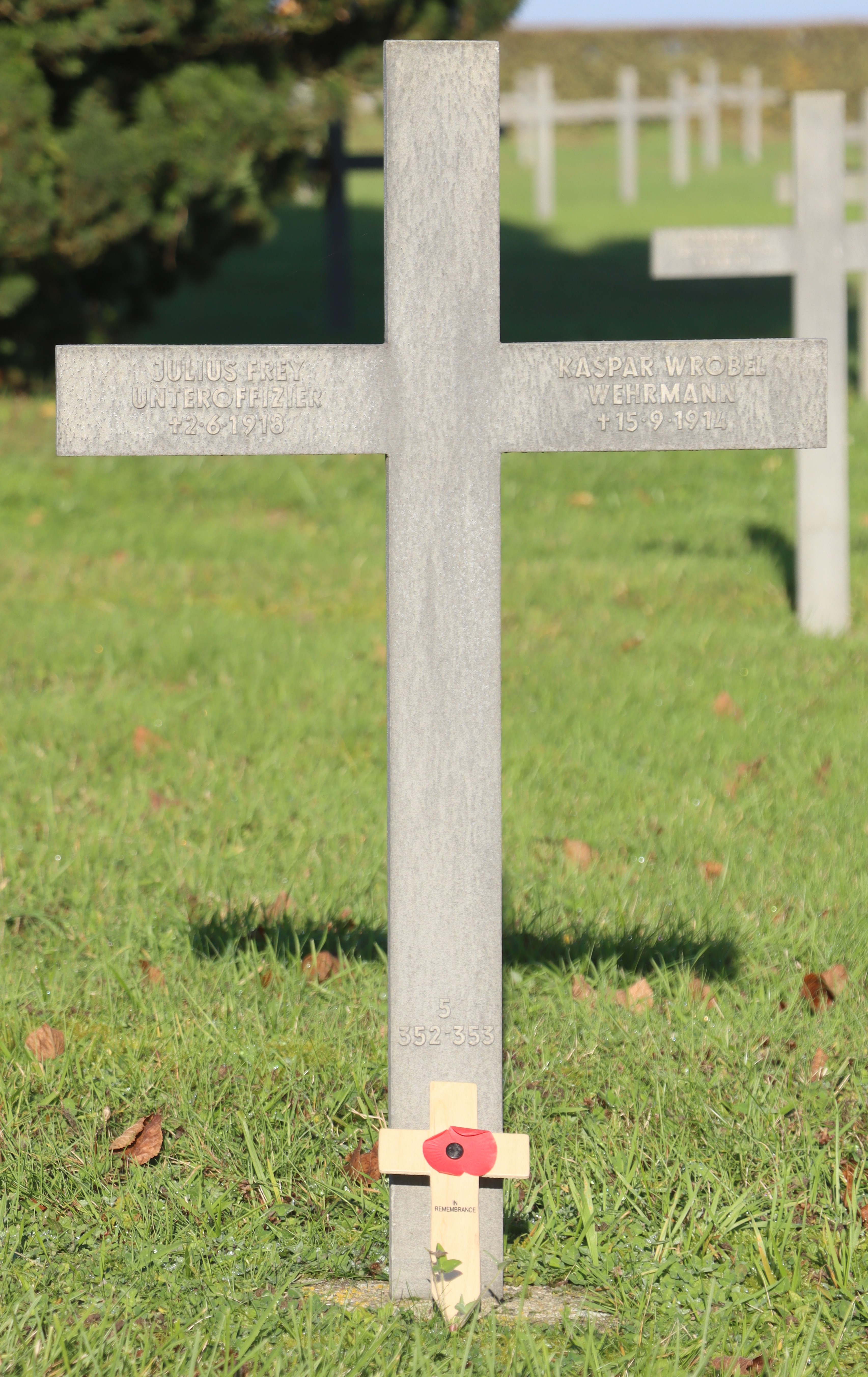 | Pionier FREY Walter 06.02.1922 - 10.07.1943 Pionier-Bataillon No. 659 2. Kompagnie Gefallen in Gurica (GR) Kriegsgräberstätte in Dionyssos-Rapendoza (GR) Gruft 2, Reihe 4, Platte 11 |
