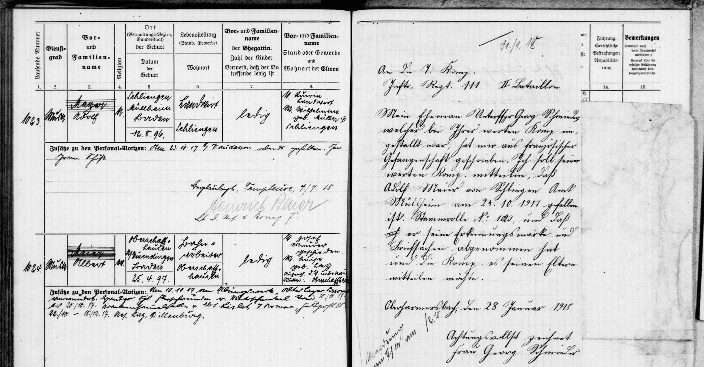 Gefreiter METZGER Hermann 17.10.1896 - 23.07.1918 Reserve-Infanterie-Regiment No.109 1. Maschinengewehr-Kompagnie Verstarb zu Hause in Schliengen (D) |