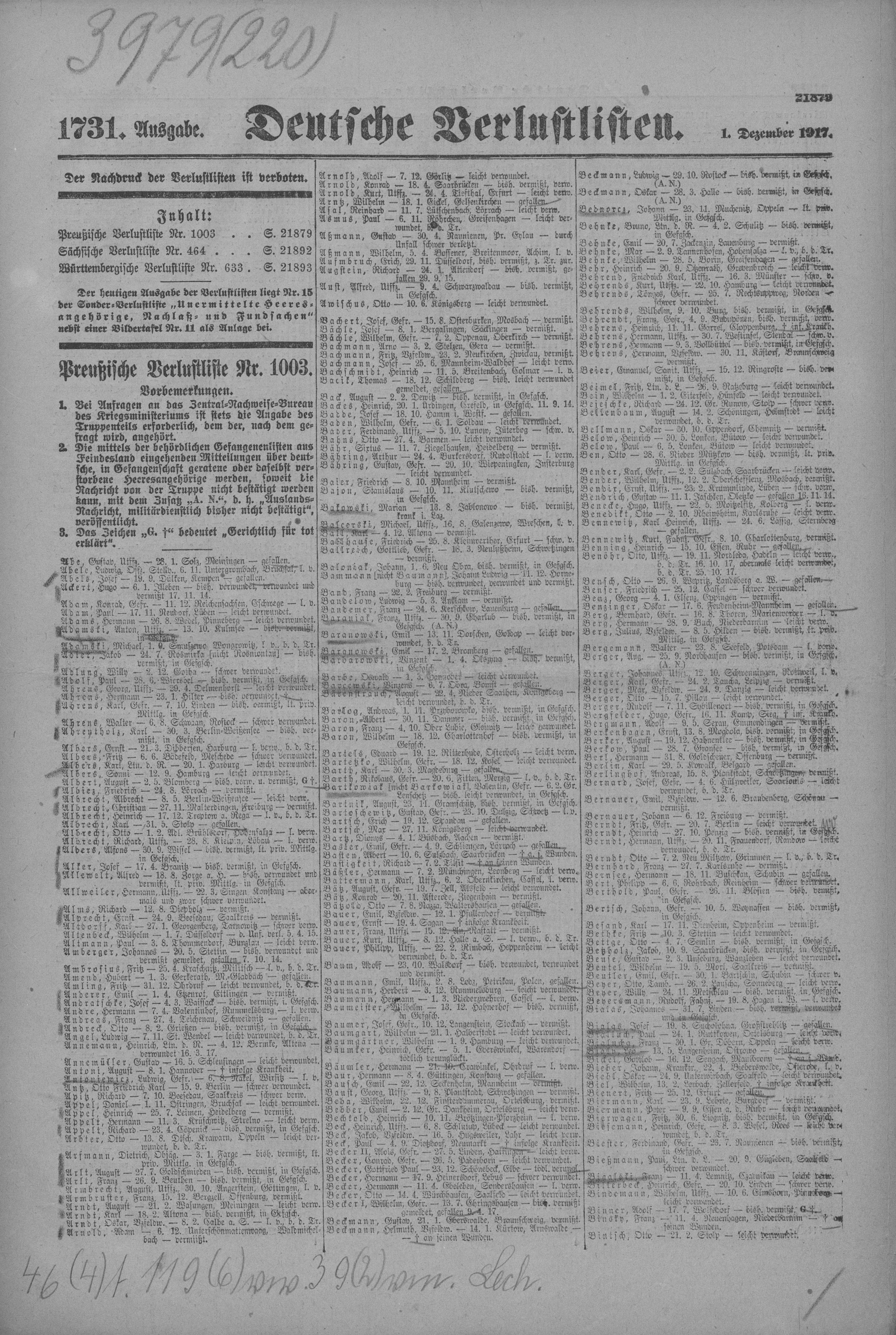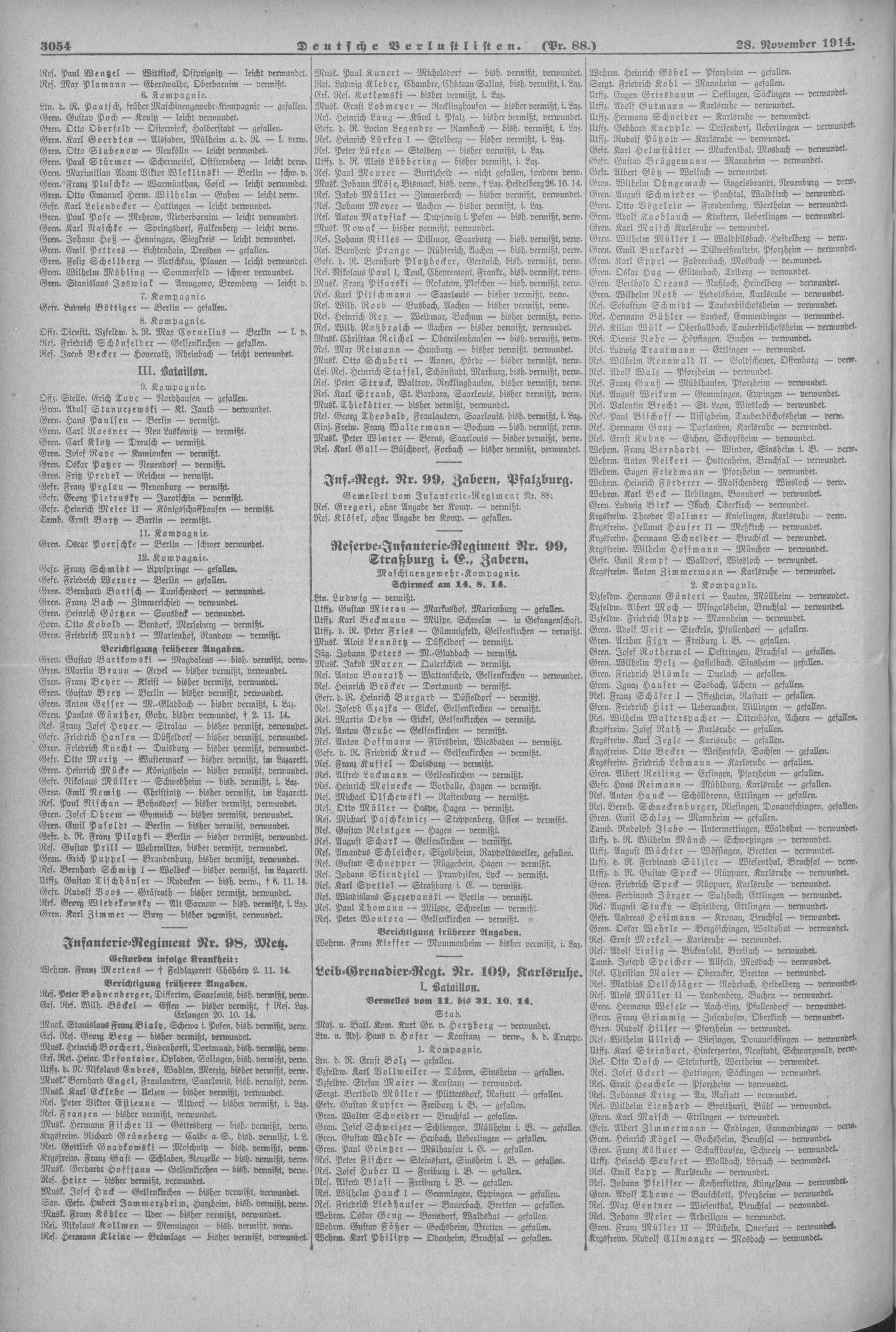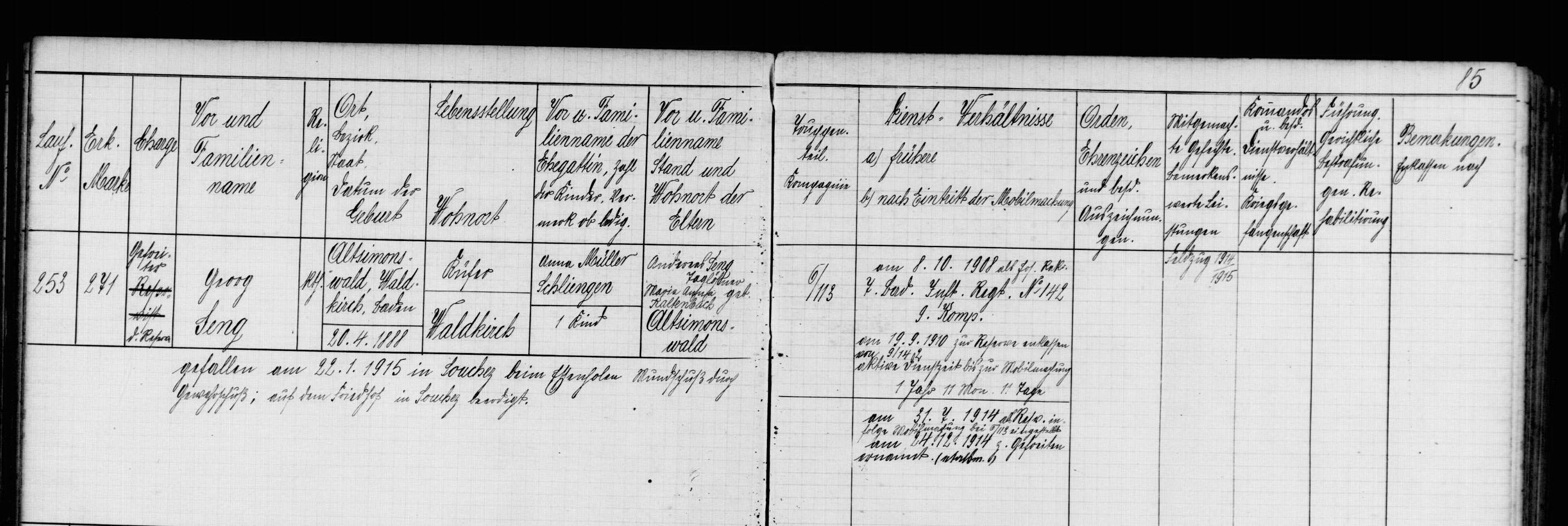Unteroffizier METZGER Adolf 29.11.1879 - 28.07.1917 Landwehr-Brigade-Ersatz-Bataillon No.55 4. Kompagnie Gefallen |