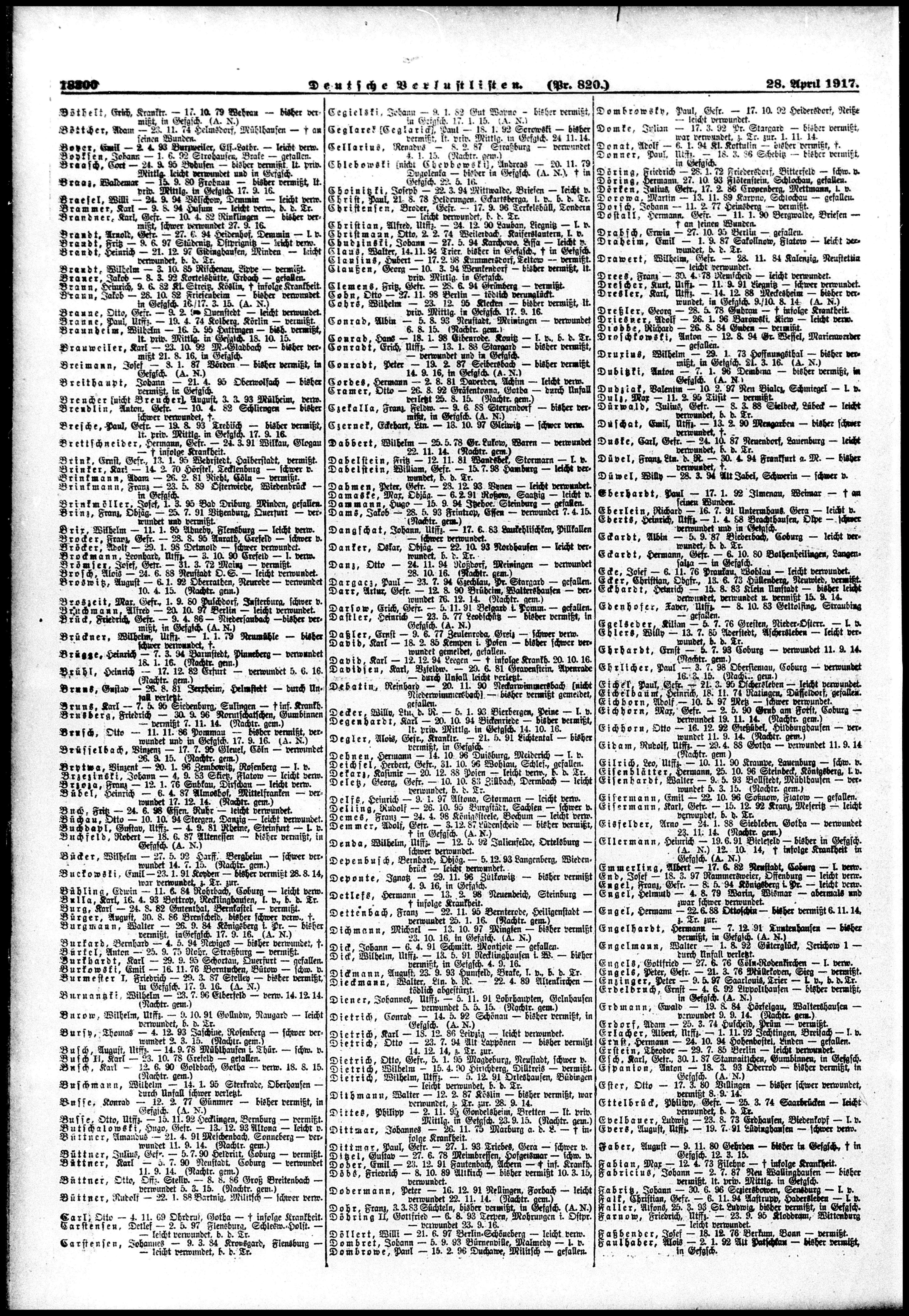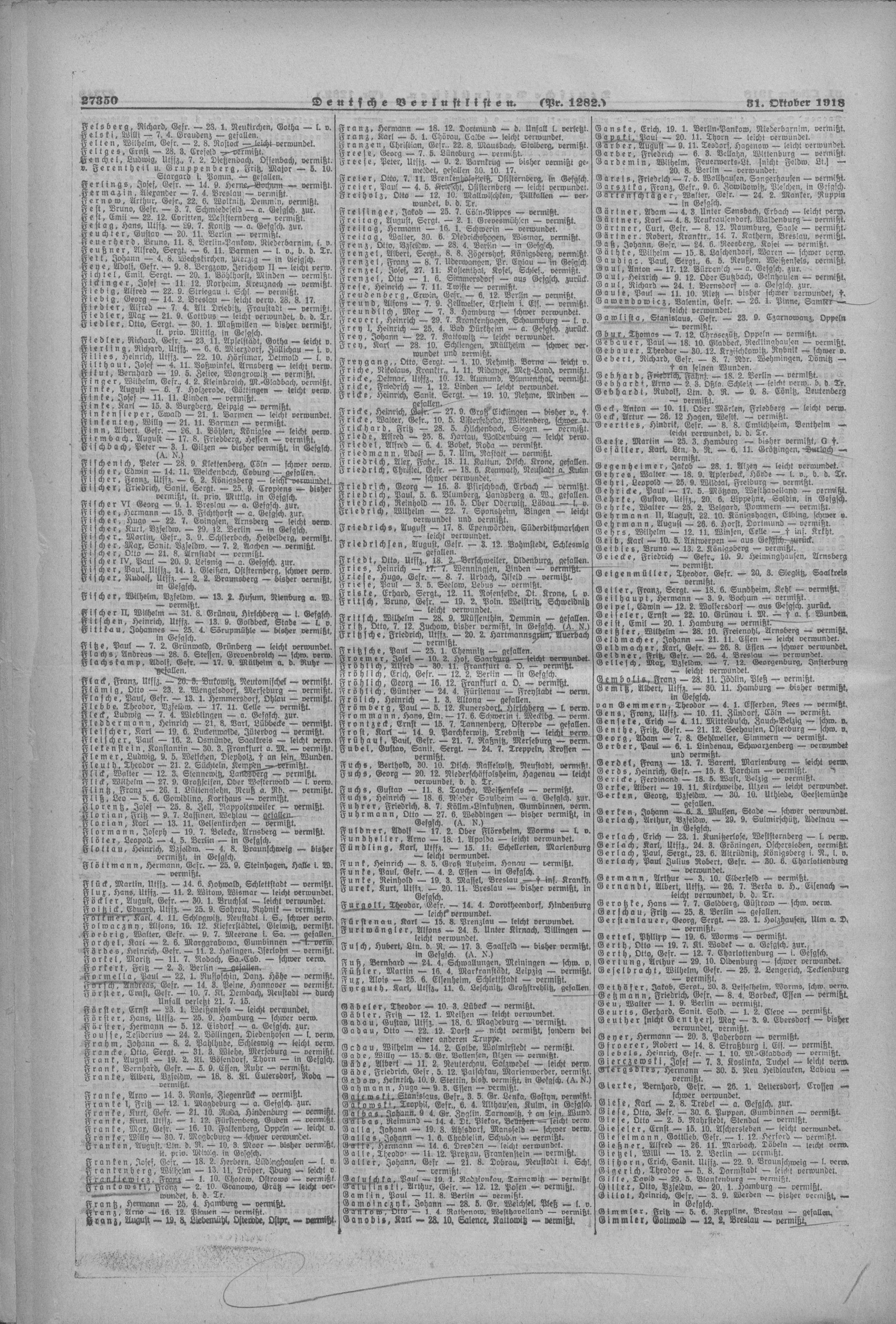 Sanitäter FEIST Karl Julius 12.09.1898 - 31.07.1917 Vermisst in Ypern (BE) |