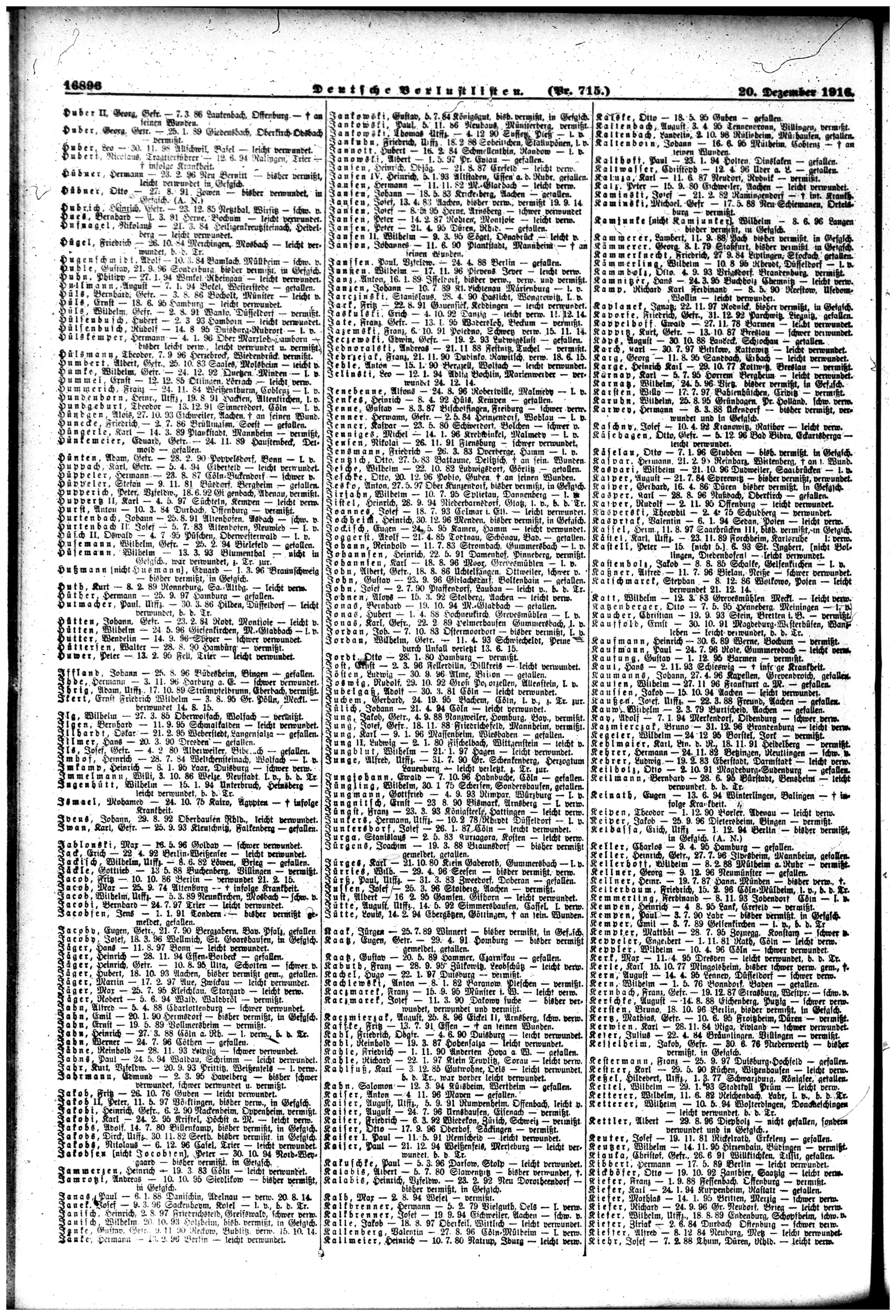 | Wehrmann KAMMERKNECHT Friedrich 27.09.1884 - 18.11.1916 Brigade-Ersatz-Bataillon No.5 1. Kompagnie Gefallen |