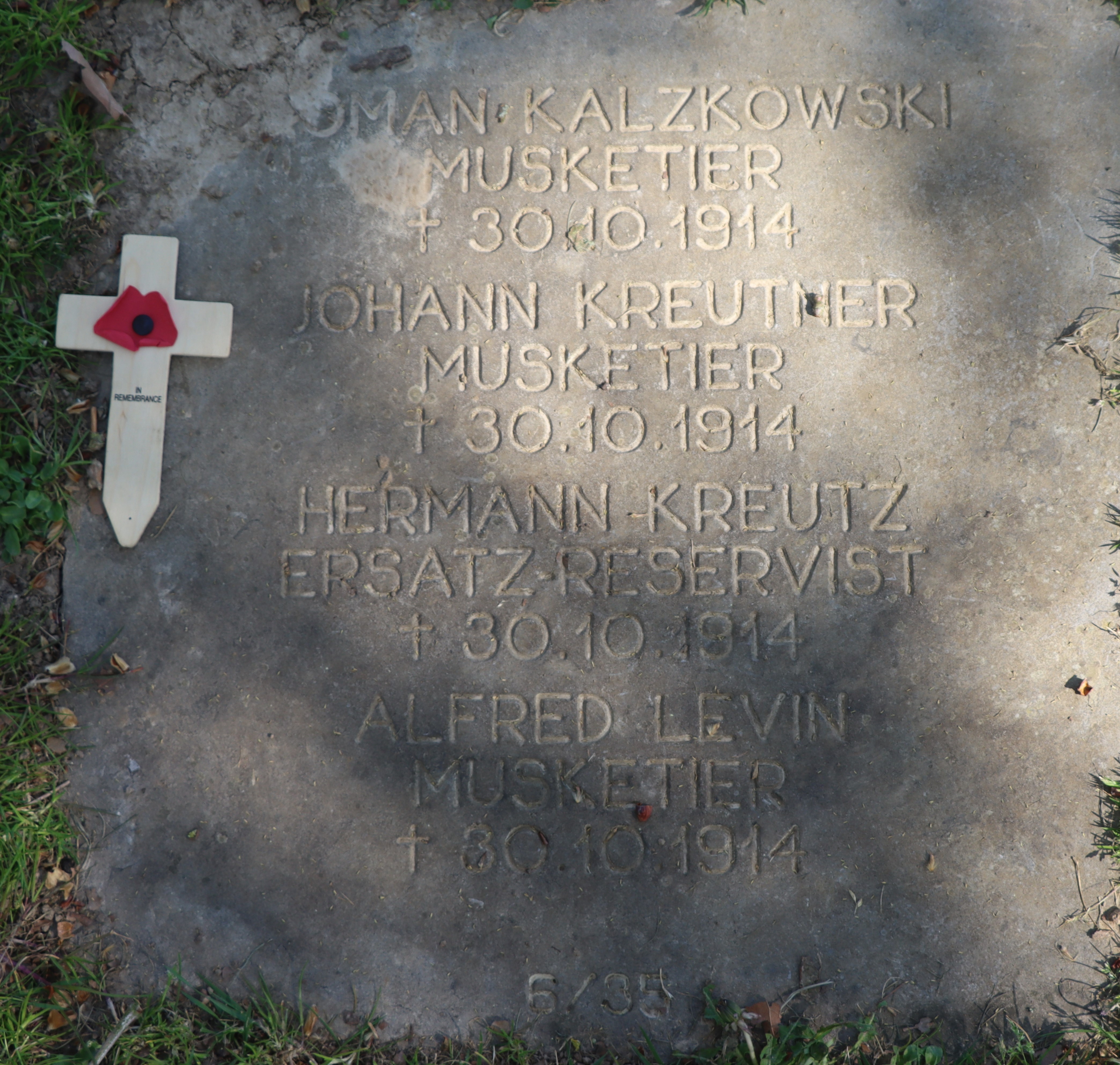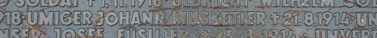 Musketier UMIGER Johann Georg 20.12.1889 - 21.08.1914 25 Jahre alt aus Binzen 4. Badische Infanterie Regiment Prinz Wilhelm No. 112 I. Batallion, 2. Kompagnie Gefallen in Saarburg Begraben bei der Kriegsgräberstätte in Lafrimbolle (Frankreich) Kameradengrab *Neffe des Ehemanns der Cousine zweiten Grades der Ehefrau des Neffen der Ehefrau des Cousins des Onkels durch Heirat der Ehefrau des Grossonkels zweiten Grades von Fabian Coulot |