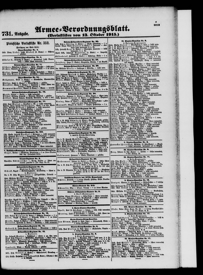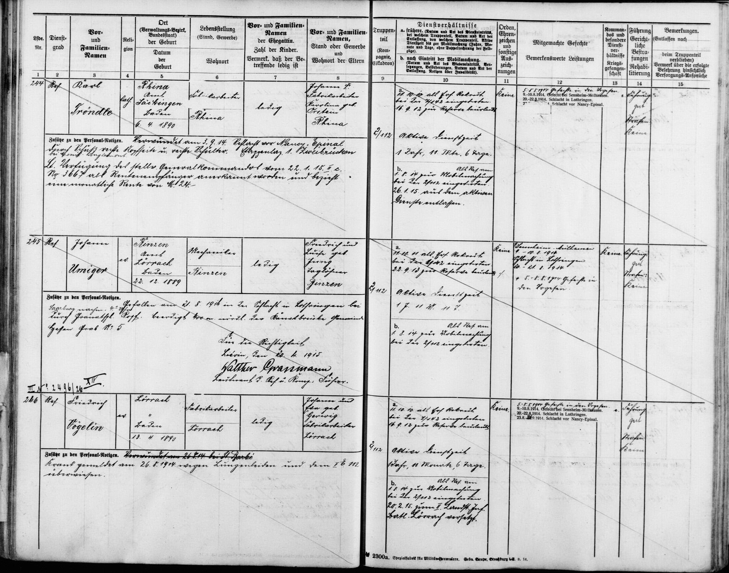 Grossherzogliche Ordens-Kanzlei, Karlsruhe Seine Königliche Hoheit der Grossherzog haben sich unter dem 25.08.1915 gnädigst bewogen gefunden den nachgenannten Angehörigen folgende Auszeichnung zu verleihen: Silberne Verdienstmedaille am Bande der Militärischen Karl-Friedrich Verdienstmedaille Schriftstück Ordenskanzlei |